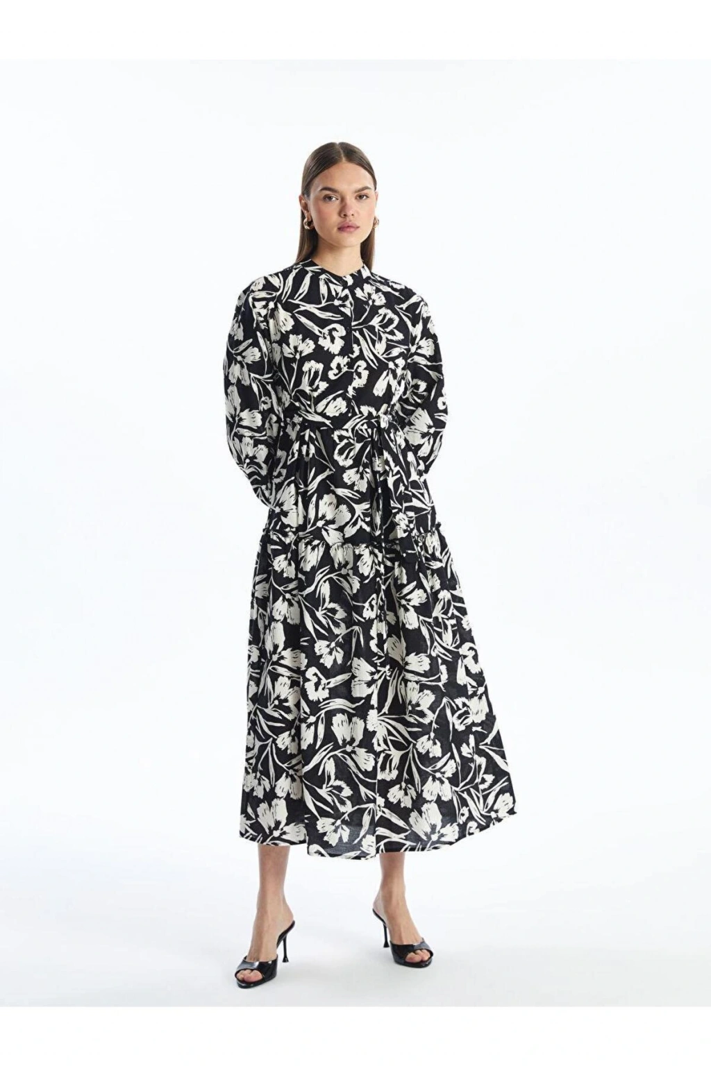 LCWAIKIKI Classic Siyah Desenli Kadın Gömlek Elbise