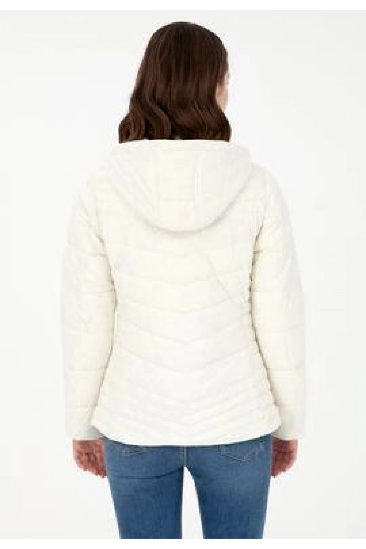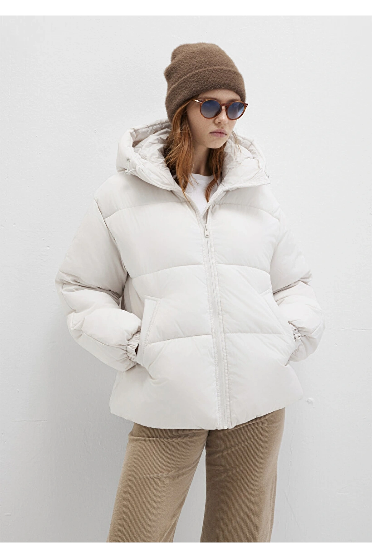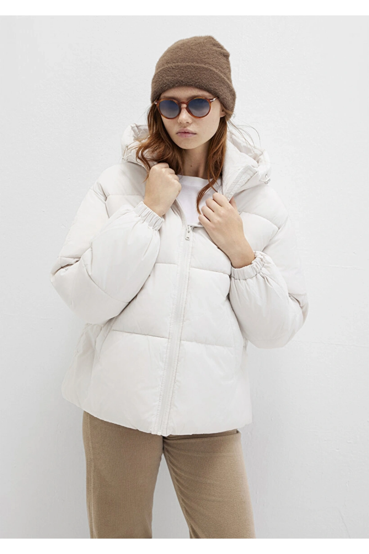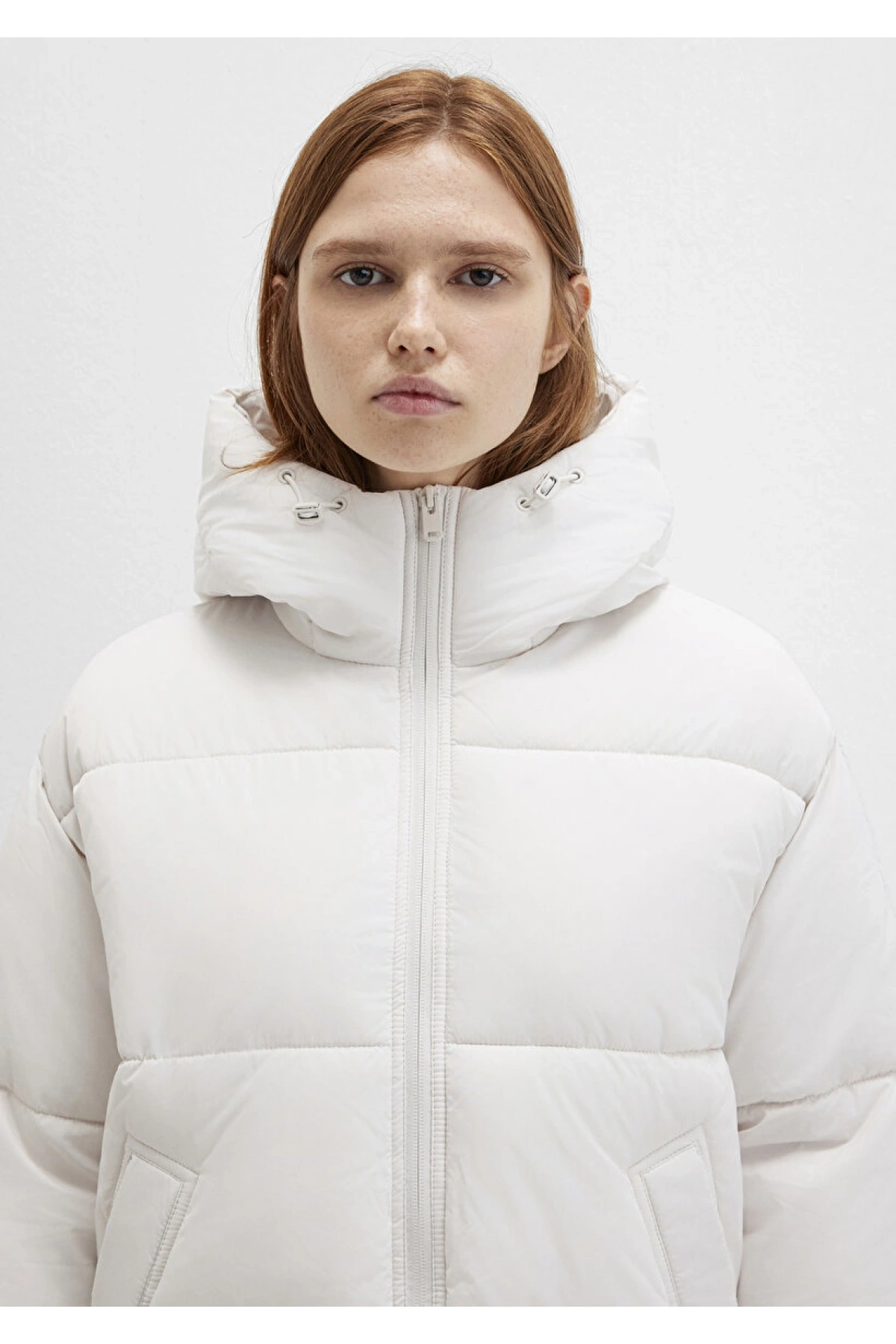 Su İtici Kapüşonlu Beyaz Şişme Mont