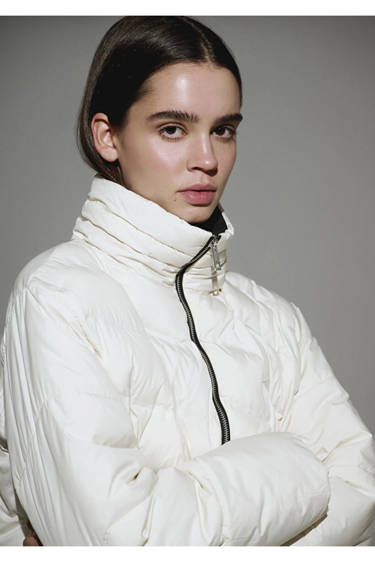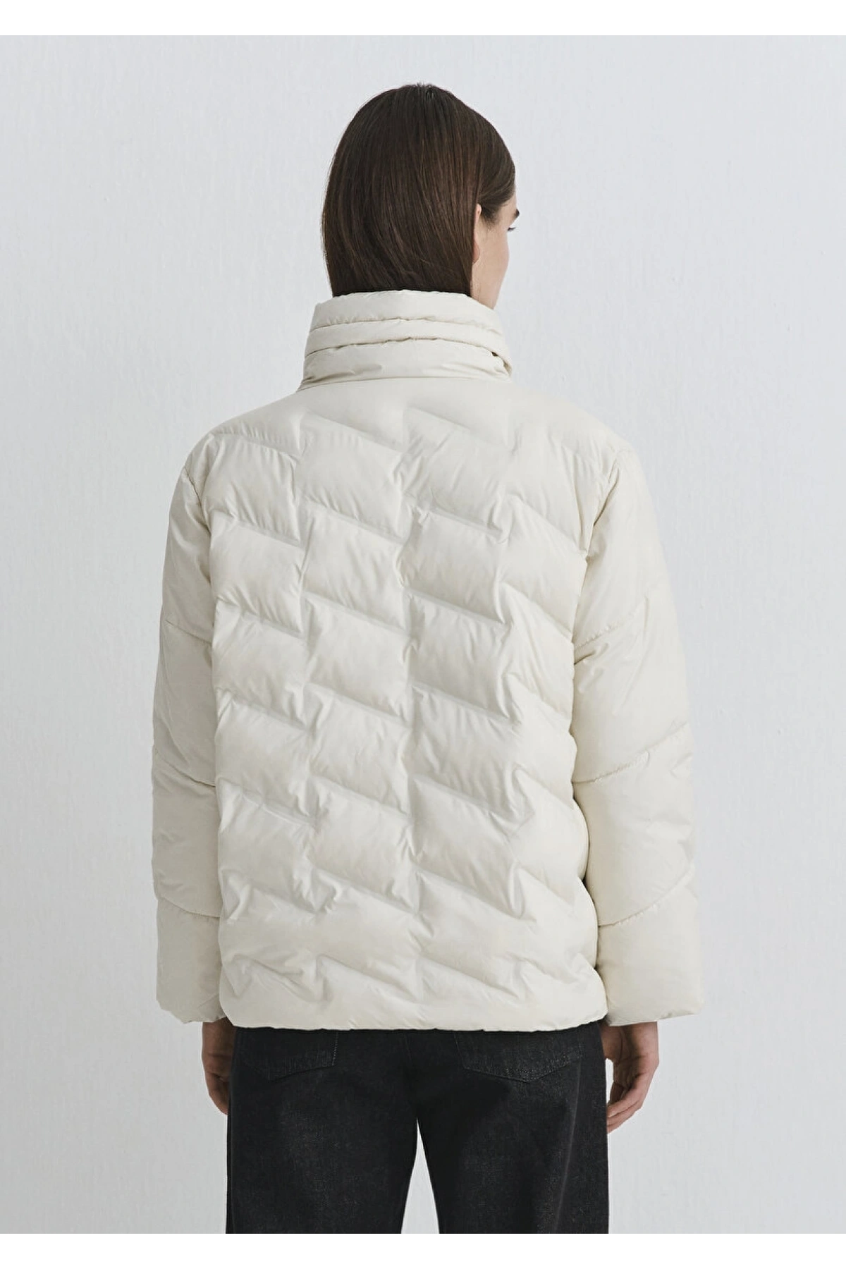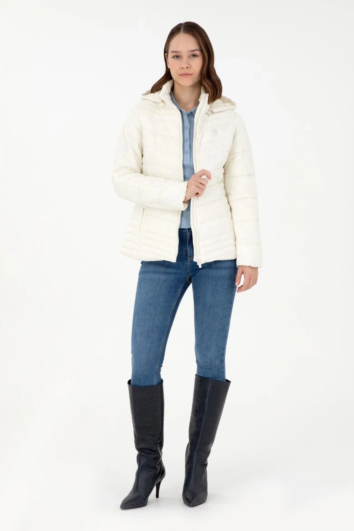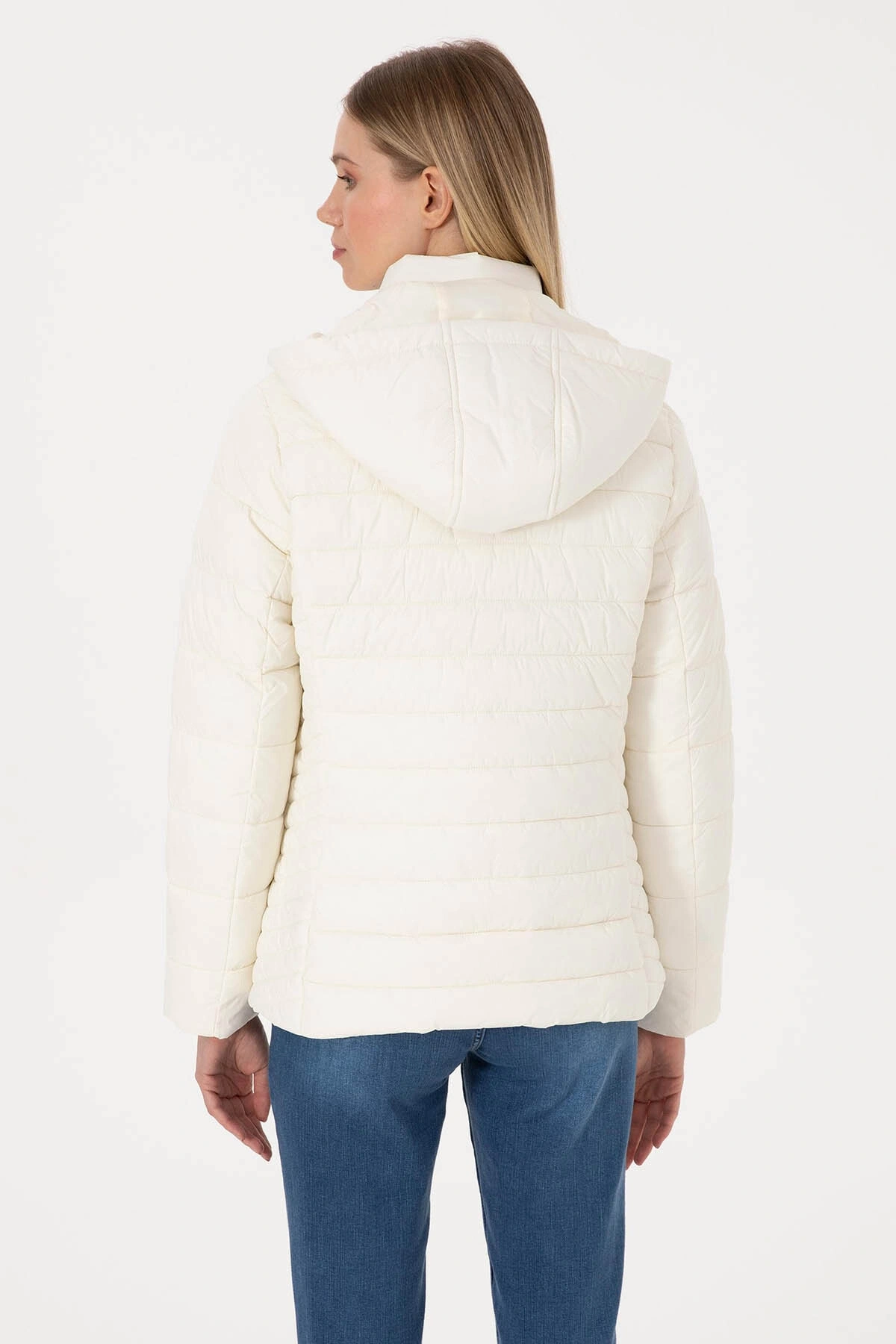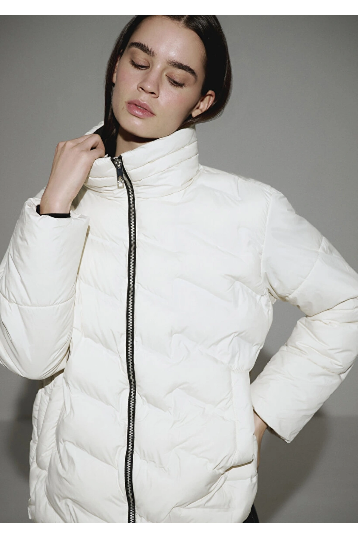 Su İtici Kapüşonlu Beyaz Şişme Mont