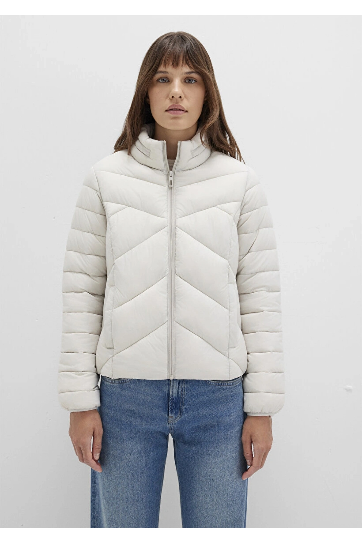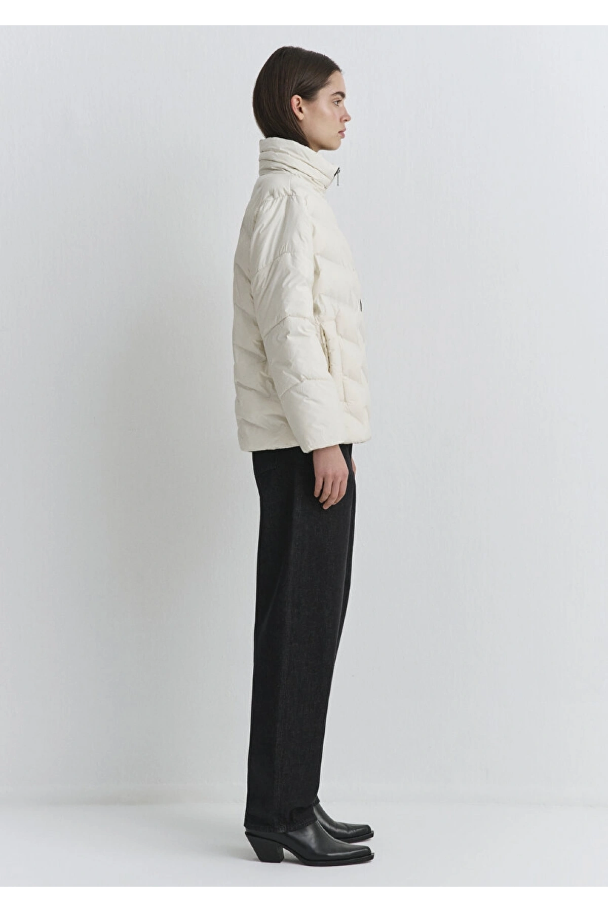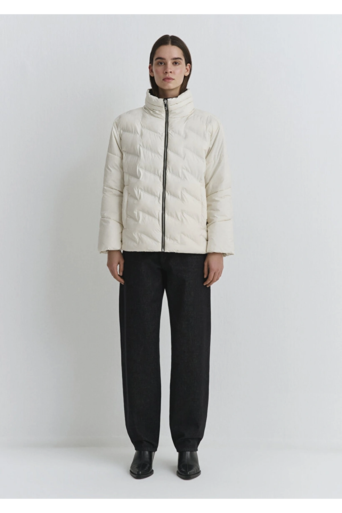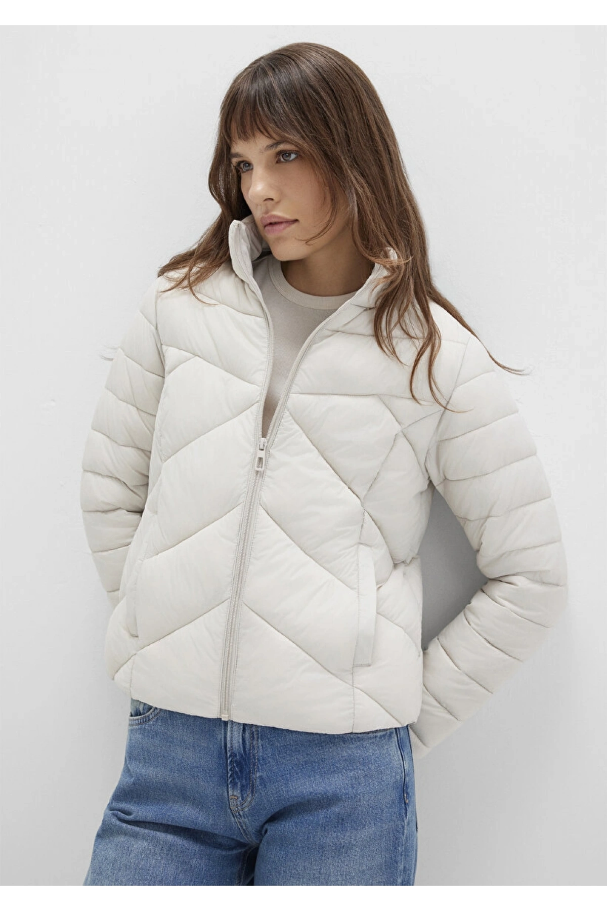 Su İtici Kapüşonlu Beyaz Şişme Mont