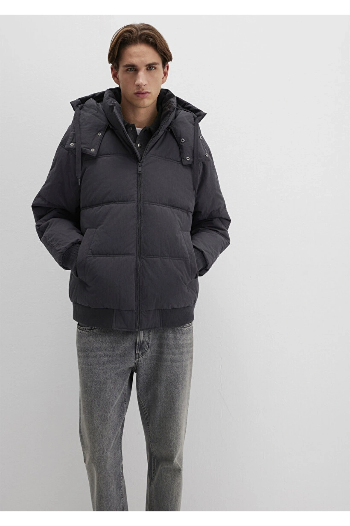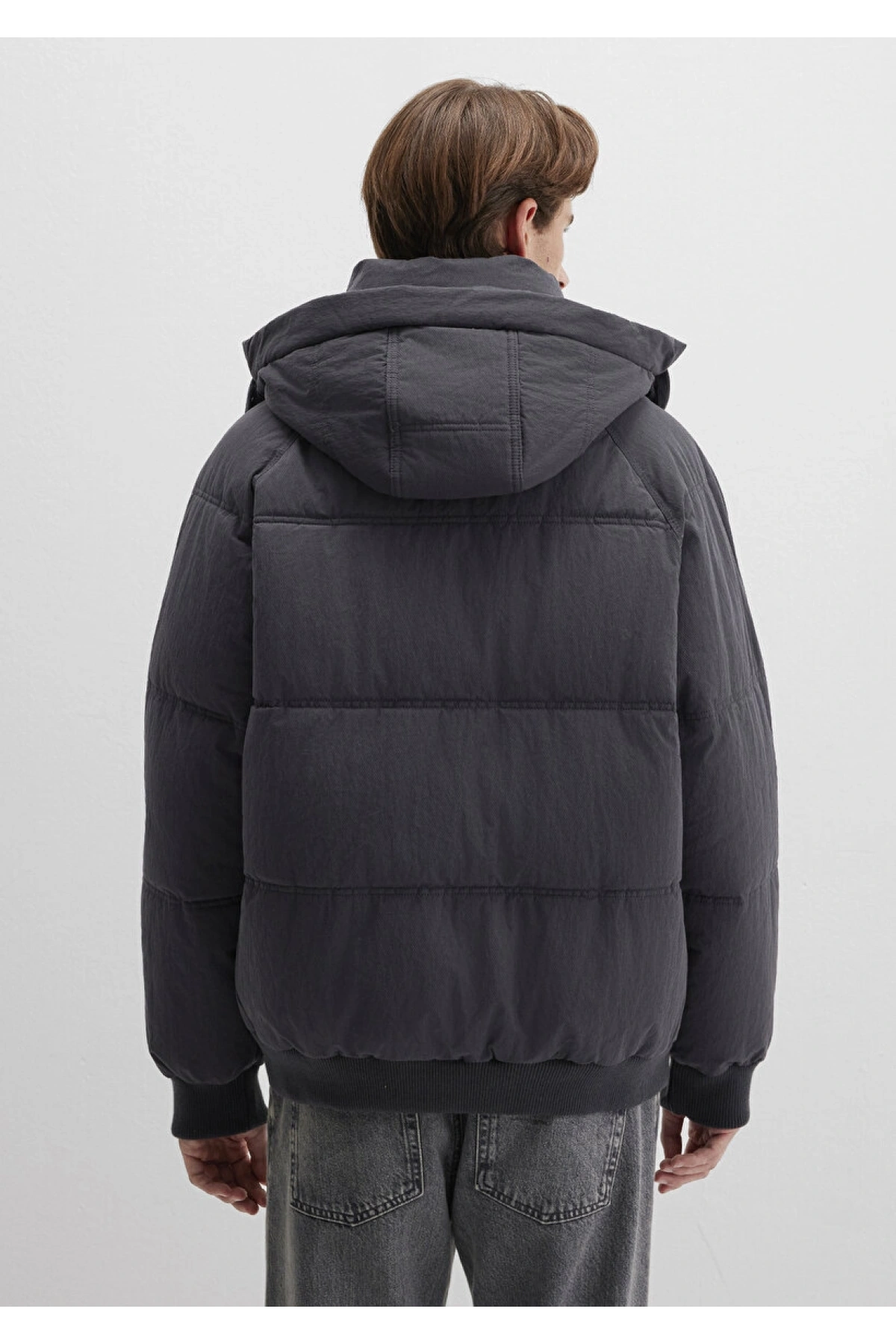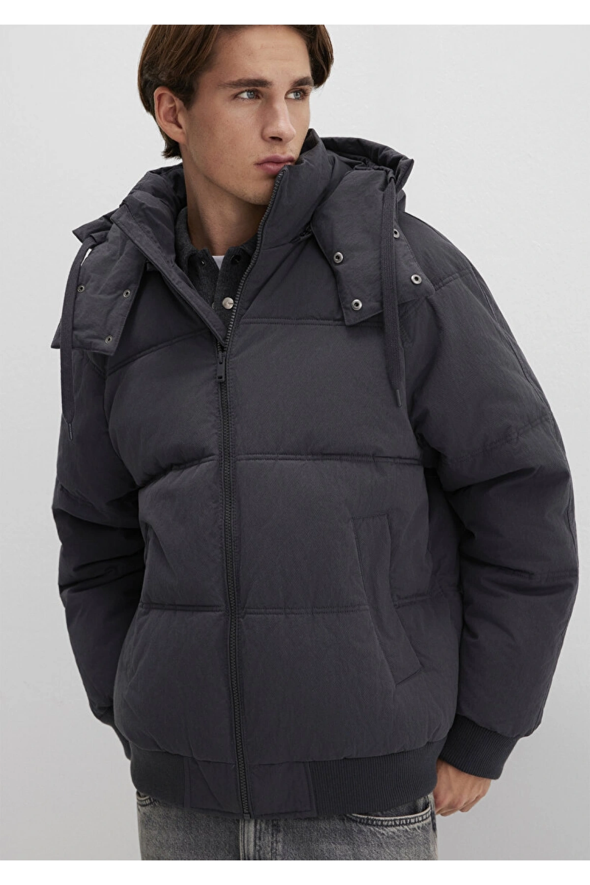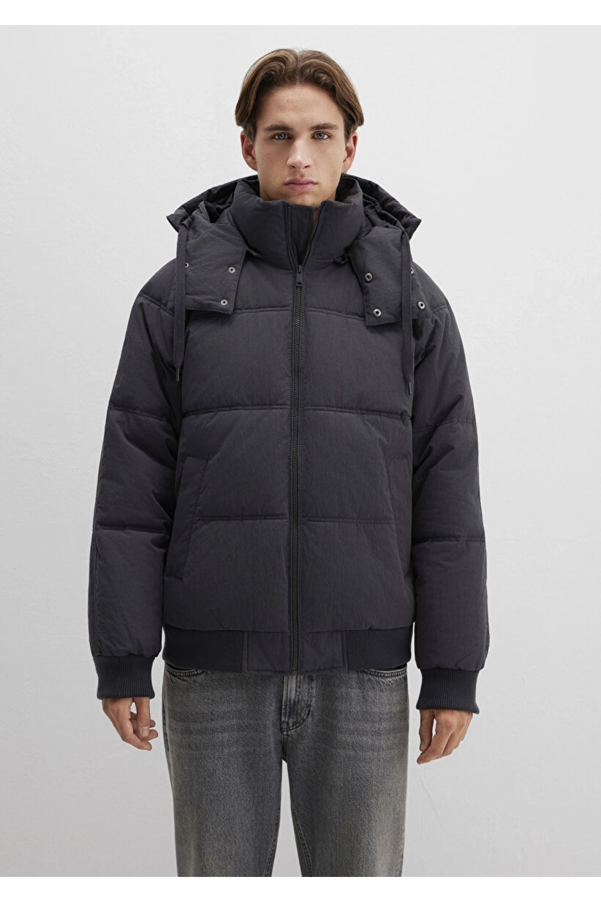 Mavi Kapüşonlu Antrasit Şişme Mont