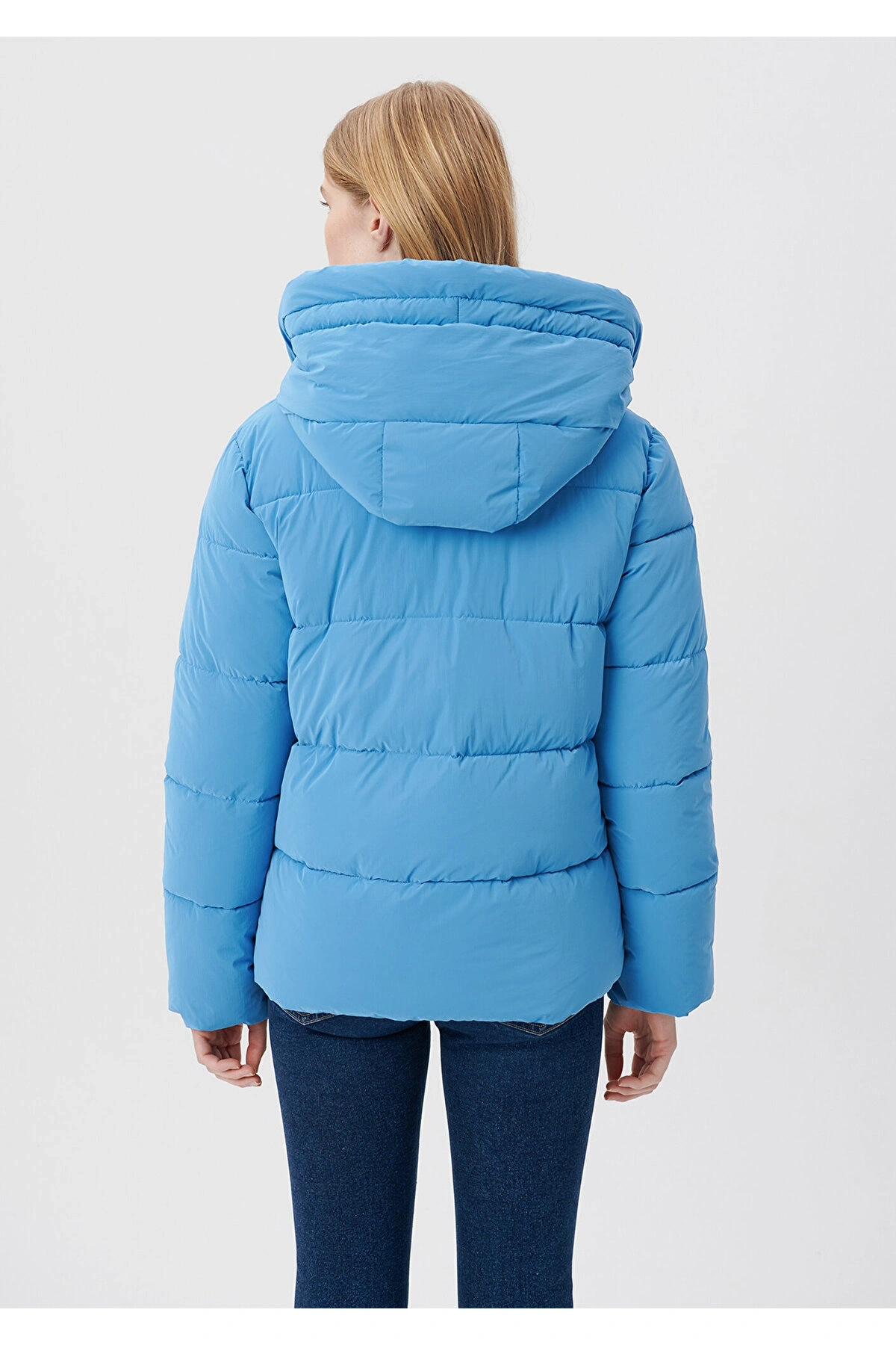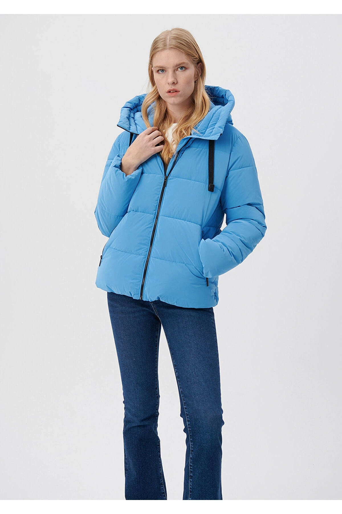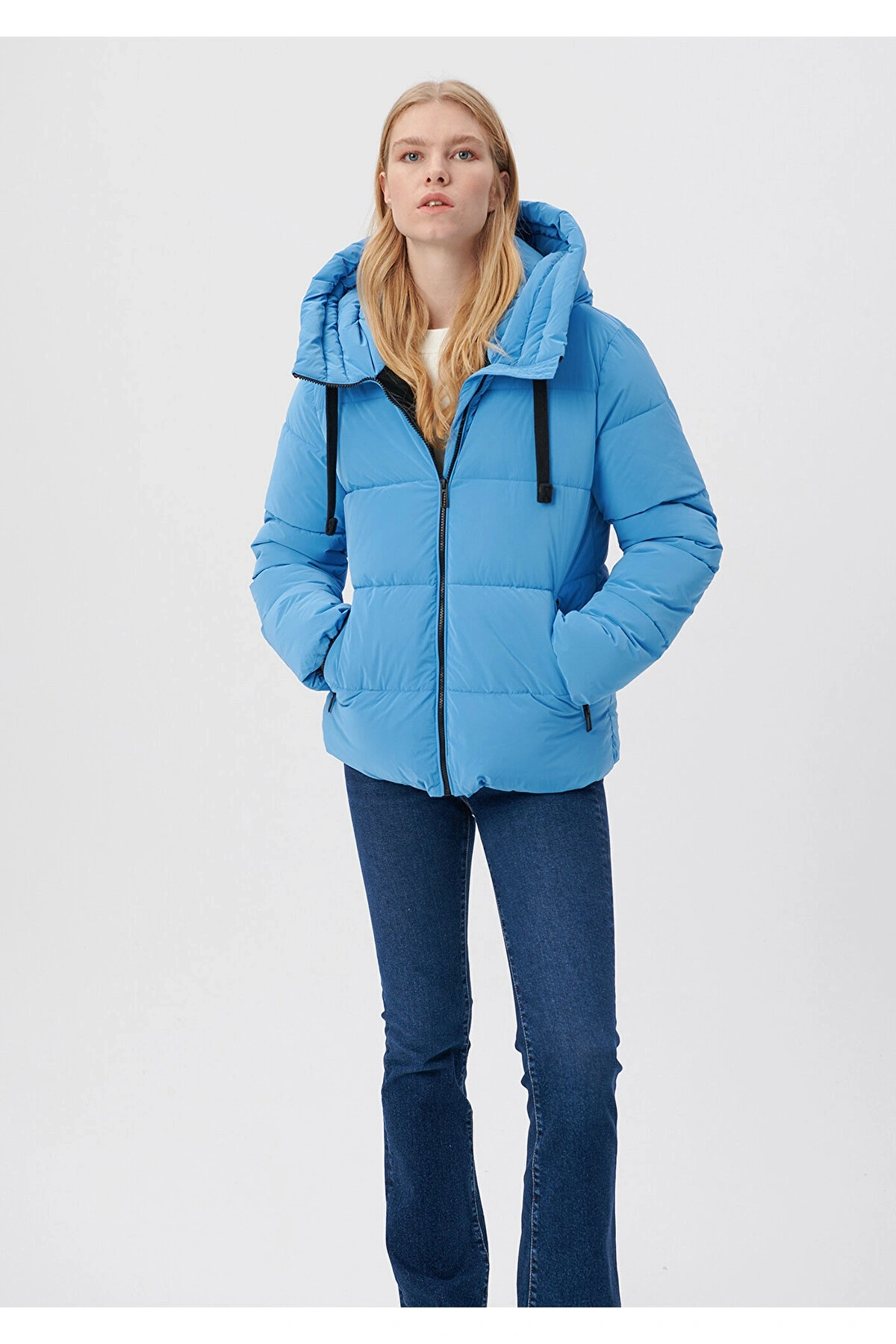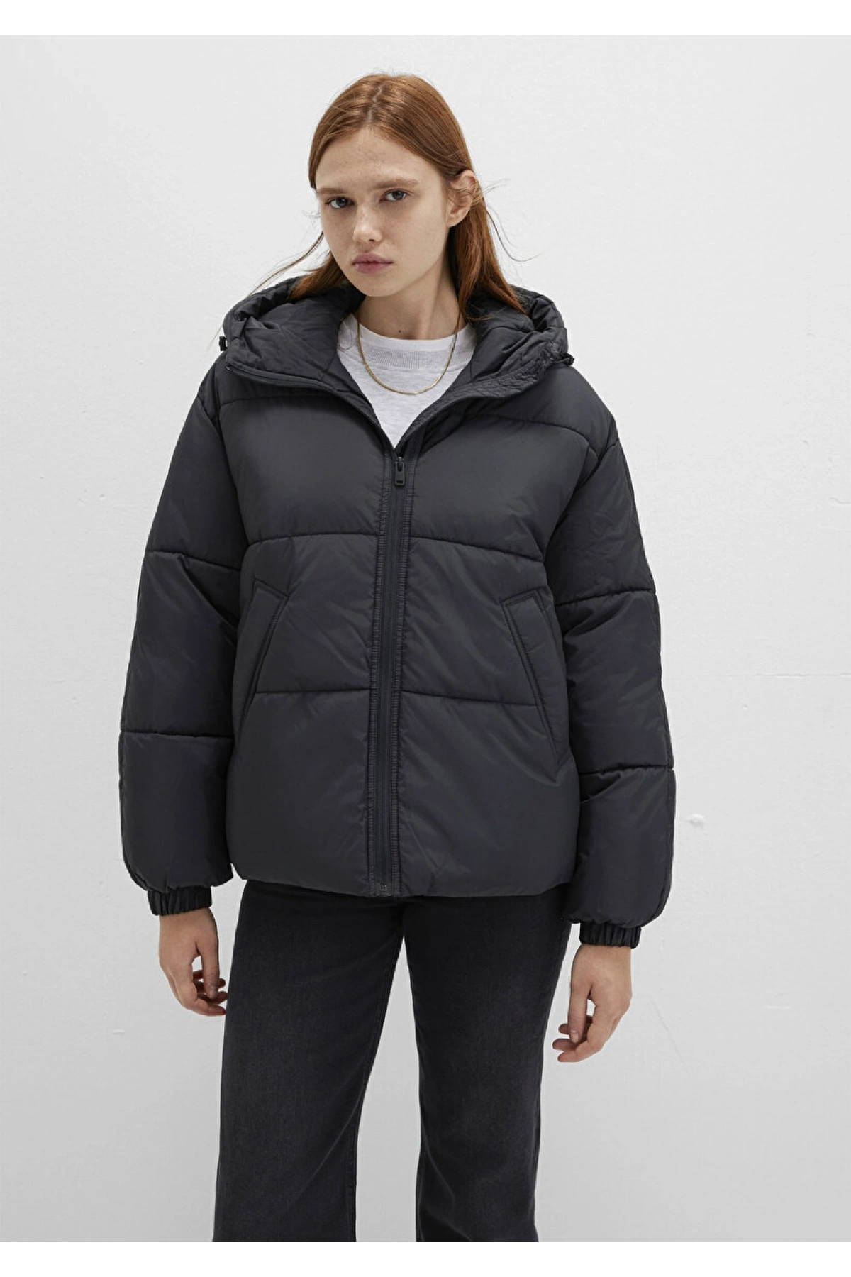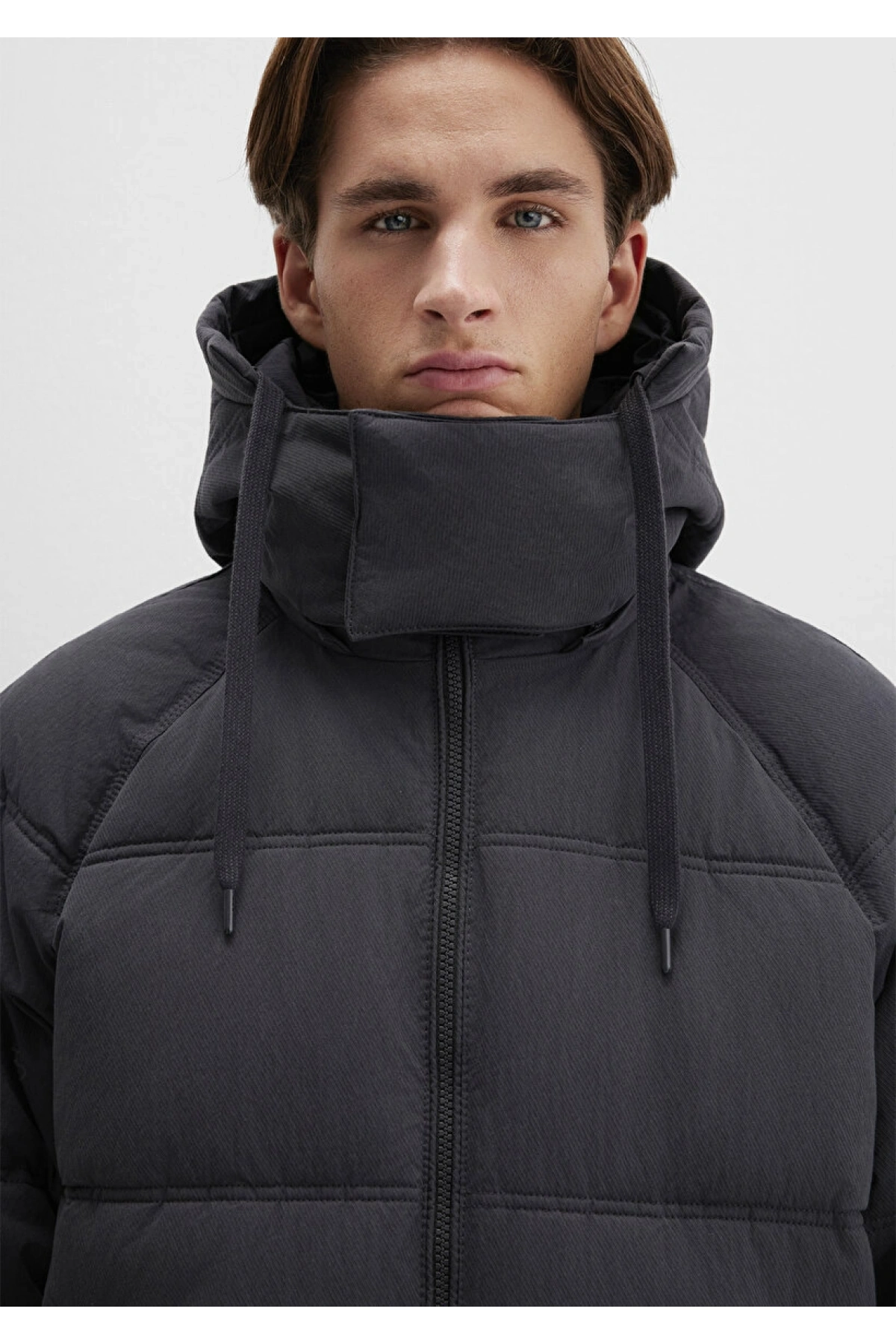 Mavi Kapüşonlu Antrasit Şişme Mont