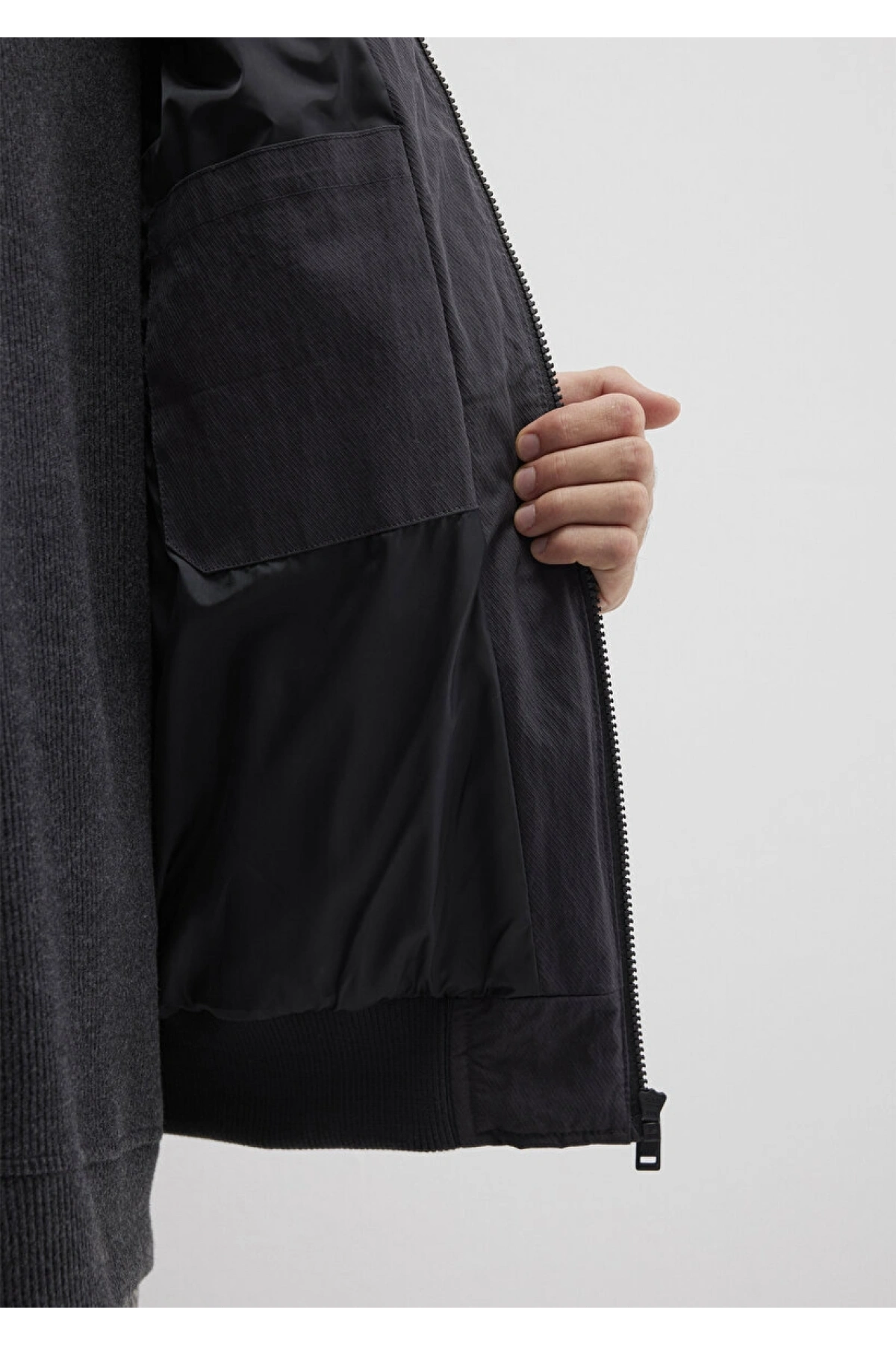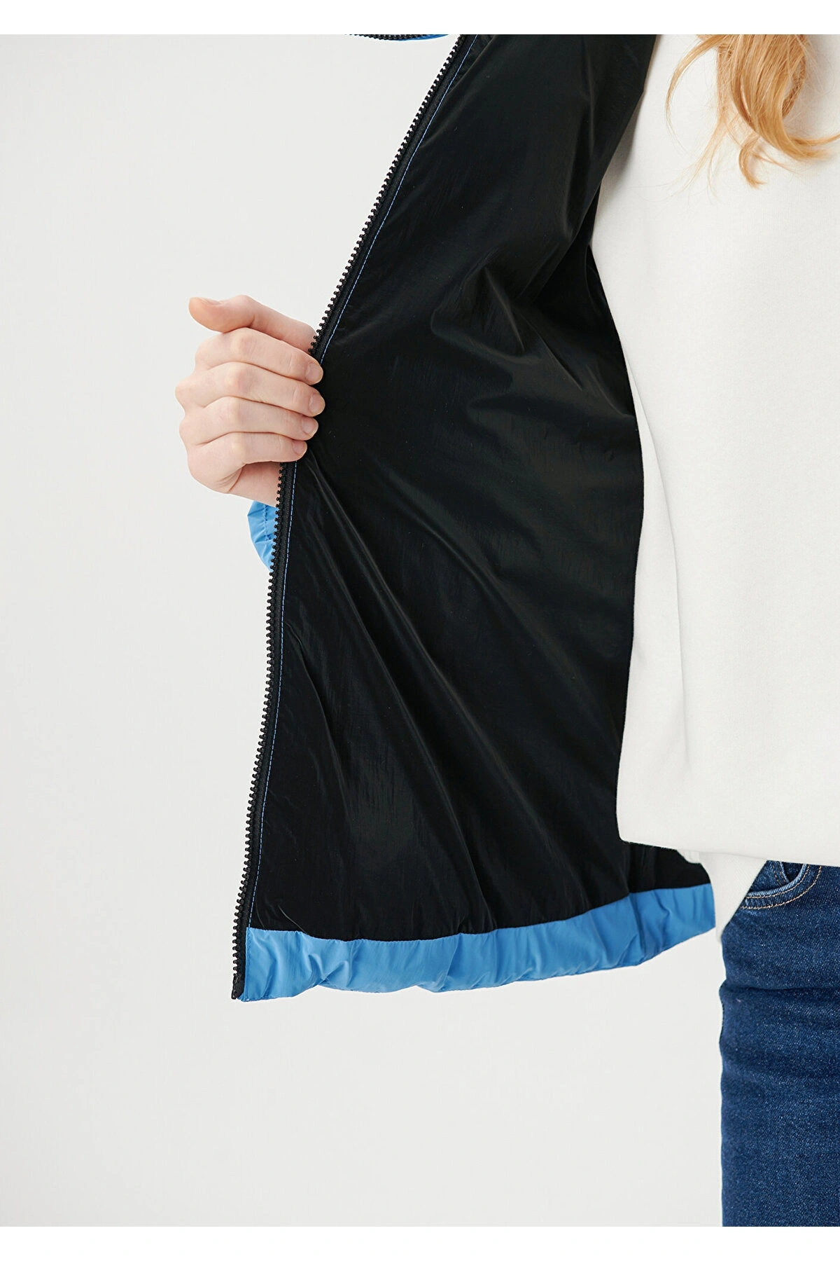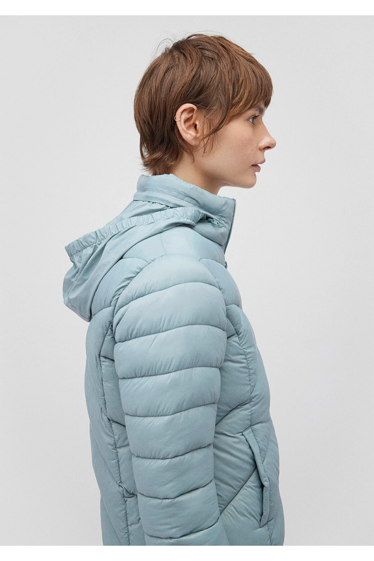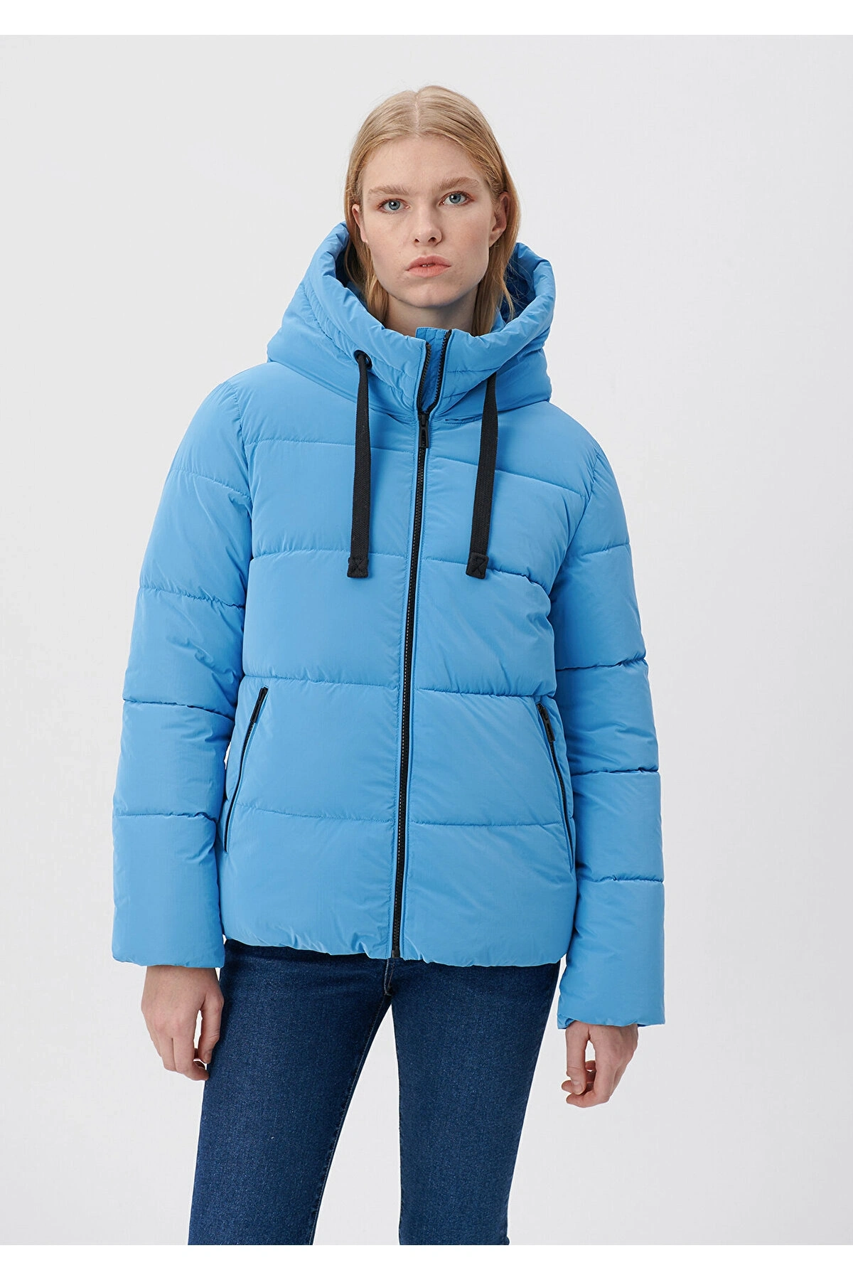 Mavi Kapüşonlu Antrasit Şişme Mont