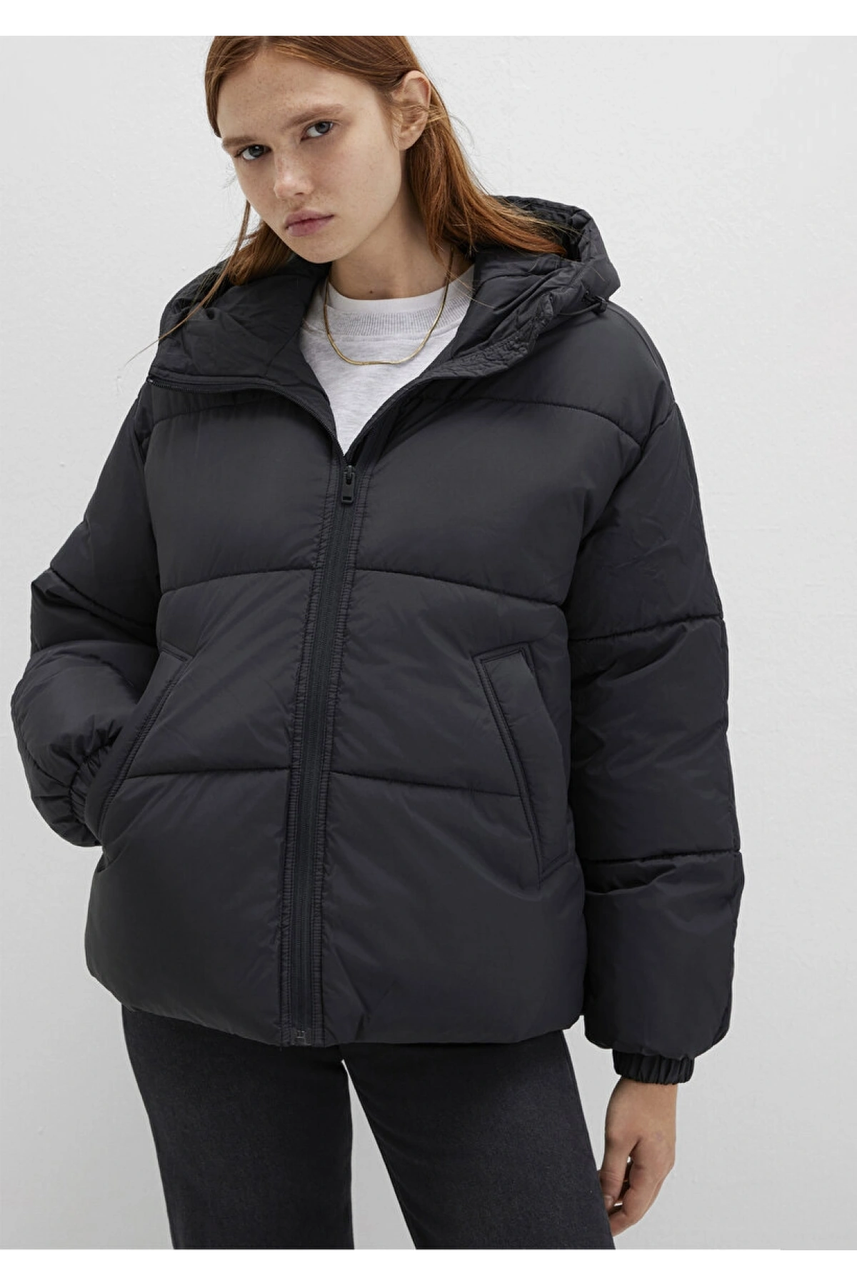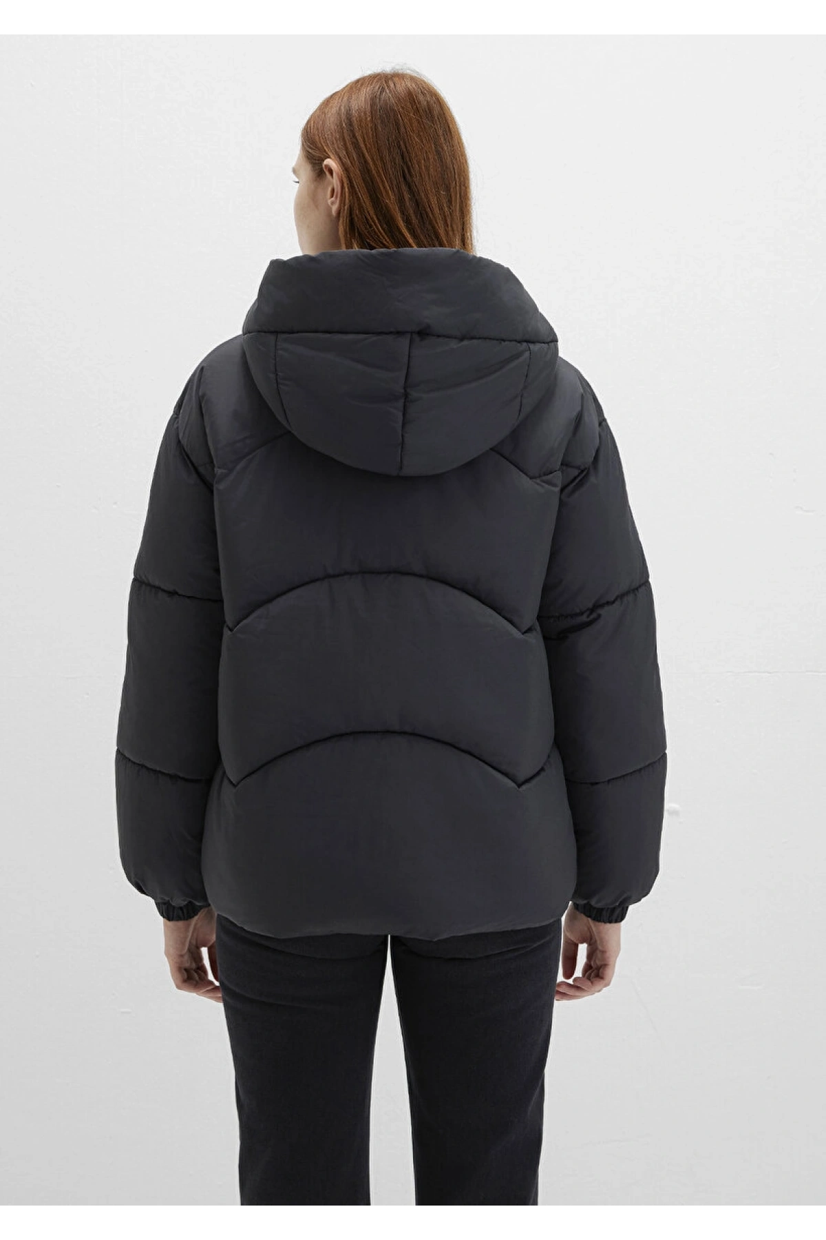 Su İtici Kapüşonlu Siyah Şişme Mont