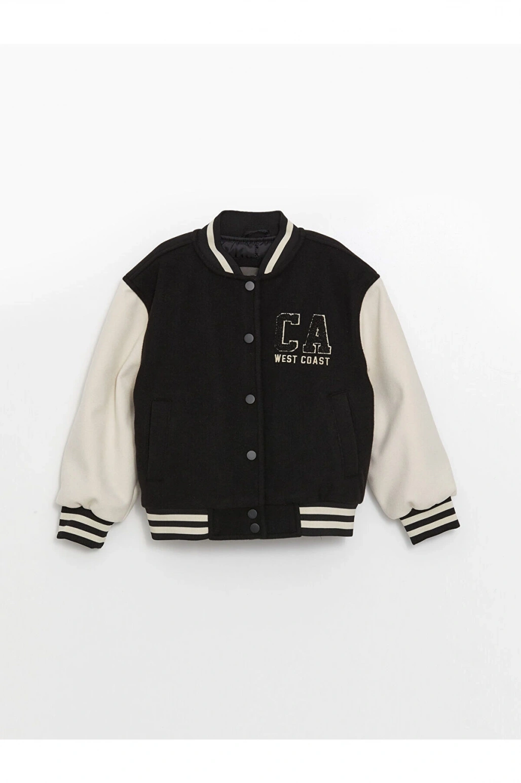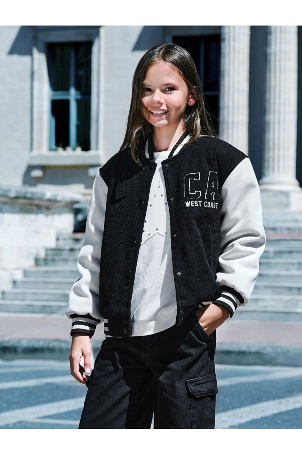 LCW Kids Yeni Siyah Nakışlı Kız Çocuk Bomber Mont
