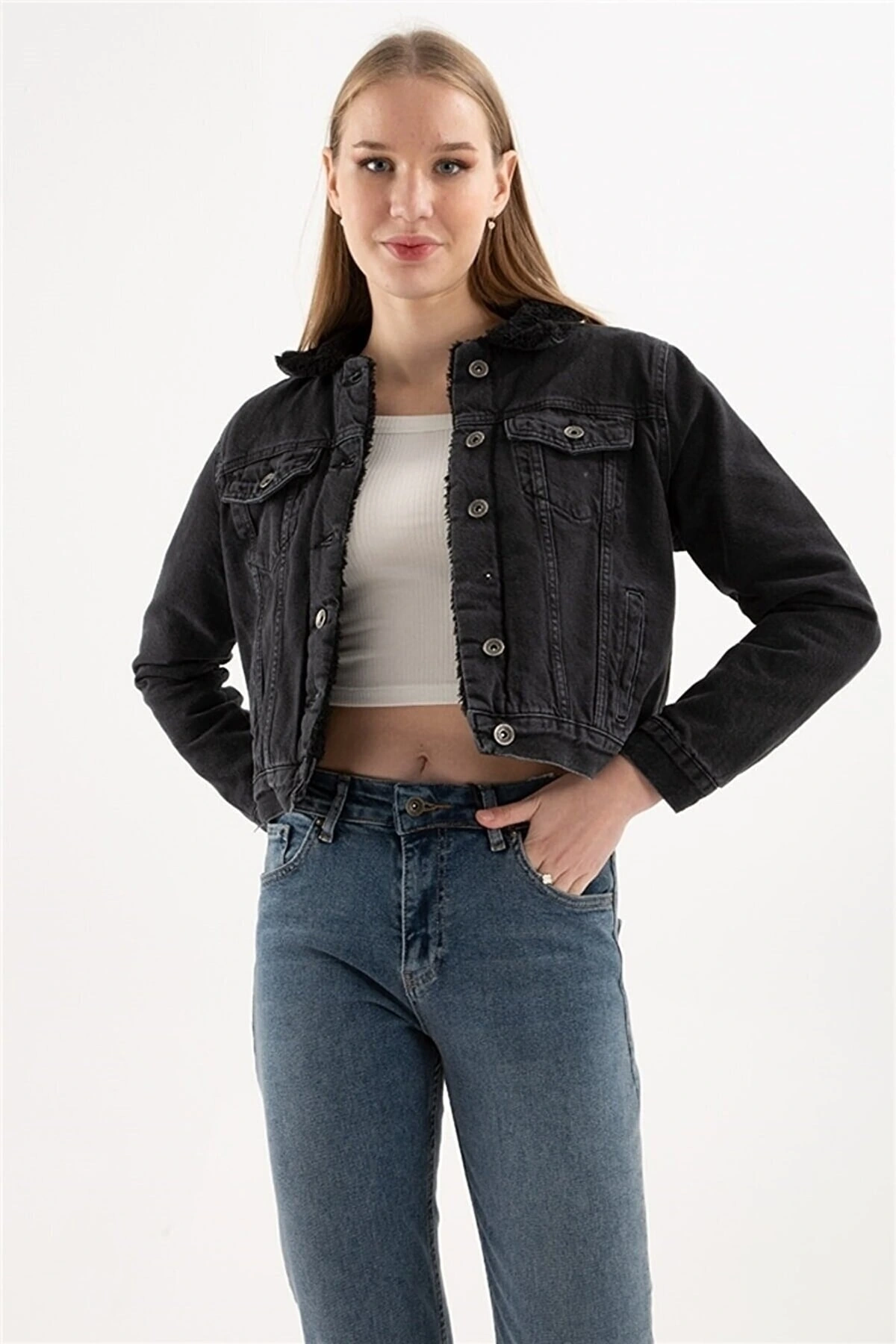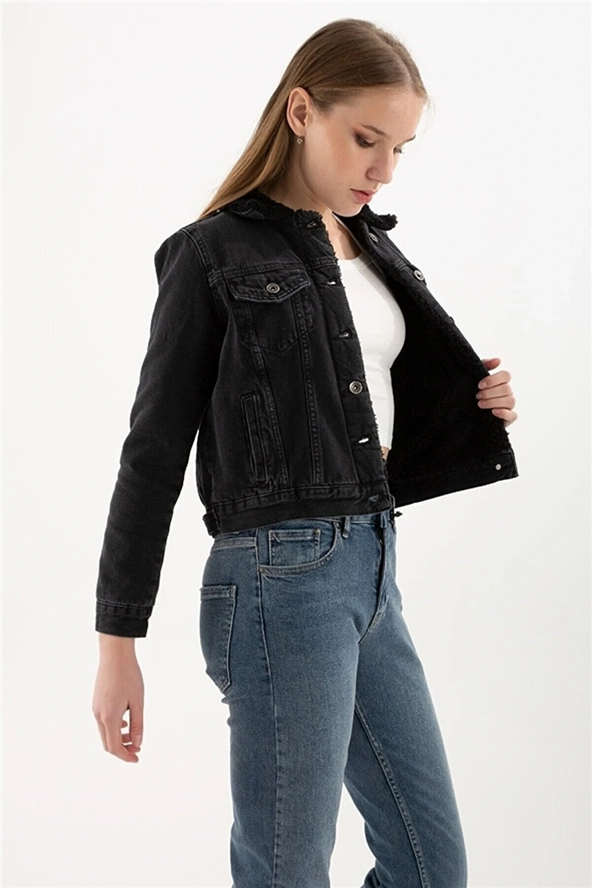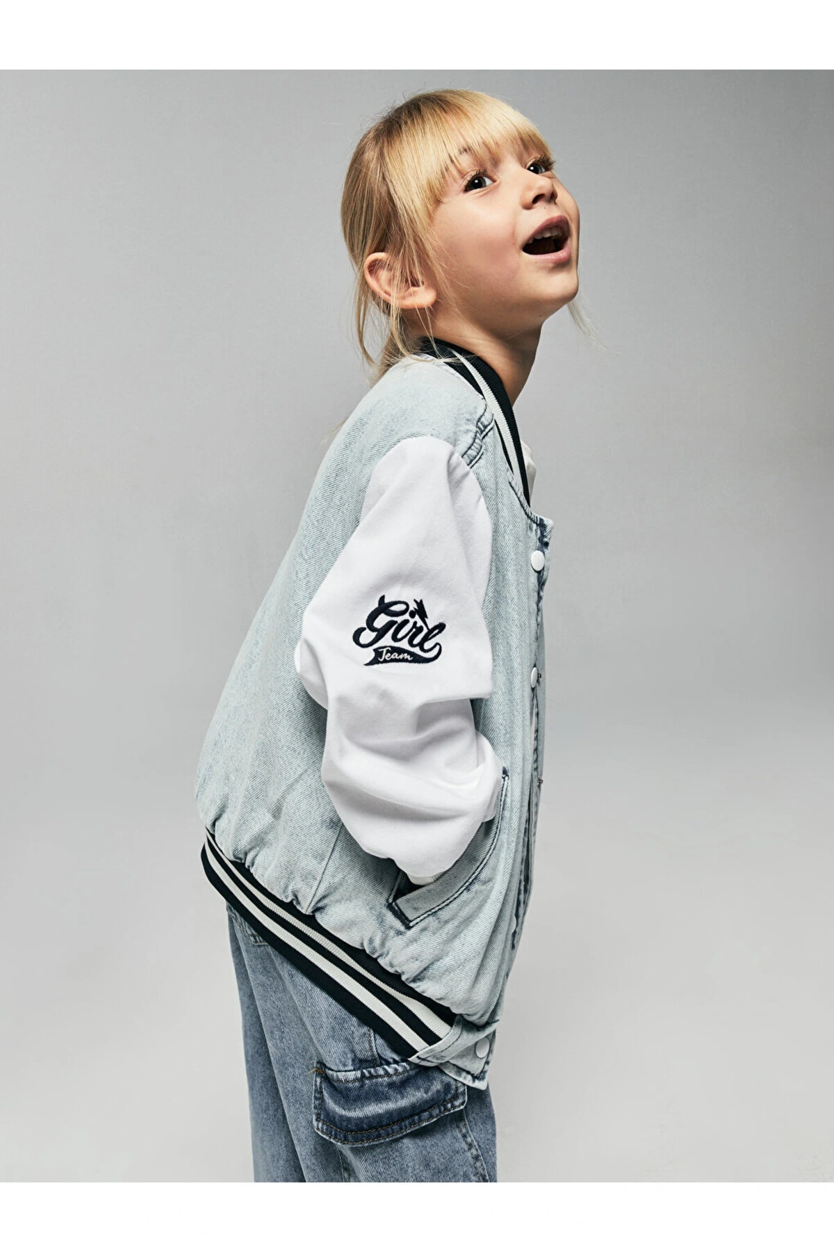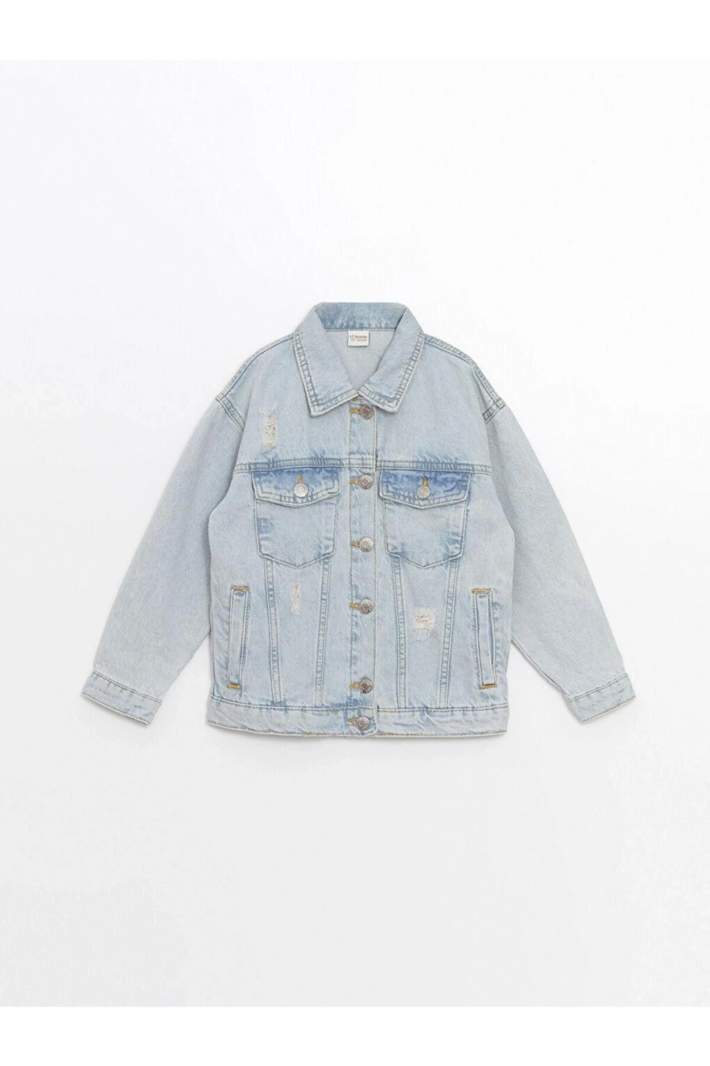 Asit Yıkamalı Basic Uzun Kollu Kız Çocuk Jean Ceket