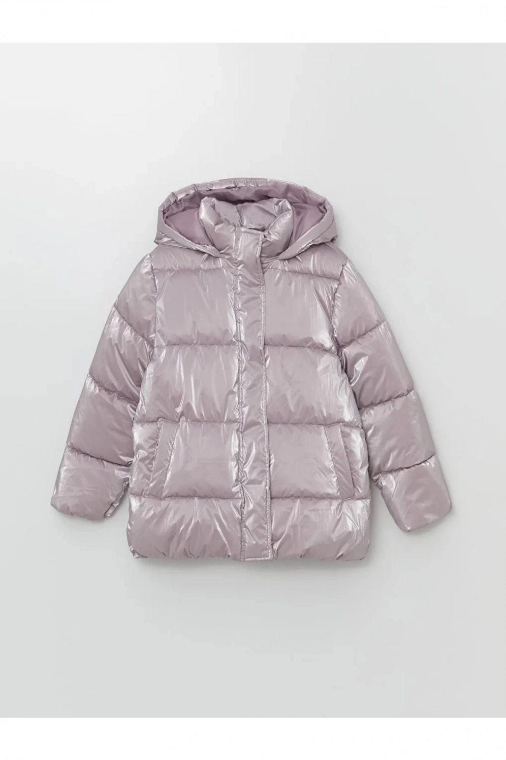 LCW Kids Mat Lila Kapüşonlu Kız Çocuk Şişme Mont