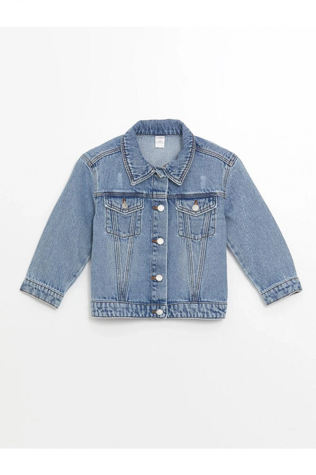 Asit Yıkamalı Gömlek Yaka Basic Kız Bebek Jean Ceket