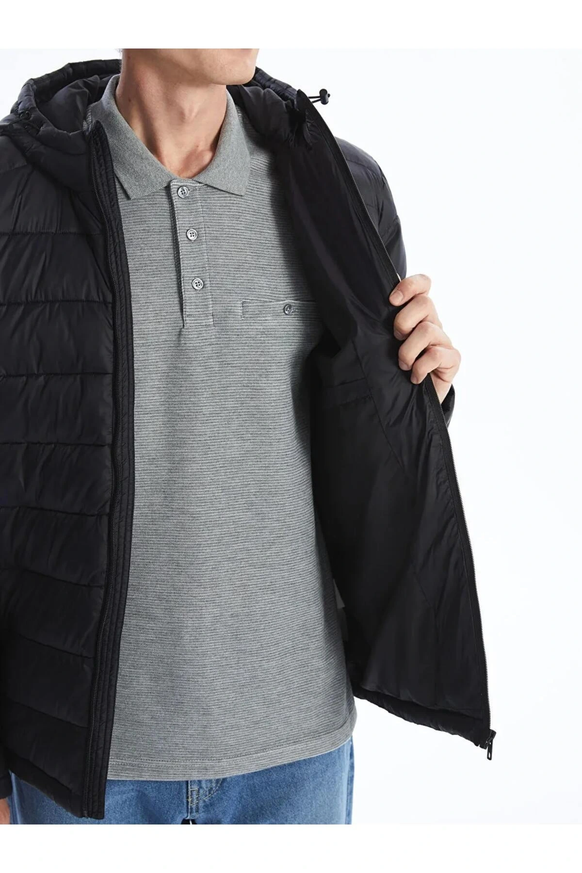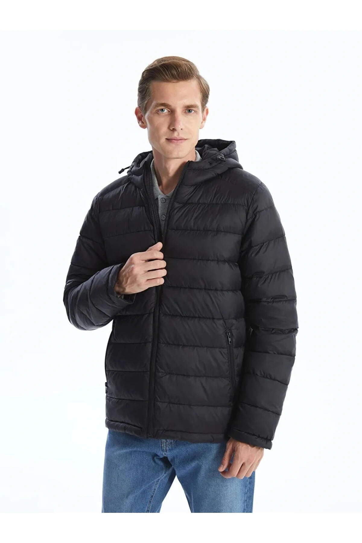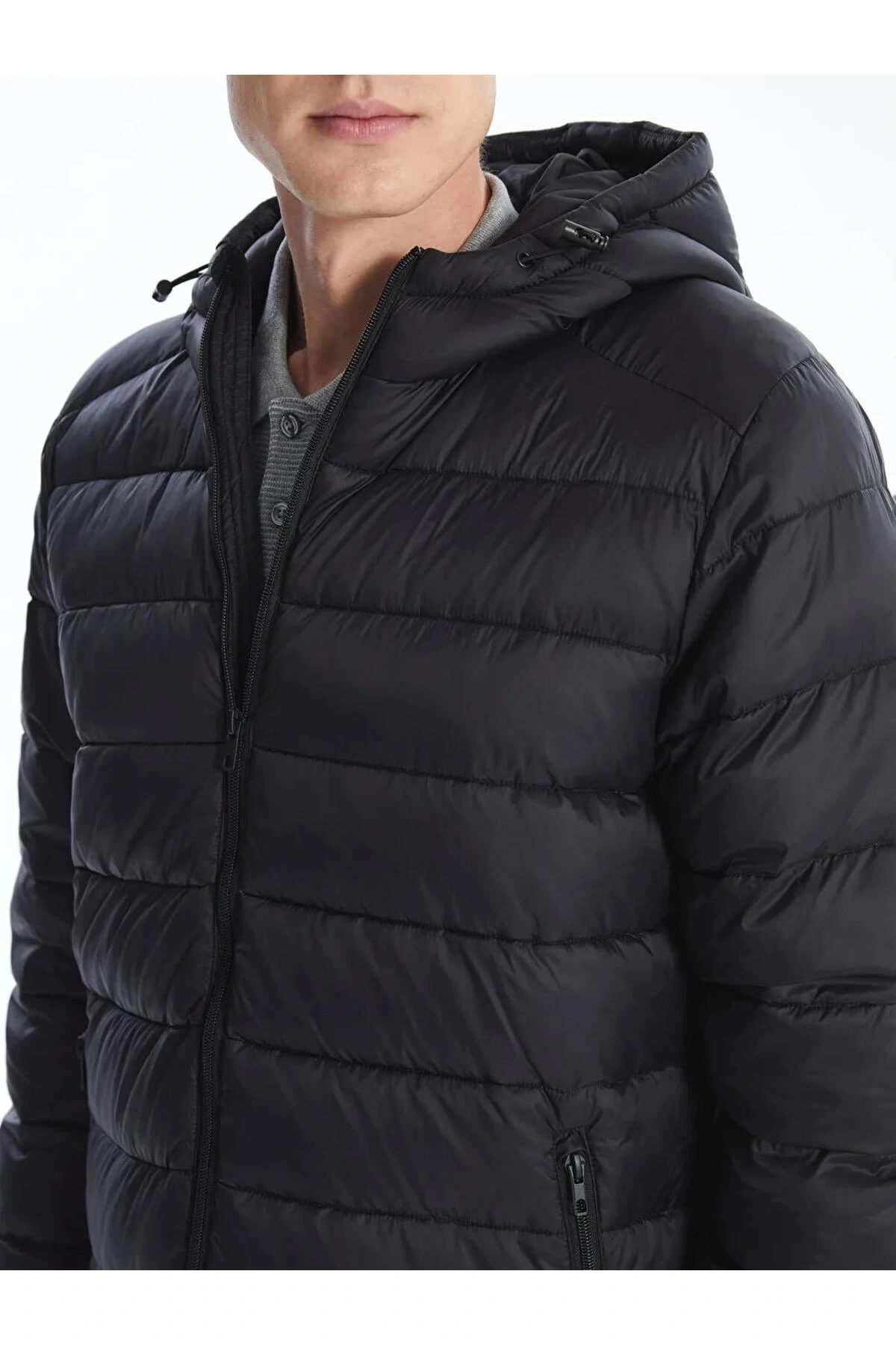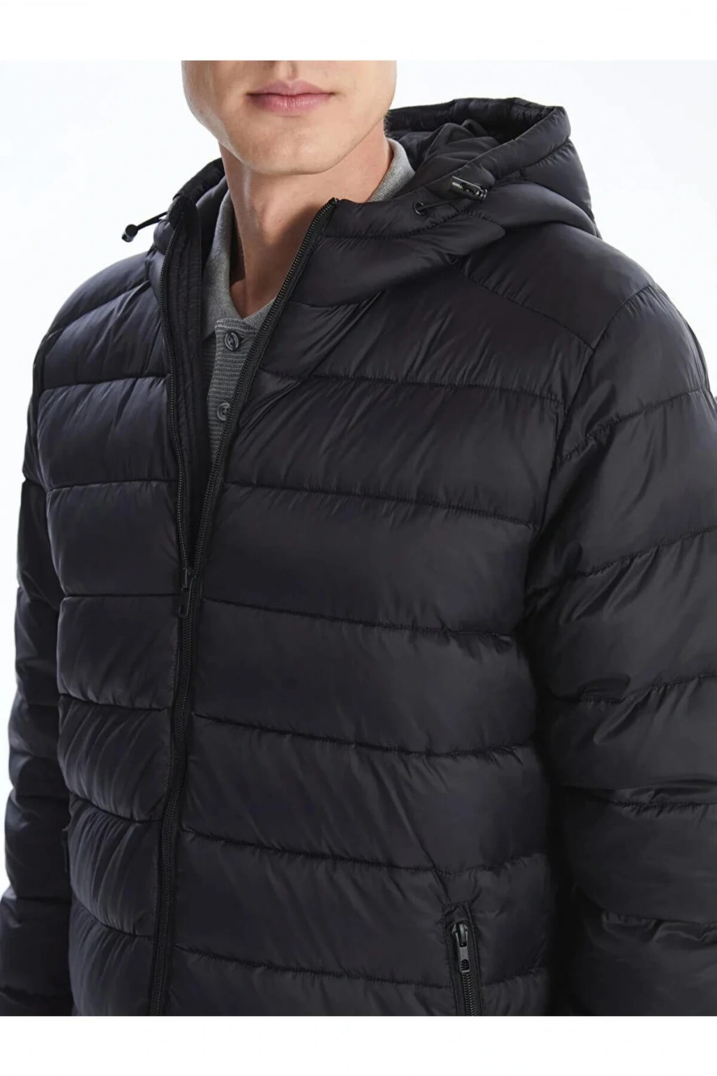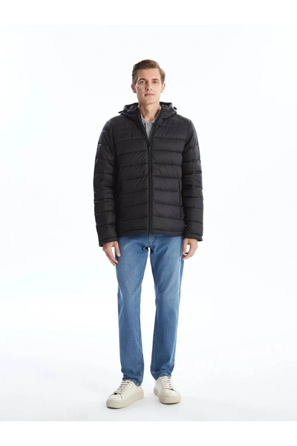 LCWAIKIKI Classic Siyah Standart Kalıp Kapüşonlu Erkek Şişme Mont