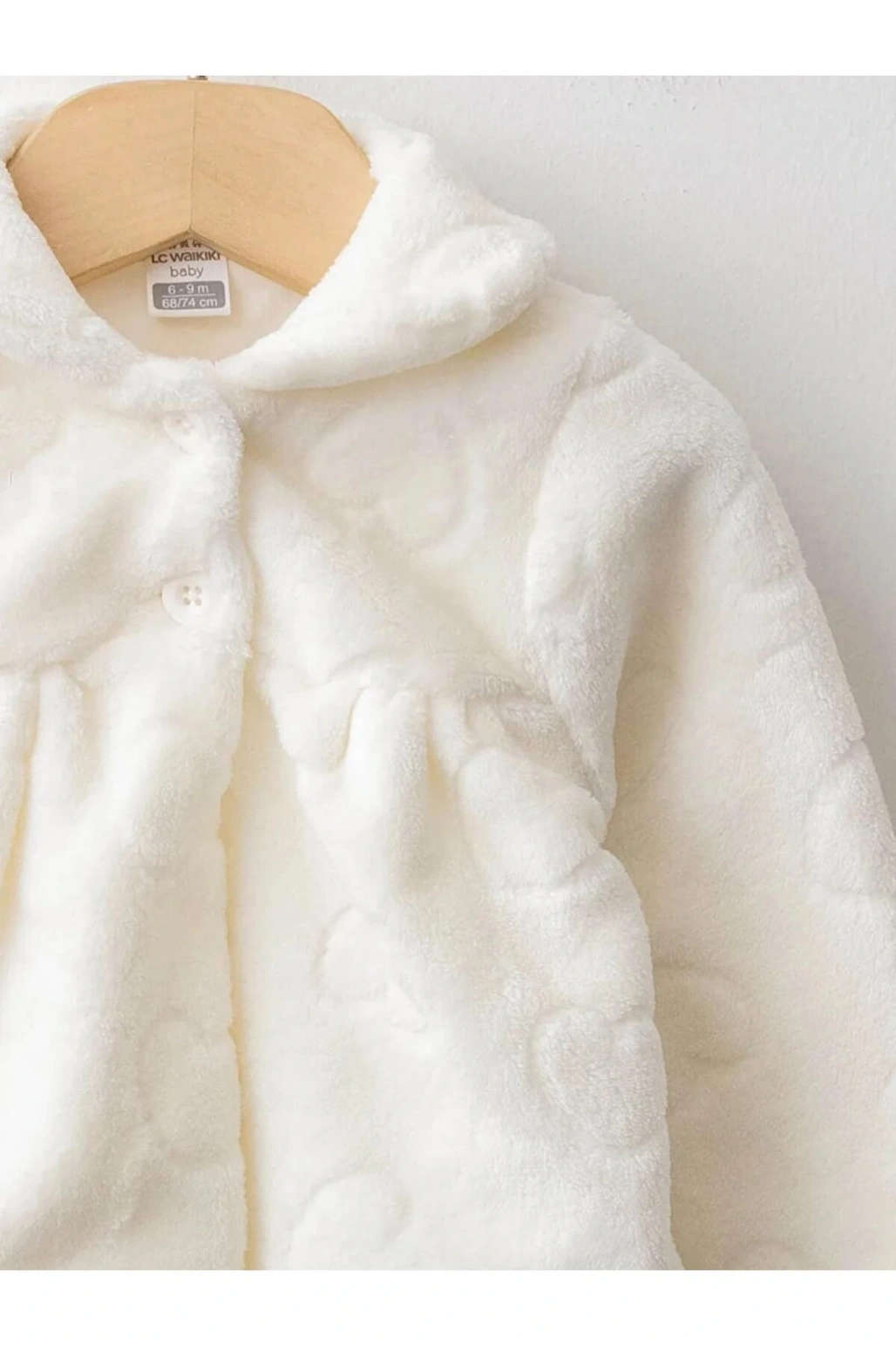 LCW baby Ekru Gömlek Yaka Uzun Kollu Pelüş Kız Bebek Mont