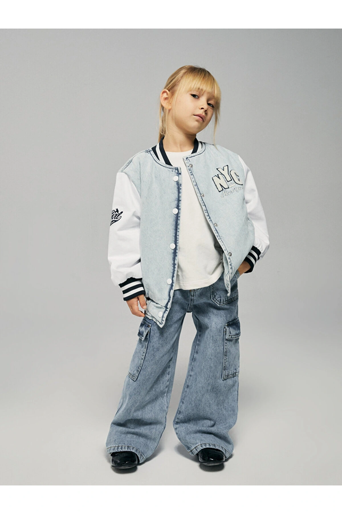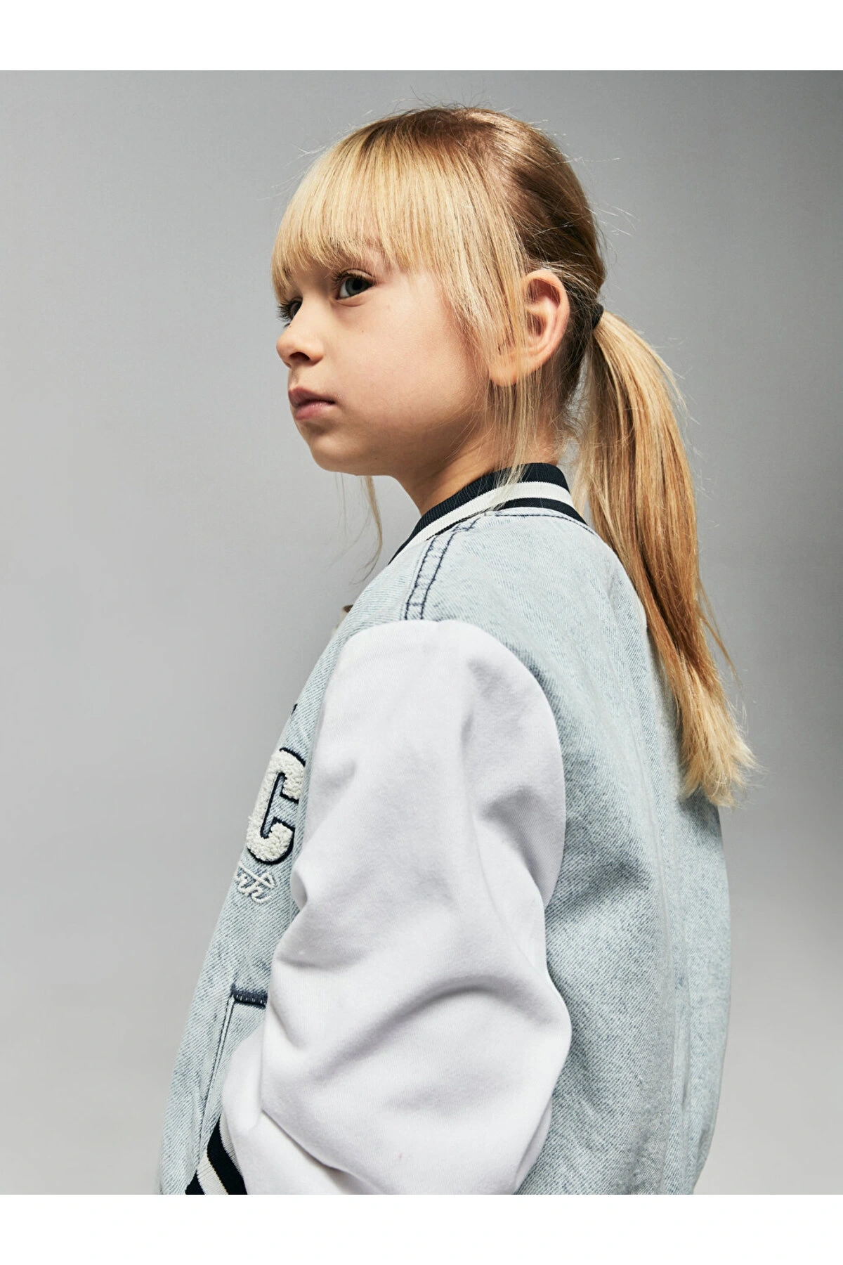 Nakışlı Kız Çocuk Jean Kolej Ceket