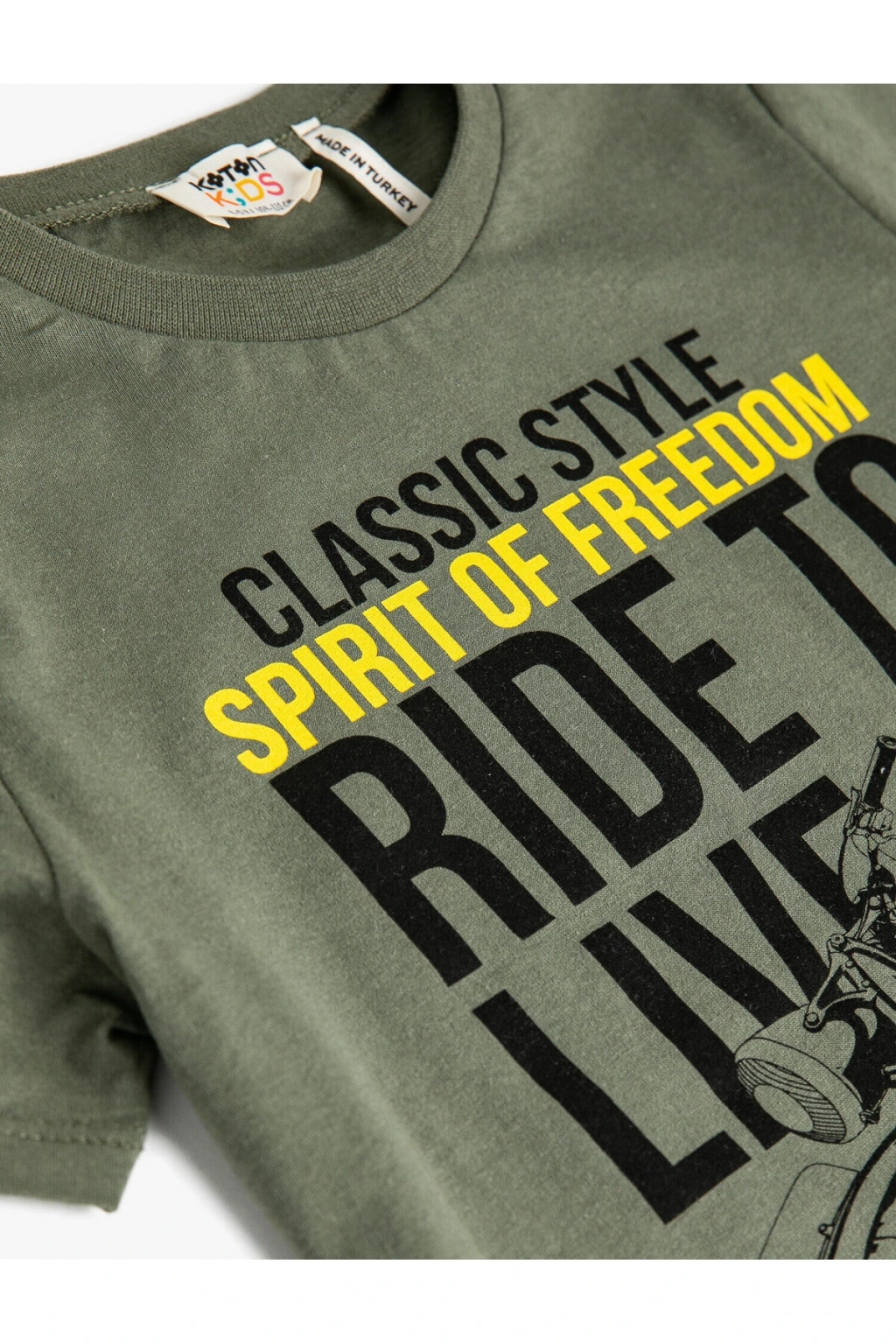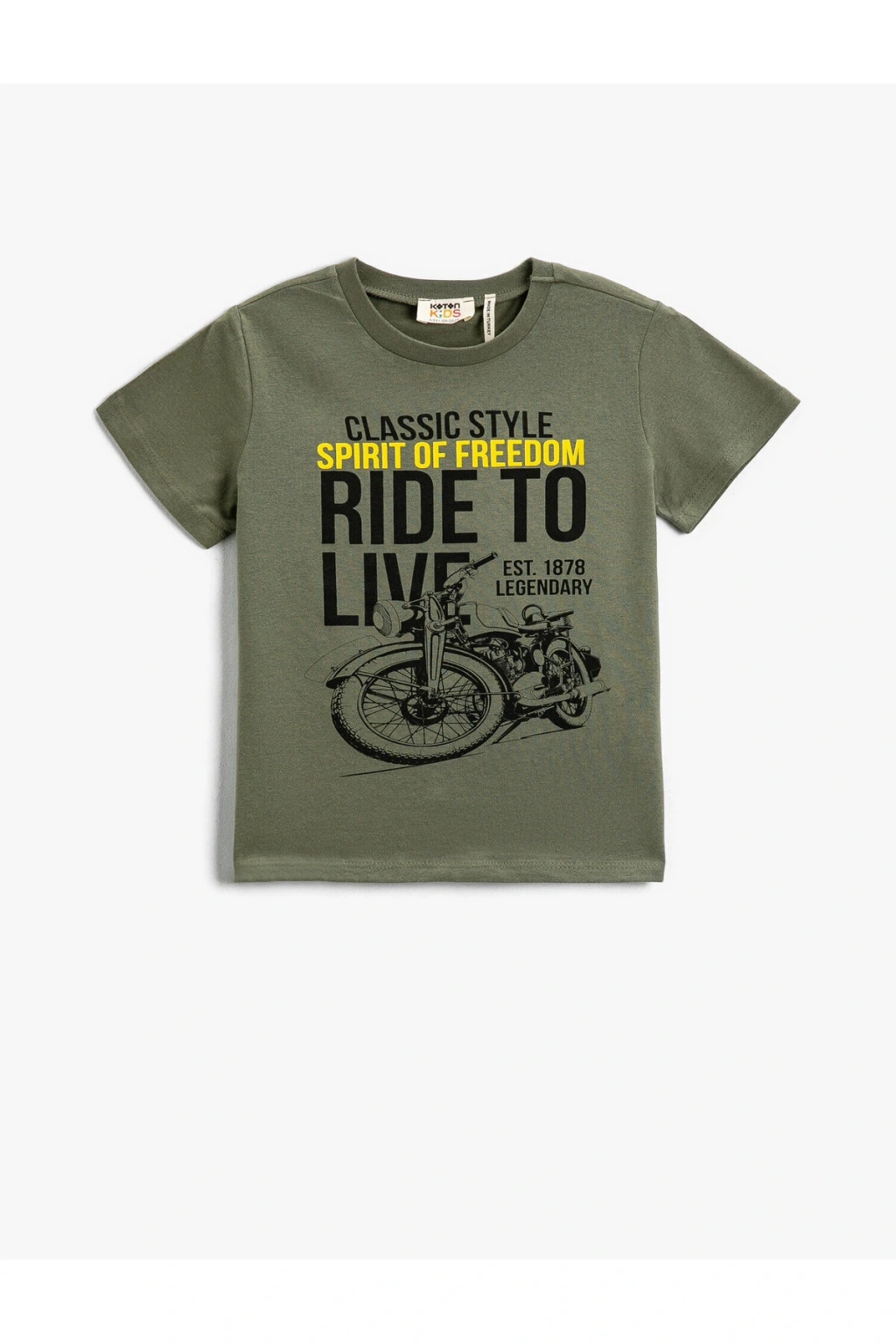 Pamuklu, Kısa Kollu, Motosiklet Baskılı Bisiklet Yaka Tişört | Model Boy: 1 | Model Kalça: 1 | Model Üst: S | Model Bel: 1 | Model Göğüs: 1 | Model Jean: 32/34