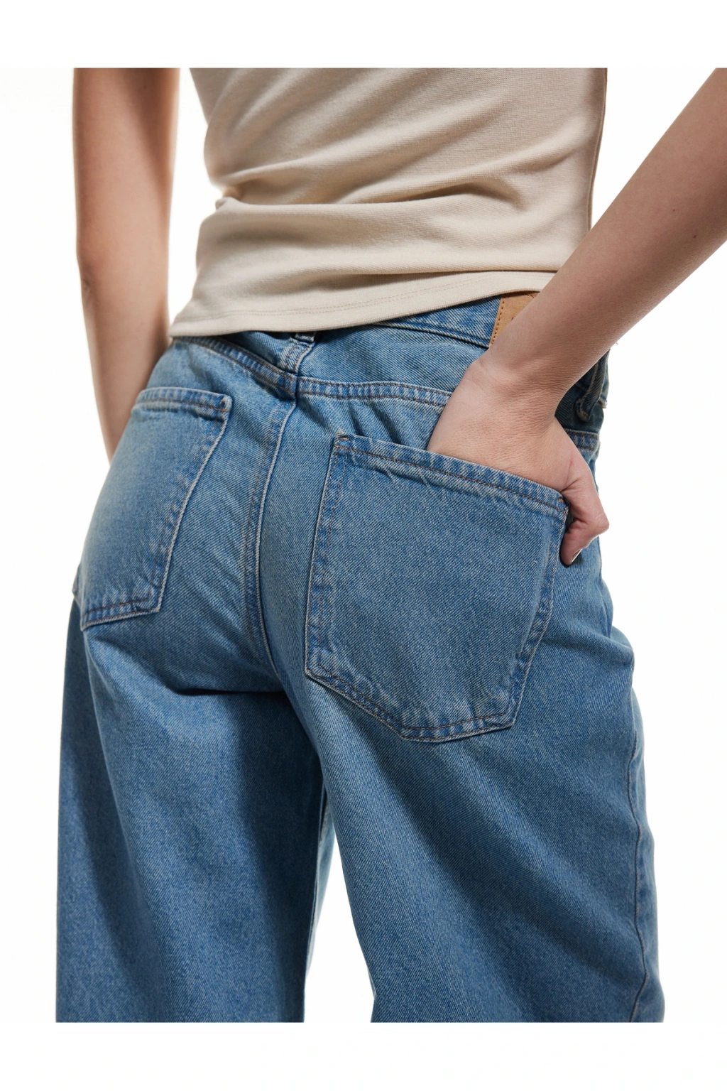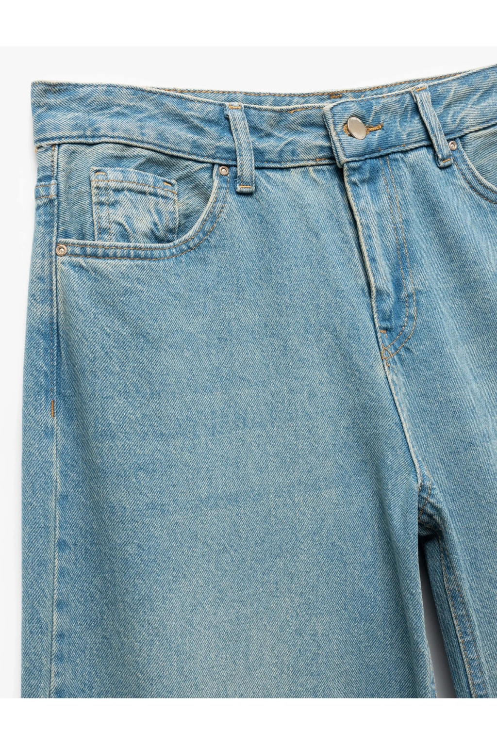 Pamuklu, bol kesim, cepli denim pantolon, rahat ve şık bir giyim deneyimi sunuyor. Beş cep tasarımı ve fermuarlı kapaması ile günlük kullanımda kullanım kolaylığı sağlıyor. Standart bel yüksekliğiyle konfor sunarken, düz paça kesimiyle modern bir görünüm yaratıyor.