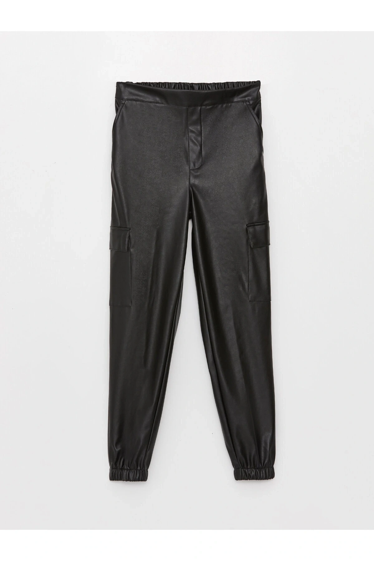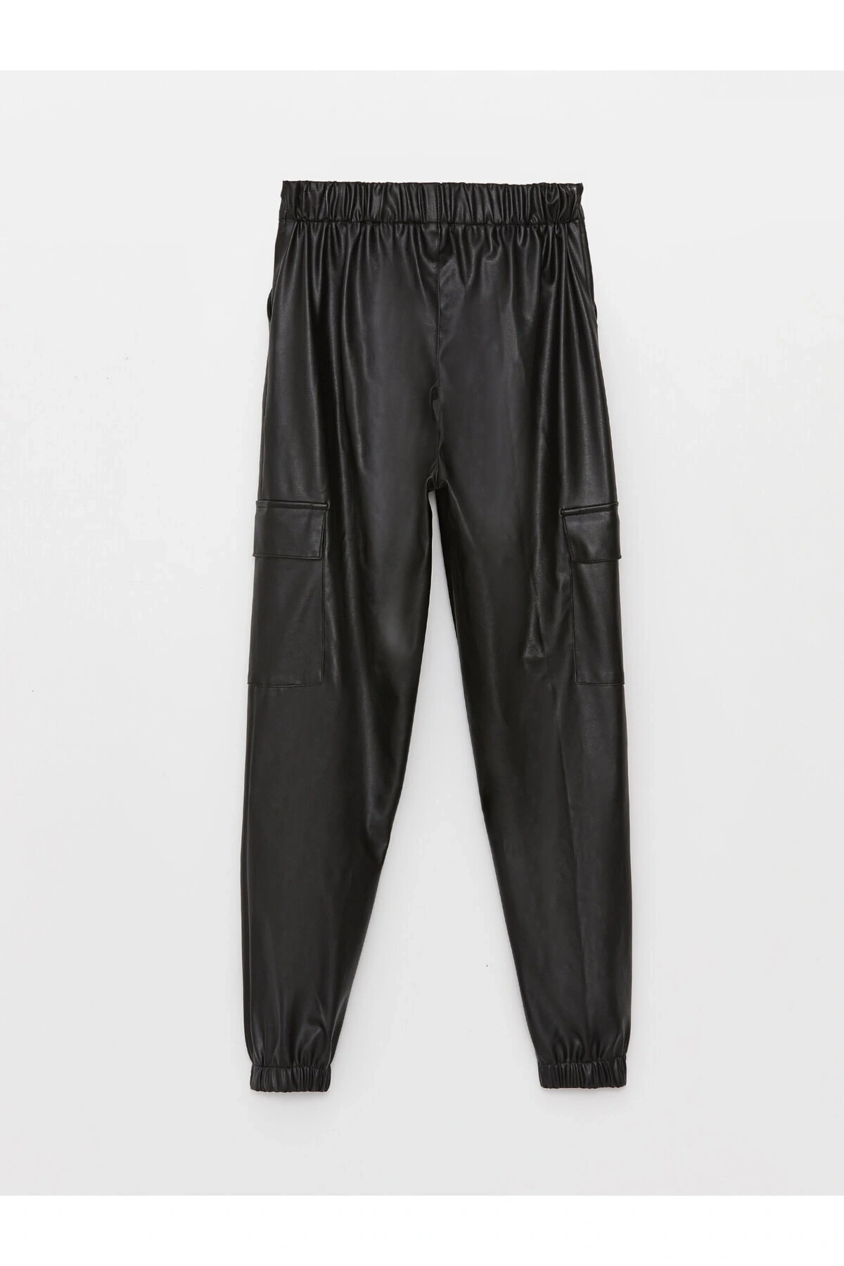 Beli Lastikli Deri Görünümlü Kız Çocuk Jogger Pantolon