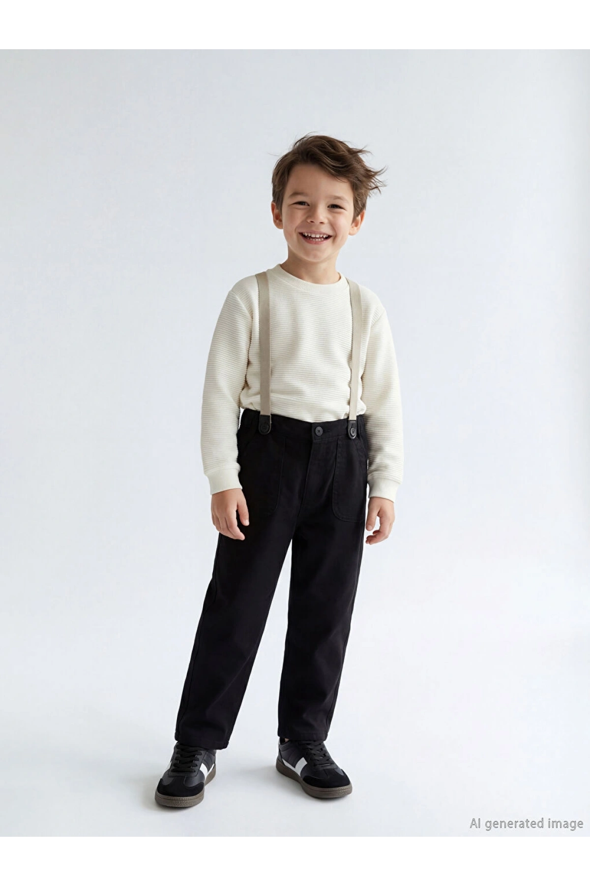 LCW Kids Siyah Beli Lastikli Askılı Erkek Çocuk Pantolon