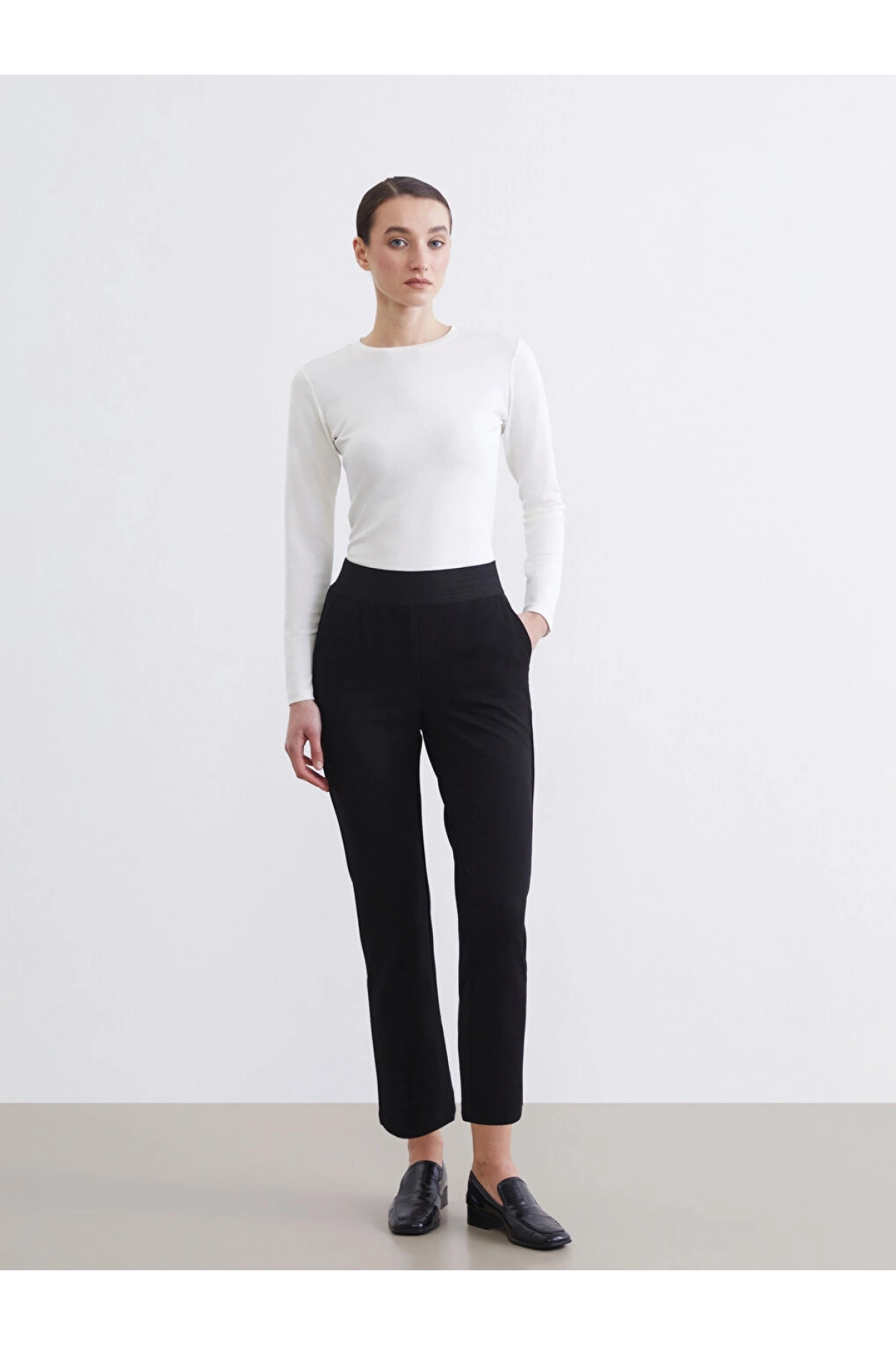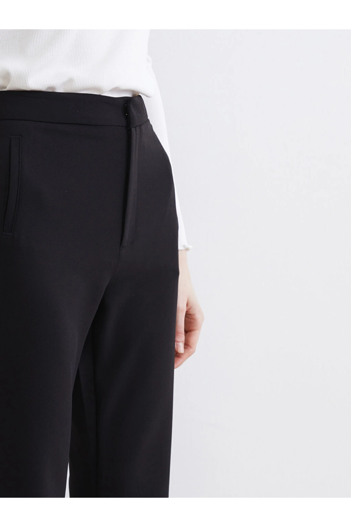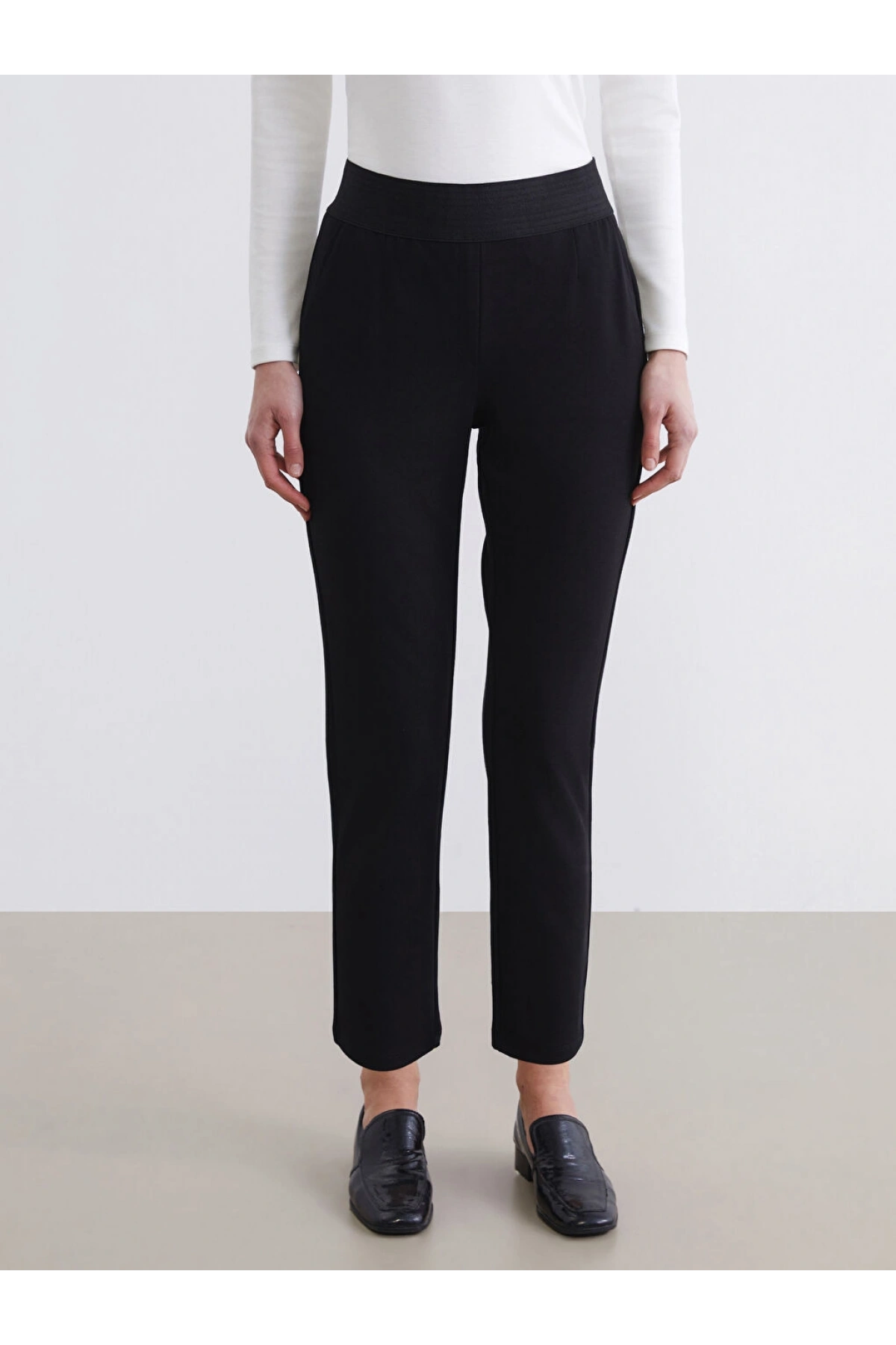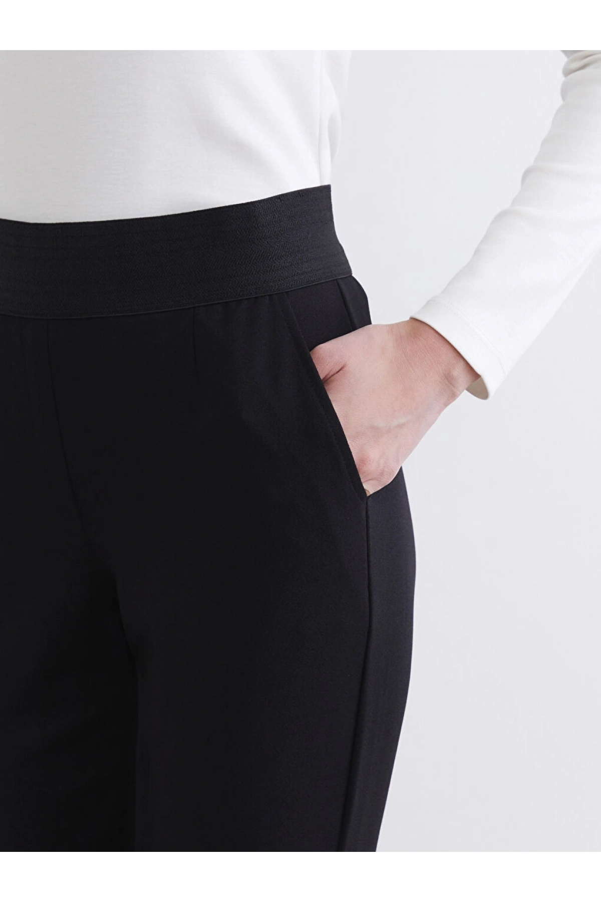 LCW Modest Siyah Beli Lastikli Krep Kadın Pantolon