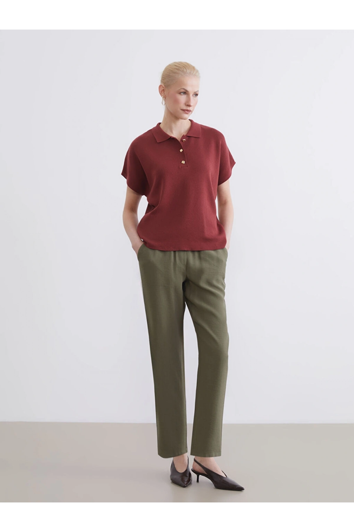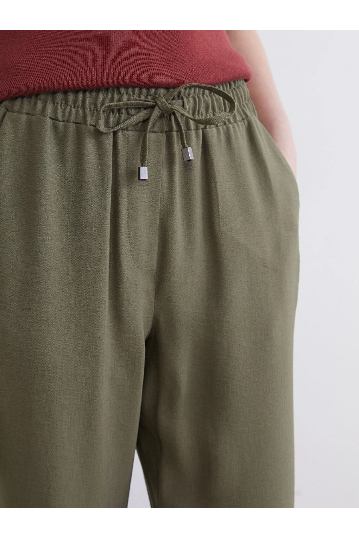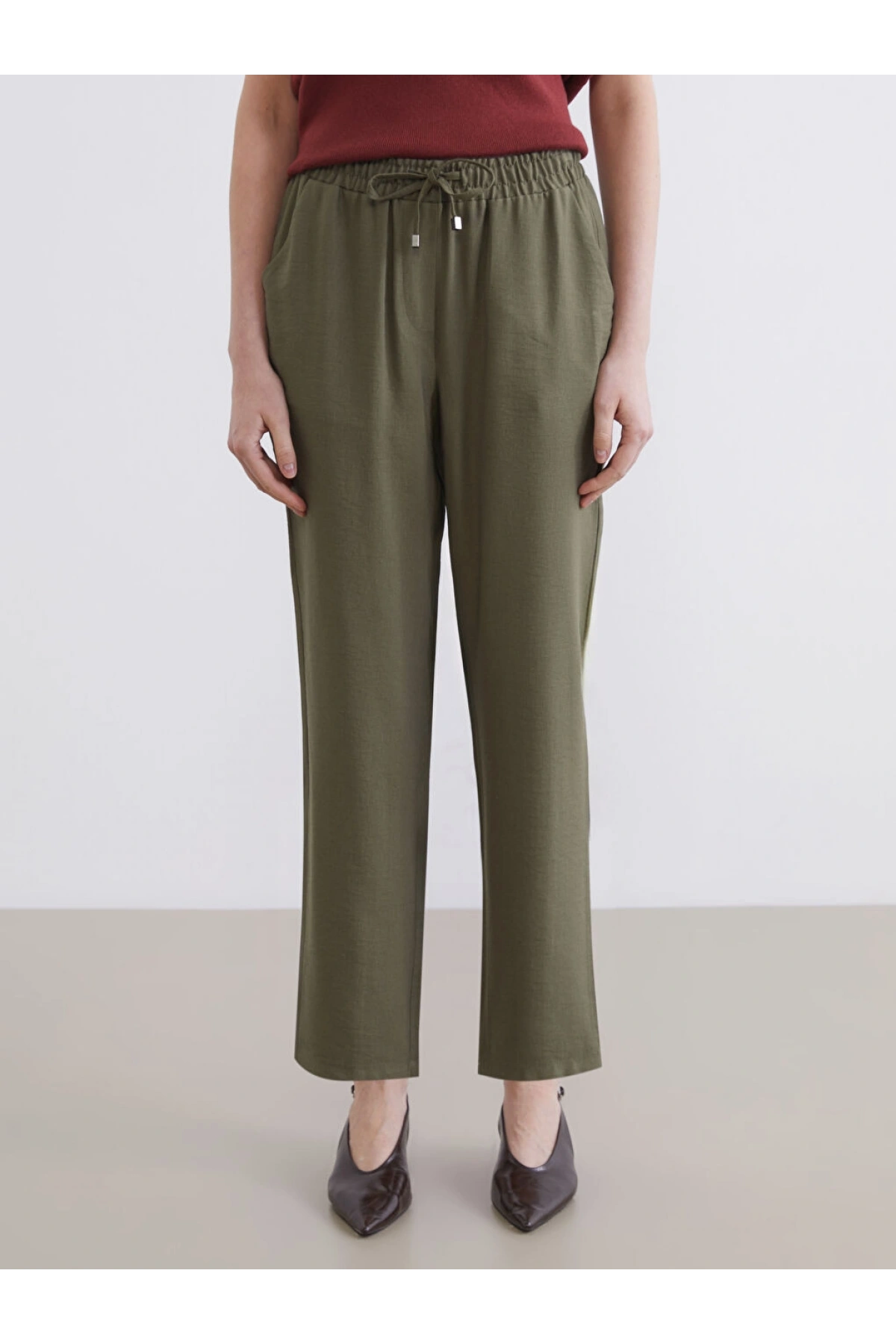 LCWAIKIKI Classic Haki Beli Lastikli Kadın Pantolon