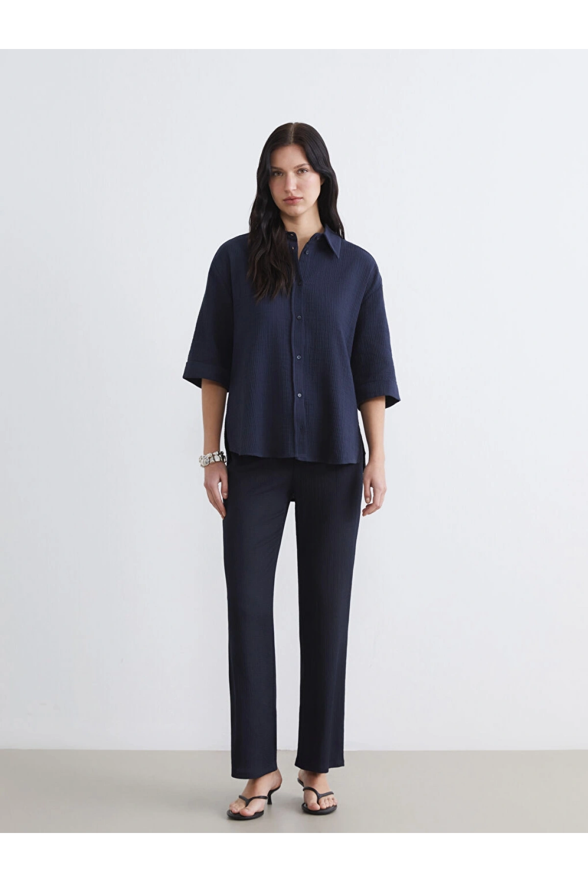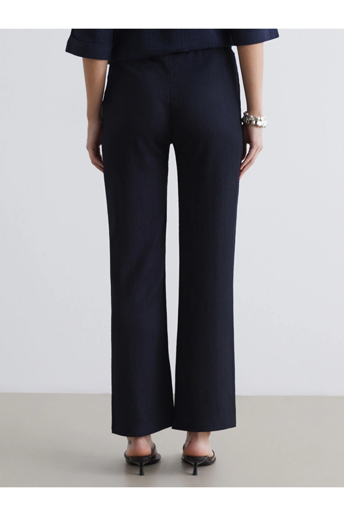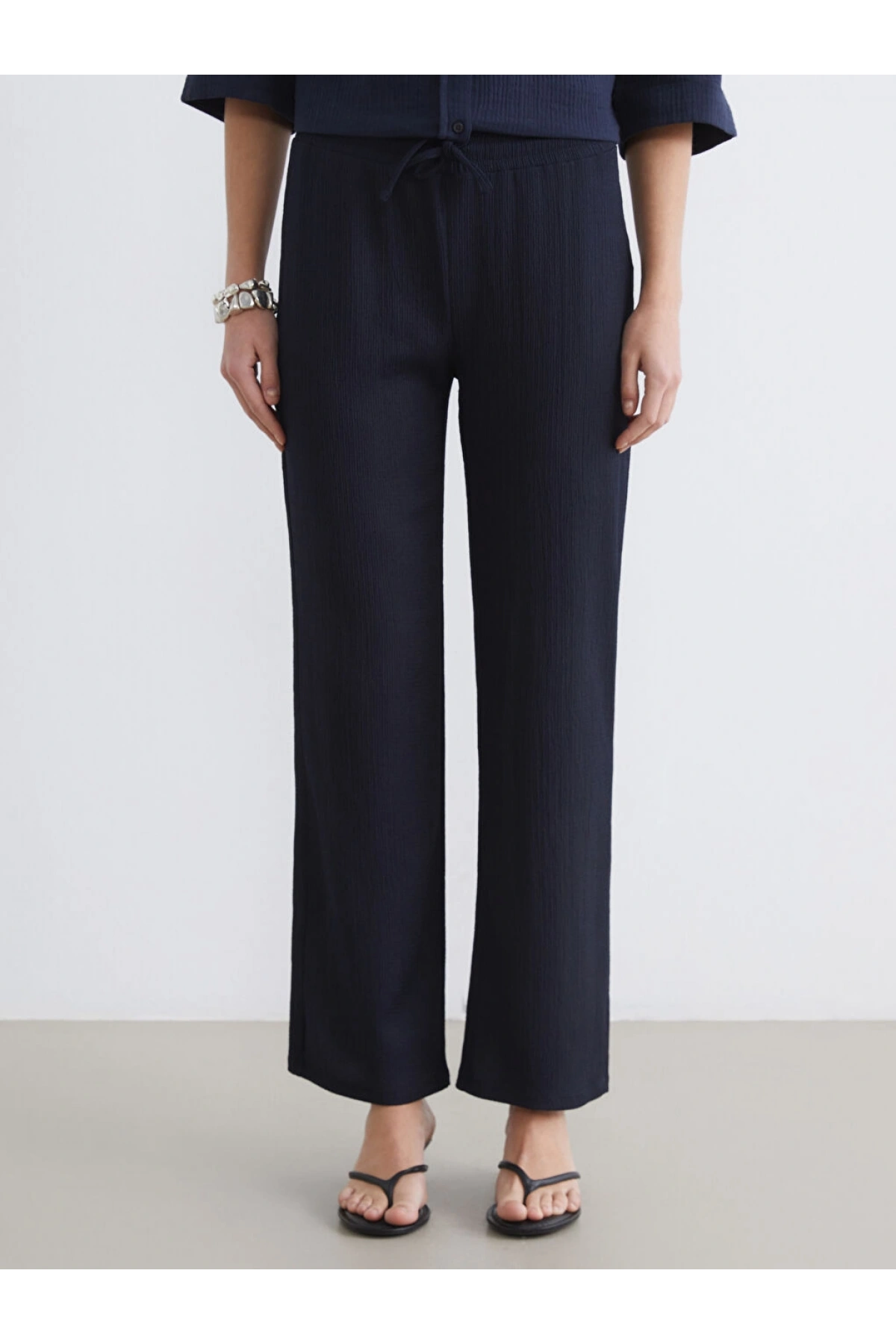 LCW Comfort Lacivert Beli Lastikli Dokulu Kadın Pantolon
