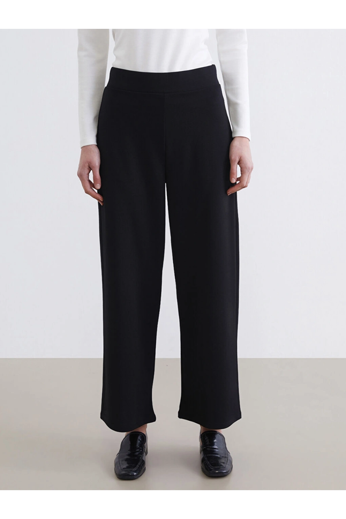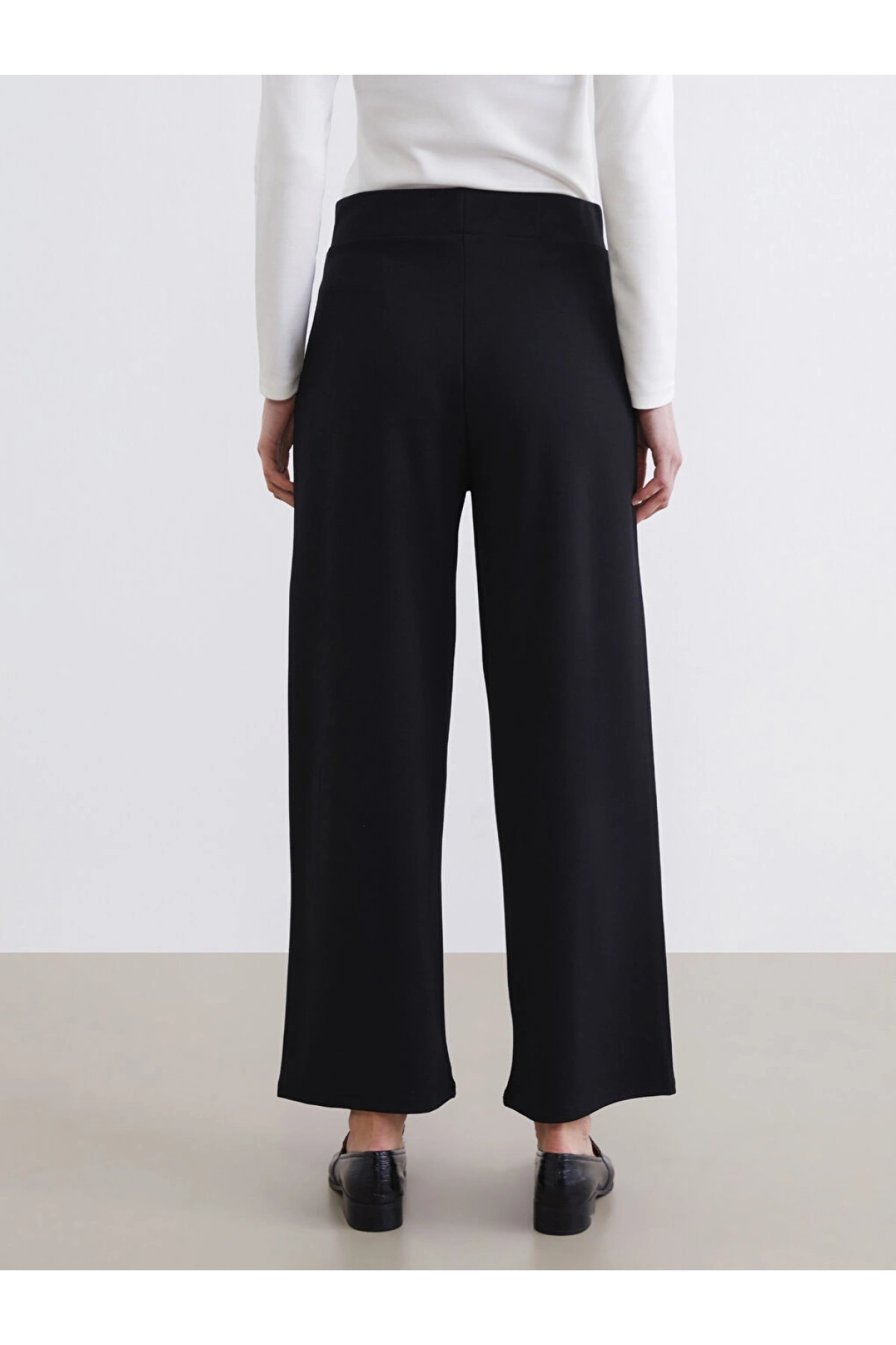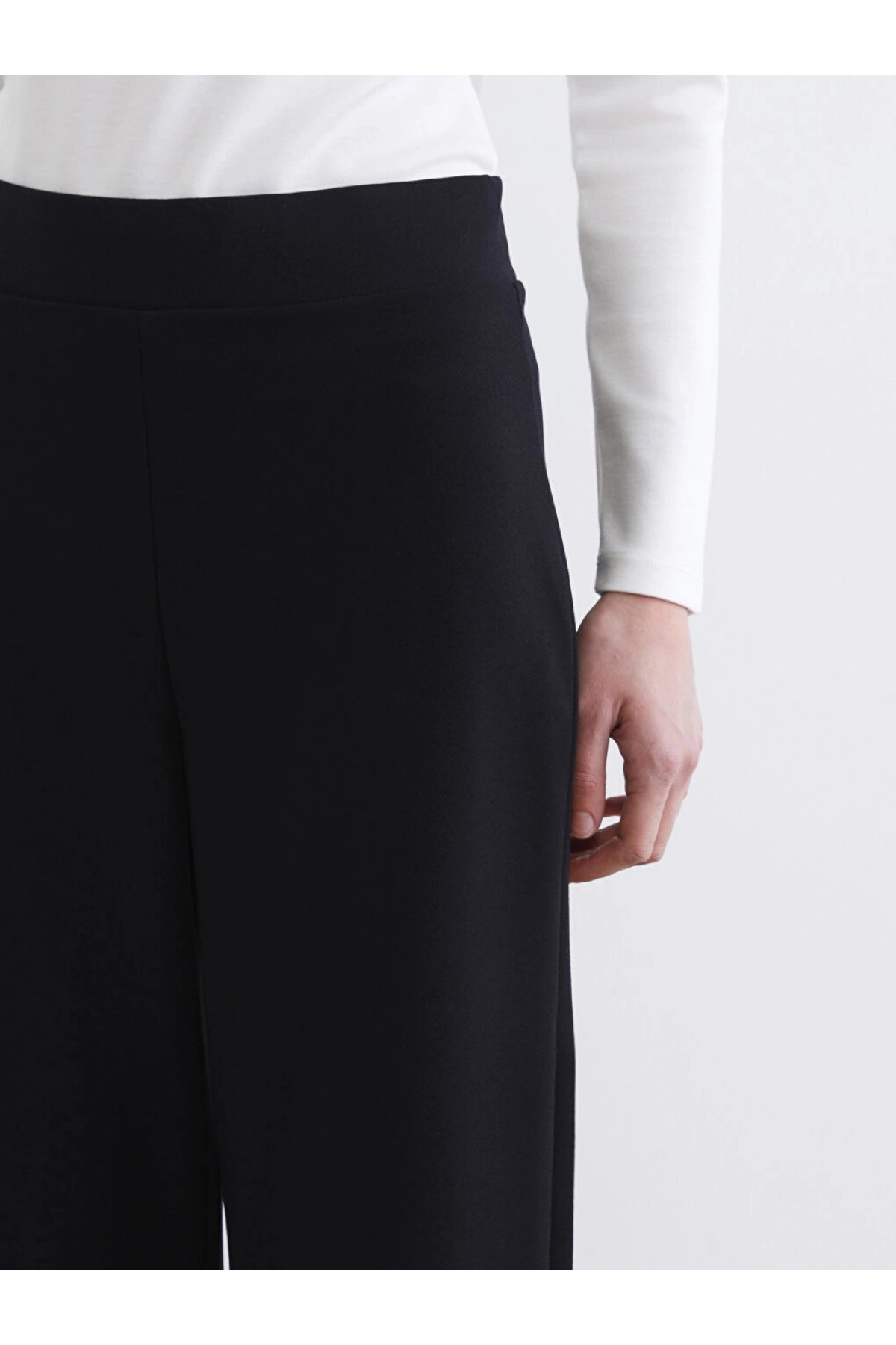 LCW Modest Siyah Beli Lastikli Geniş Paça Kadın Pantolon