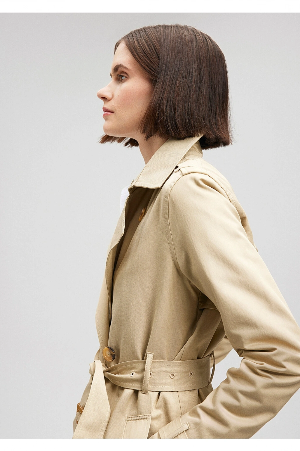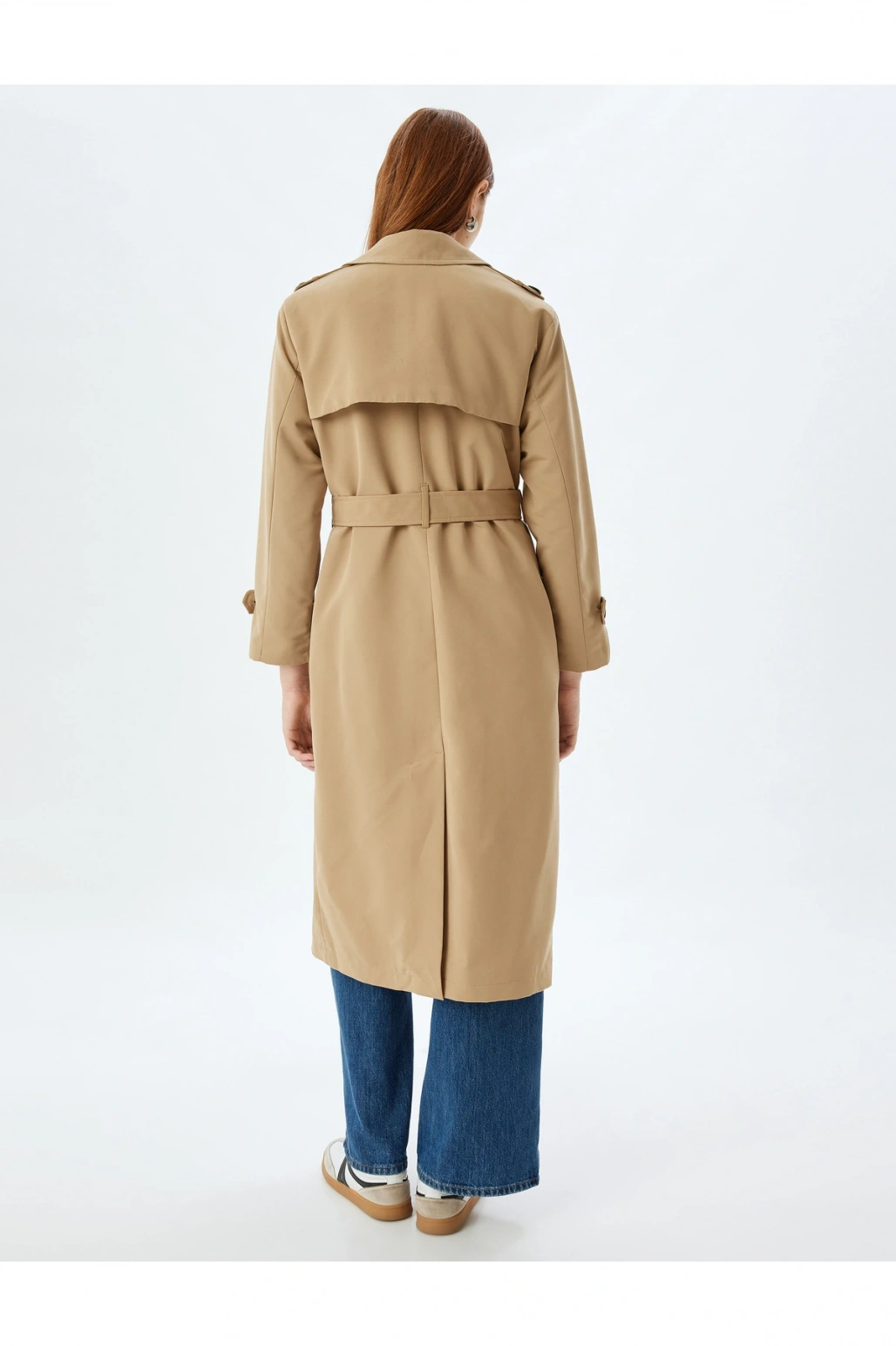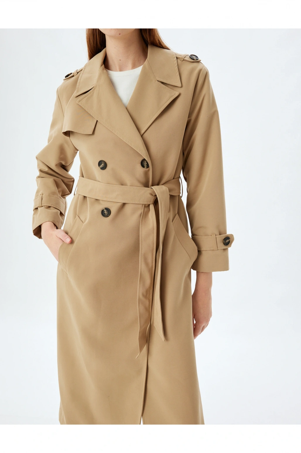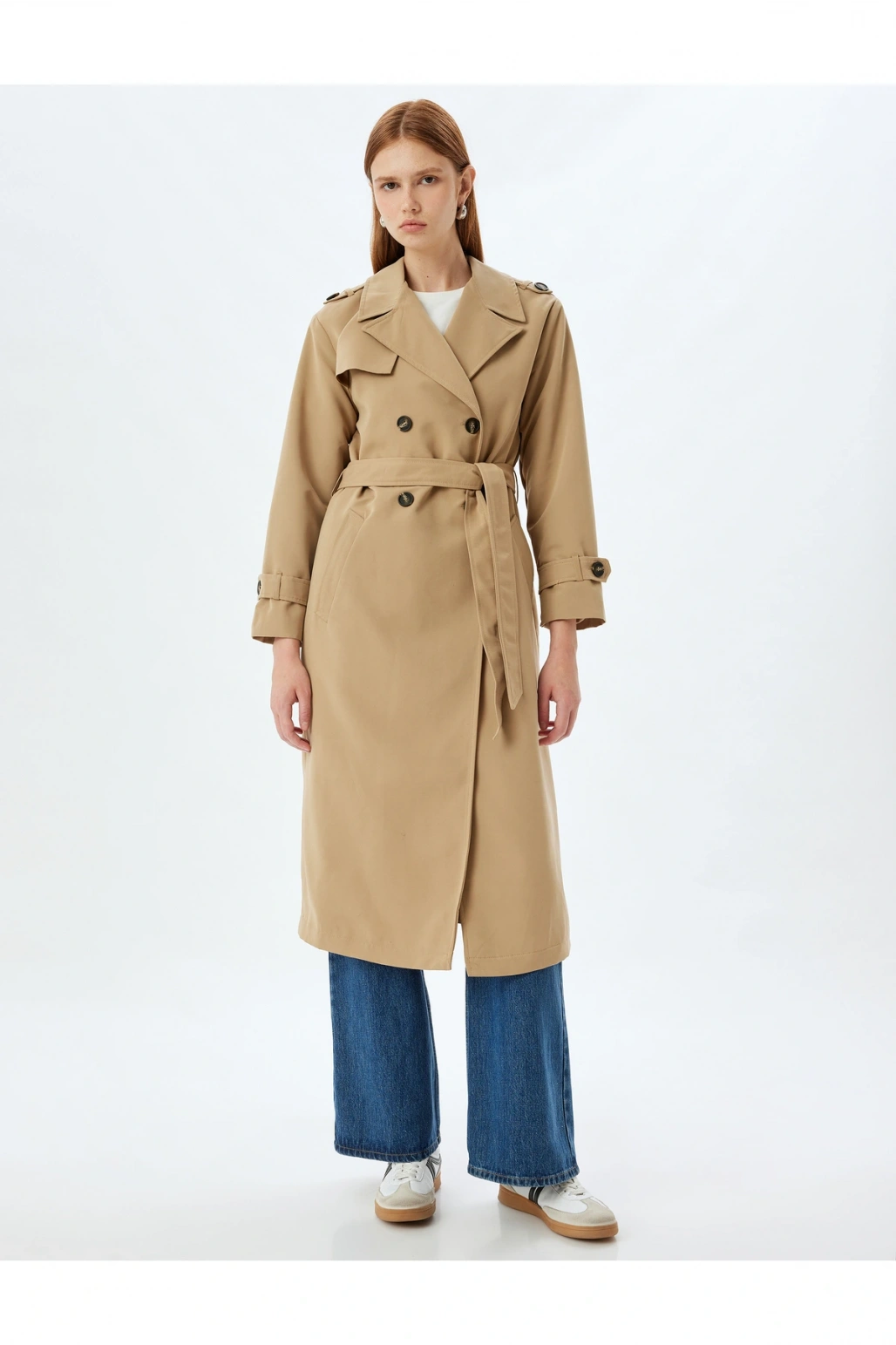 Kuşak Detaylı Kruvaze Düğmeli Trençkot