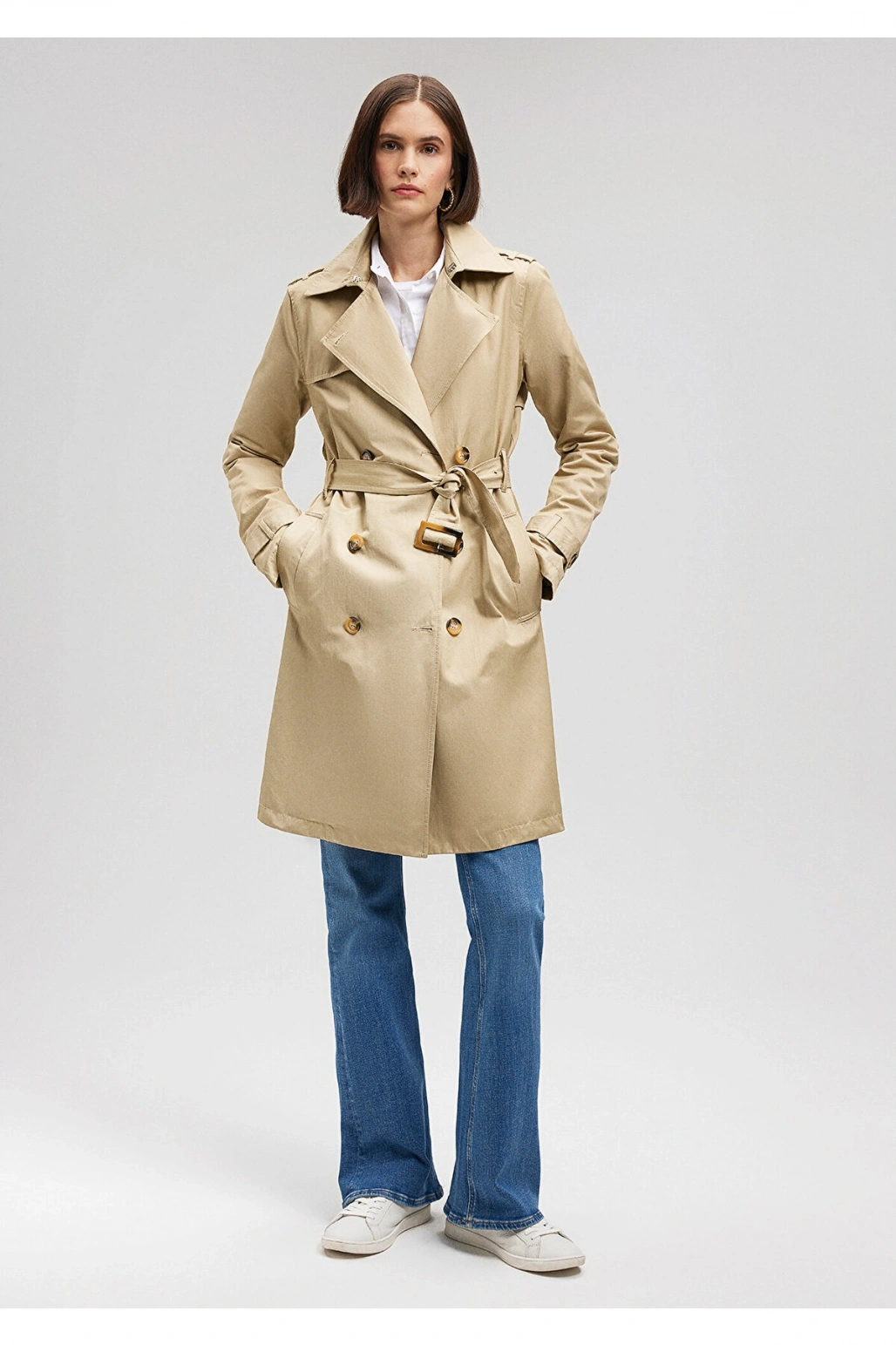 LCW ModestBej Kruvaze Yaka Kadın Trençkot