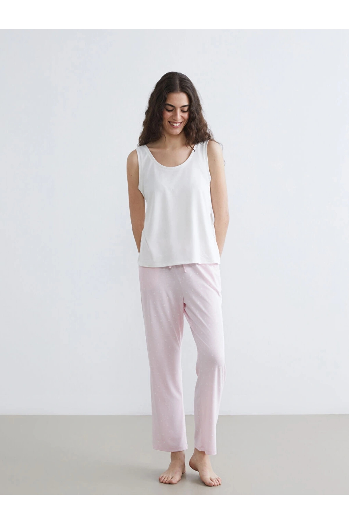 LCW DREAM Pembe Beli Lastikli Puantiyeli Kadın Pijama Alt