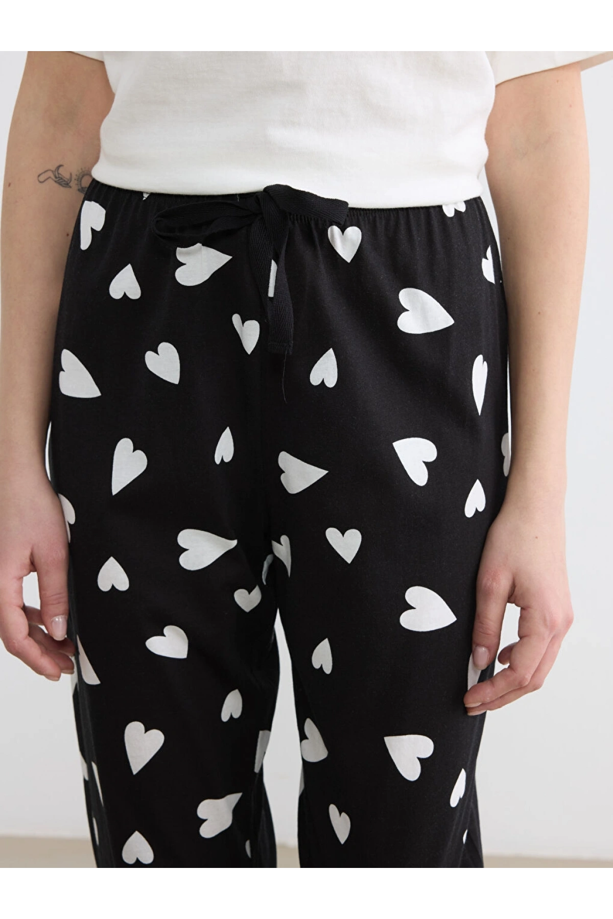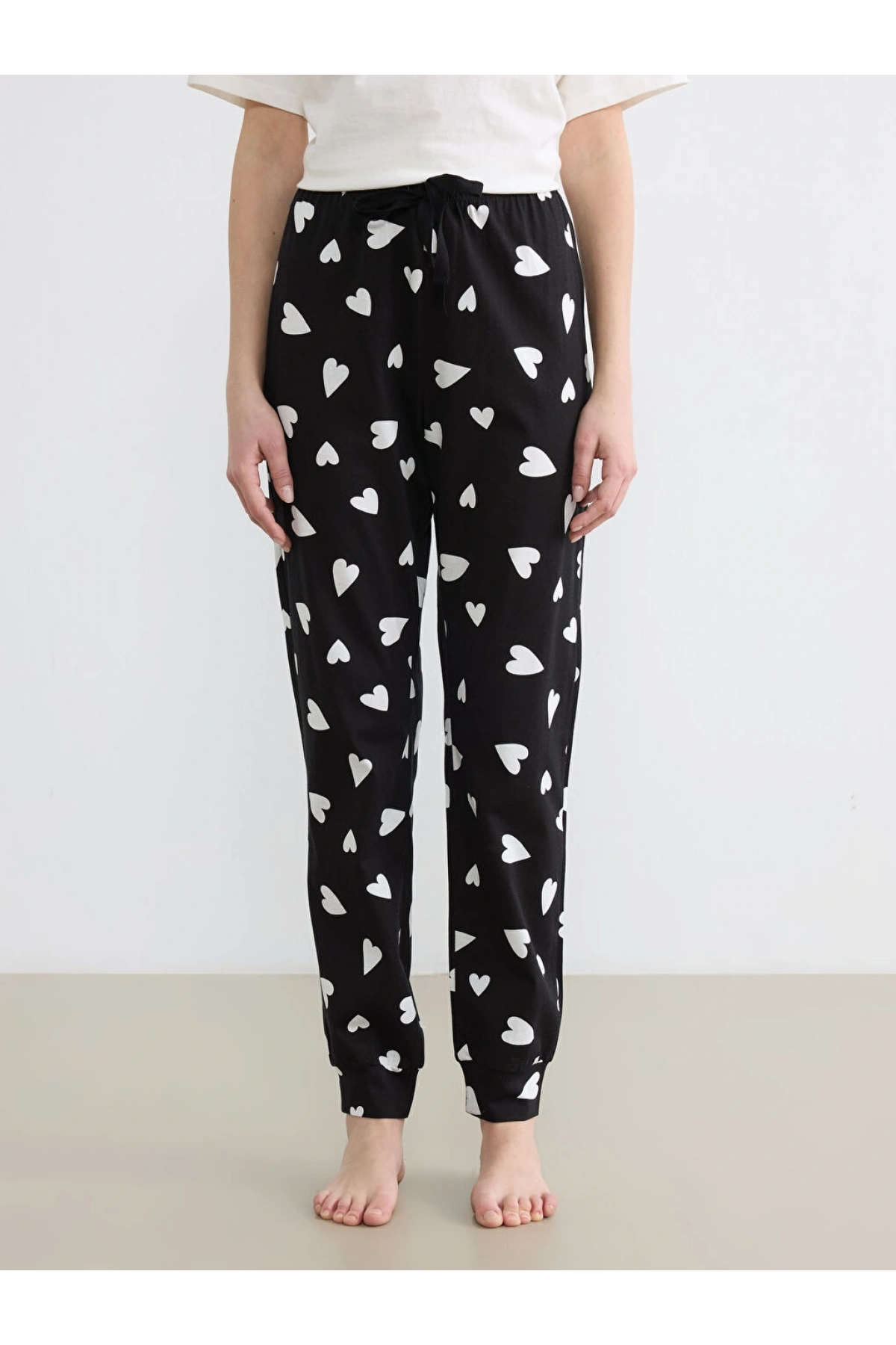 LCW DREAM Siyah Kalp Desenli Kadın Jogger Pijama Alt