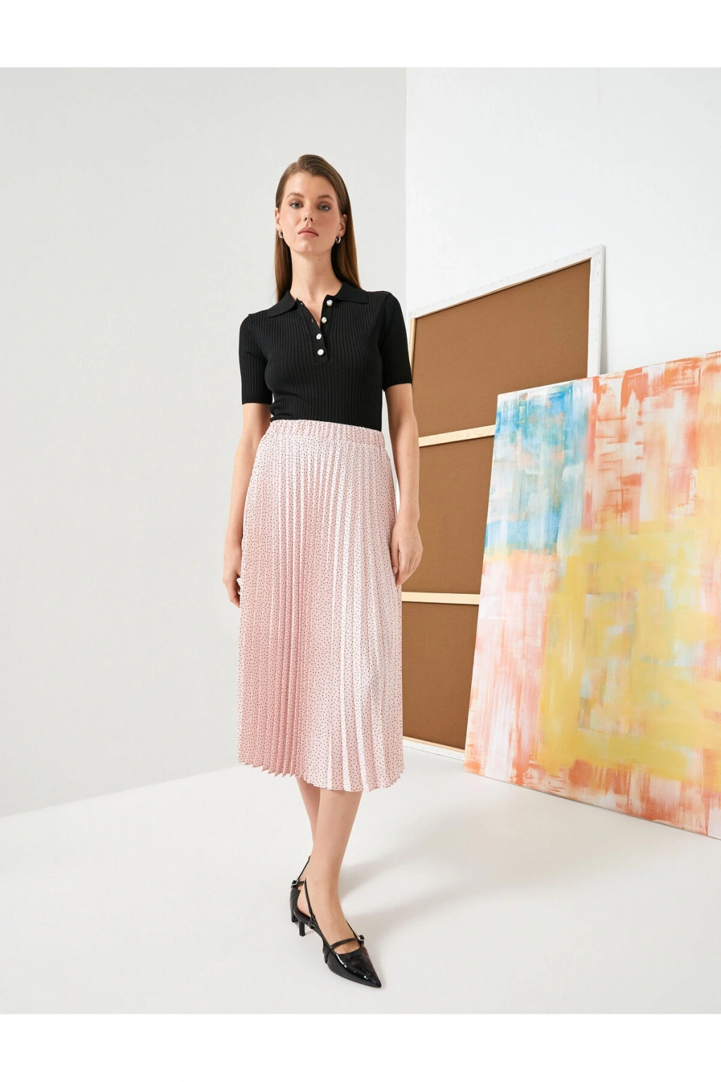 Etek modellerinin enerjisini ve rahatlıklarını seviyorsanız normal bel, puantiyeli, pileli, midi etek tam size göre! | Model Boy: 178 | Model Kalça: 95 | Model Üst: 70 | Model Bel: S | Model Göğüs: 84 | Model Jean: 27/32