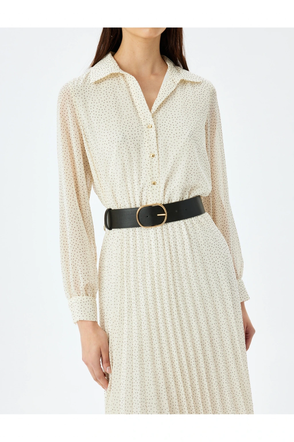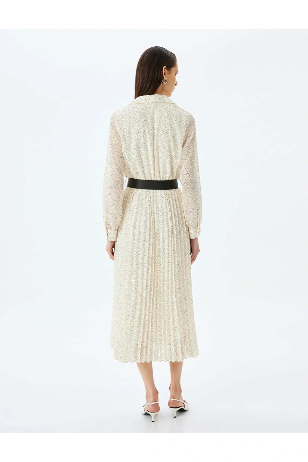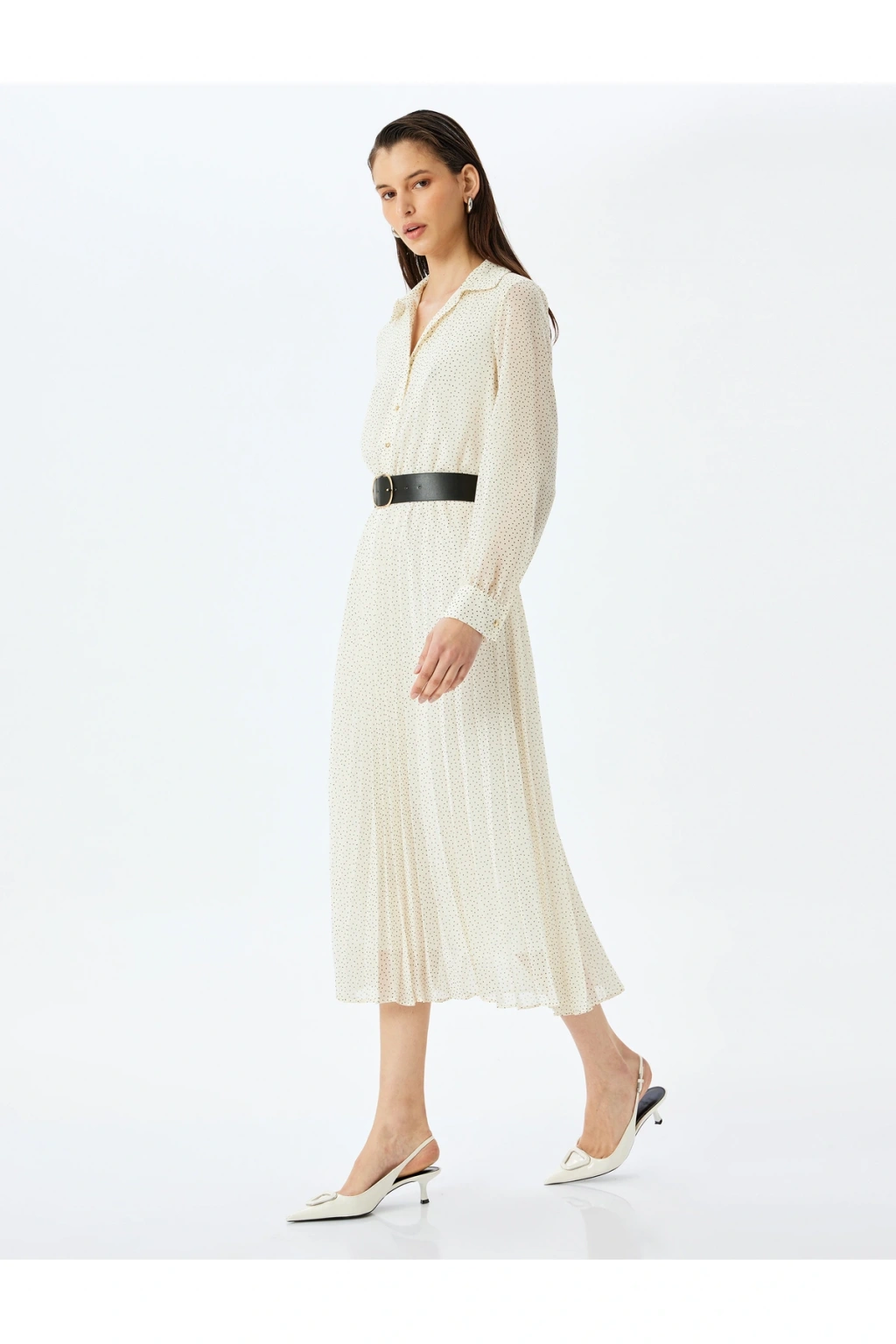 Pileli uzun kollu gömlek elbise, şıklığı ve zarafeti bir arada sunuyor. İnce desenli kumaşıyla hareketli bir görünüm sağlarken, gömlek yaka ve düğme detayları modern bir tarz yaratıyor. Uzun kol tasarımı, elbiseyi mevsim geçişlerinde de ideal bir parça haline getiriyor. Astarlı, midi boyu sayesinde hem günlük hem de özel günlerde tercih edilebilecek bu elbise, gardırobunuzun vazgeçilmezlerinden biri olacak.
