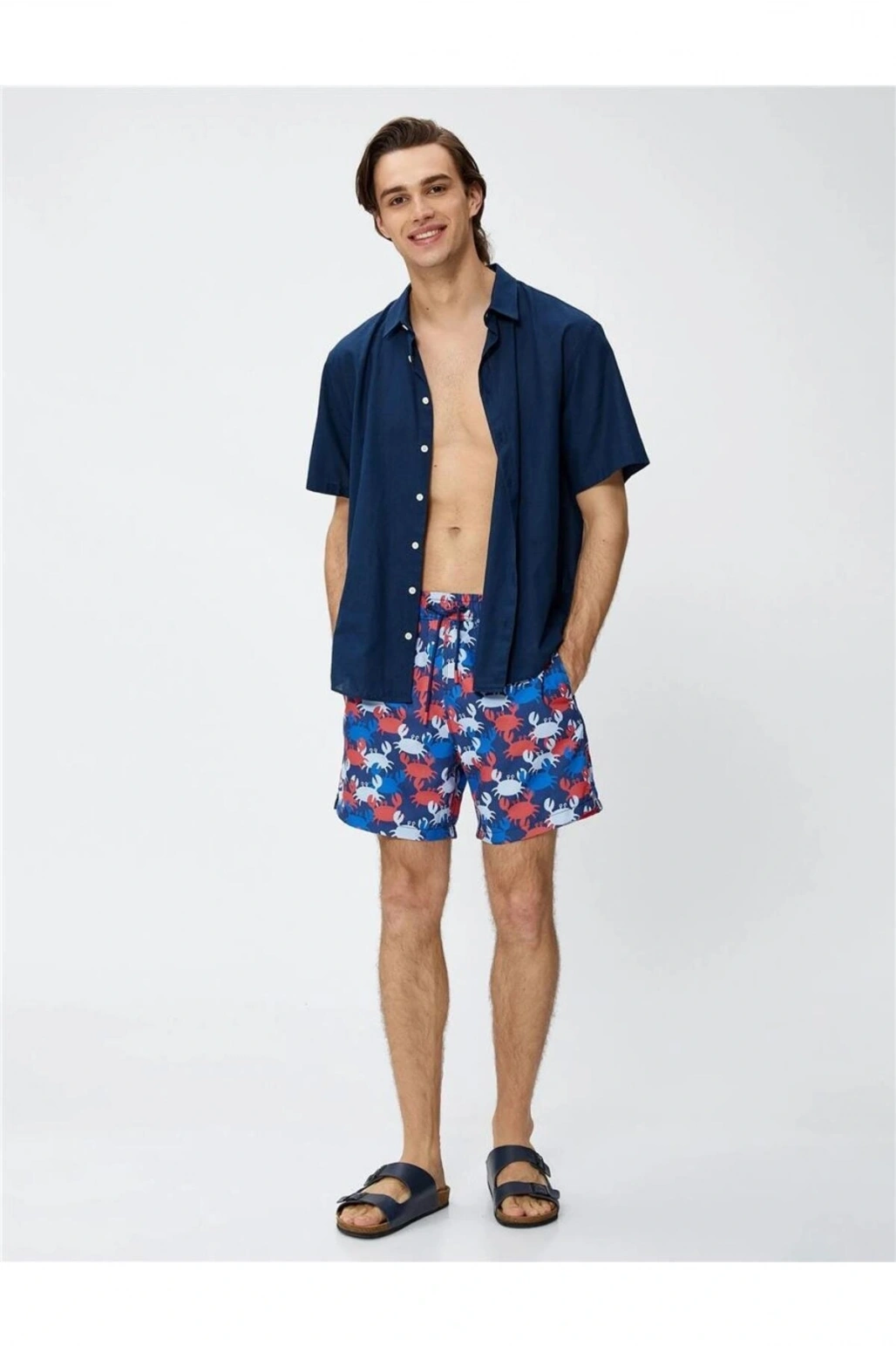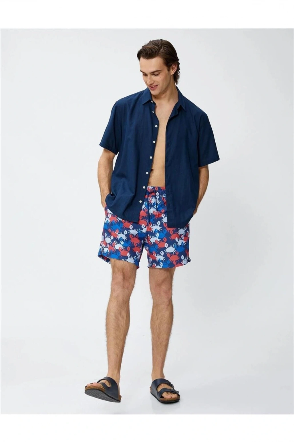 3Sam00063Bw B24 Mavi Desenli Erkek Deniz Shortu