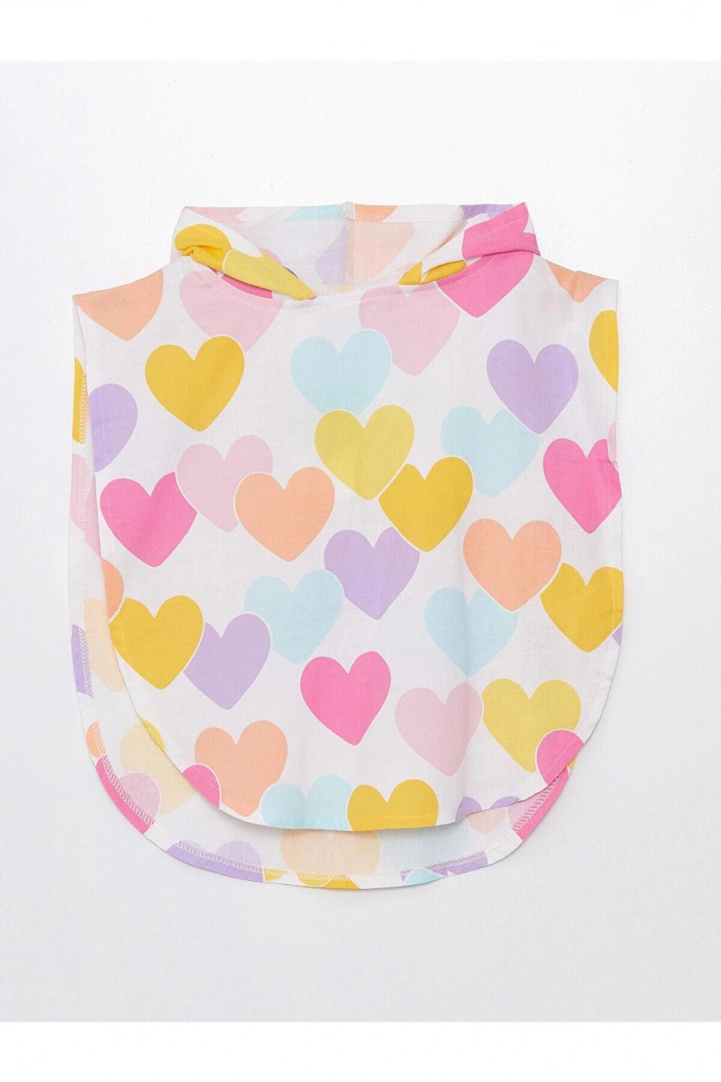 Baskılı Kapüşonlu Kız Çocuk Kadife Plaj Havlusu