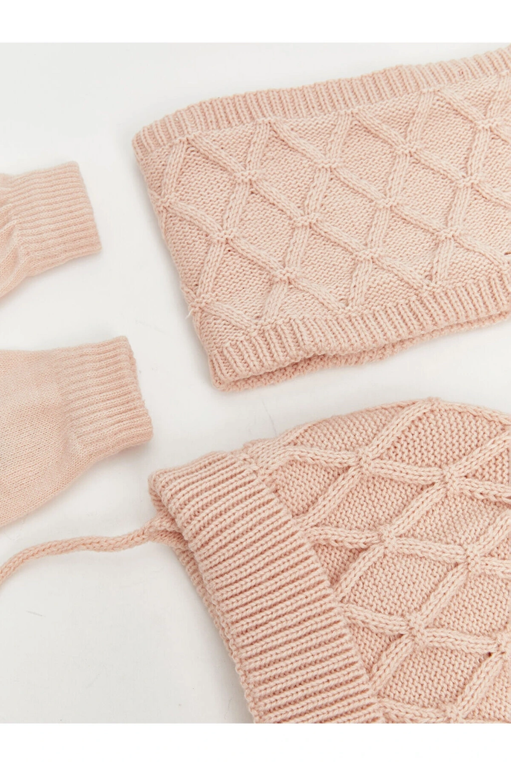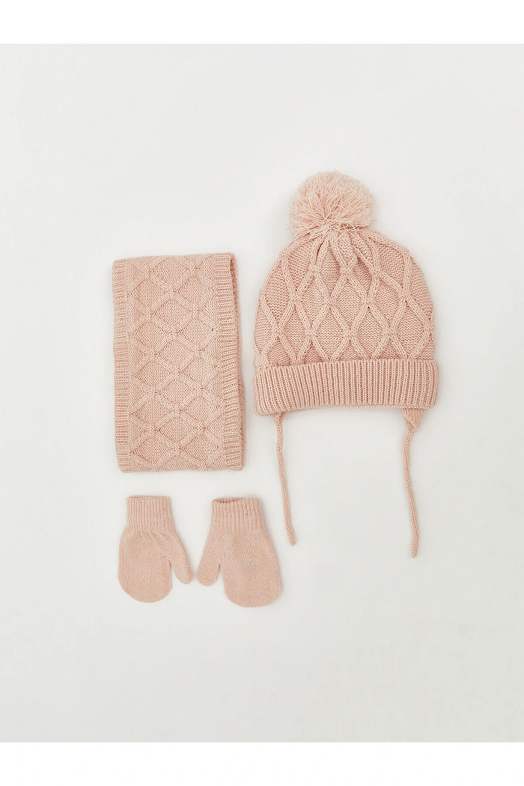 Baklava desenli örgü kız bebek takımı; ponponlu, kulaklıklı ve bağcıklı bere, atkı ve eldiven içerir.; Ürün İçeriği ve ÖzellikleriAna Kumaş Bere: %100 AkrilikAna Kumaş Boyunluk: %100 AkrilikAna Kumaş Eldiven: %1 Elastan, %2 ELASTODİEN, %22 Polyester, %75 AkrilikAstar Bere: %100 PolyesterAstar Boyunluk: %100 Polyesterİmalatçı / İthalatçı / Yetkili Temsilci / İfa Hizmet Sağlayıcı: LC Waikiki Mağazacılık Hizmetleri Ticaret A.; Ş.; Daha çok bilgiÜrün Tipi: Atkı, Bere ve Eldiven TakımDesen: DesenliKumaş: TrikoPaket İçeriği: 3'lü PaketParça Sayısı: 3 ParçaBakım BilgileriKuru Temizleme YapılamazÜtülemeyinizTamburlu Kurutma YapmayınızAğartıcı KullanmayınızMaksimum 30 °c Sıcaklıkta Hassas Yıkayınız