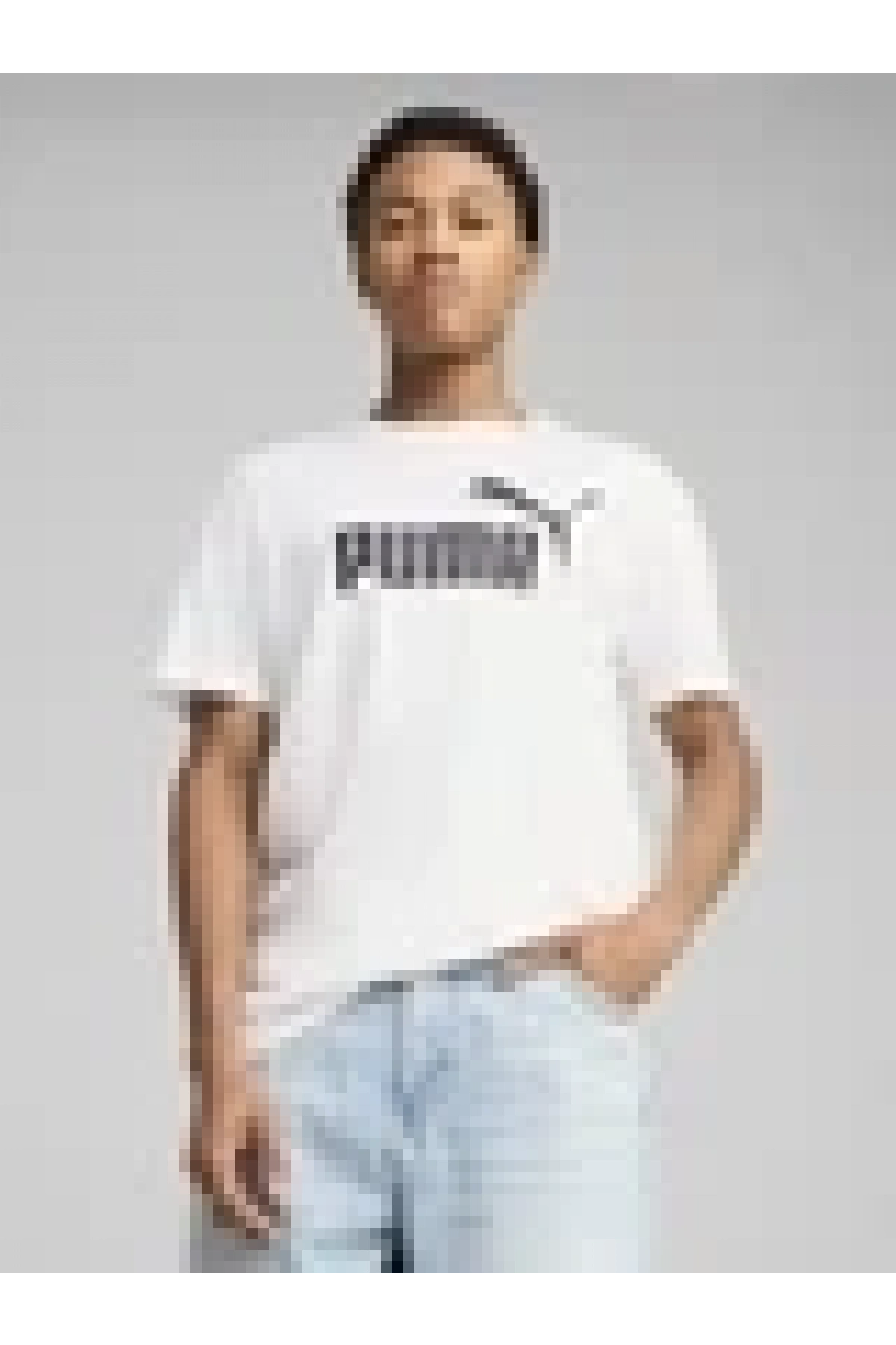 PUMA Erkek uzun pamuklu tişört Puma Ess No. 1 Logo Beyaz baskılı