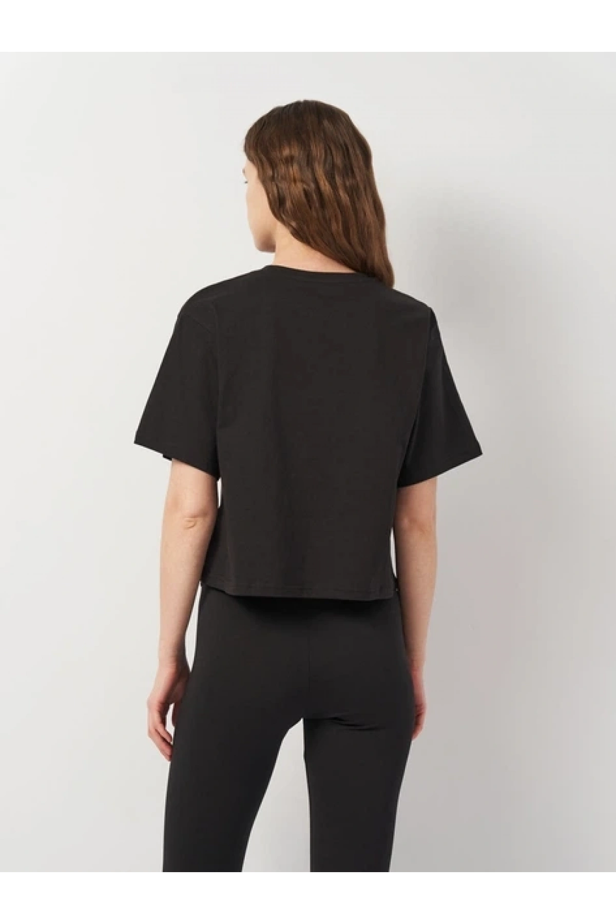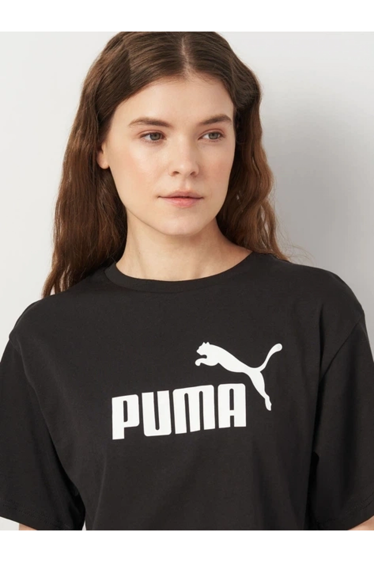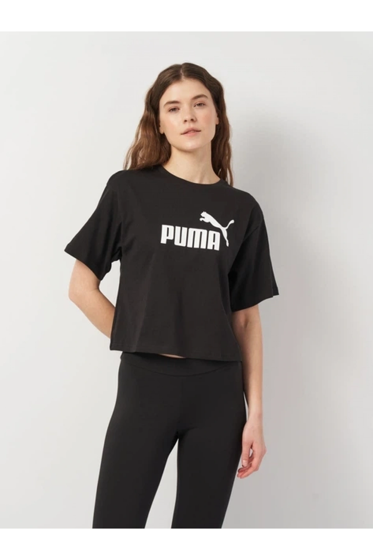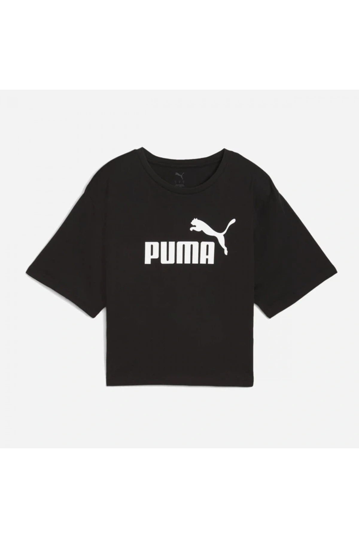 Kadın pamuklu tişört Puma Ess Cropped No. 1 Logo Relaxed Tee SİYAH
