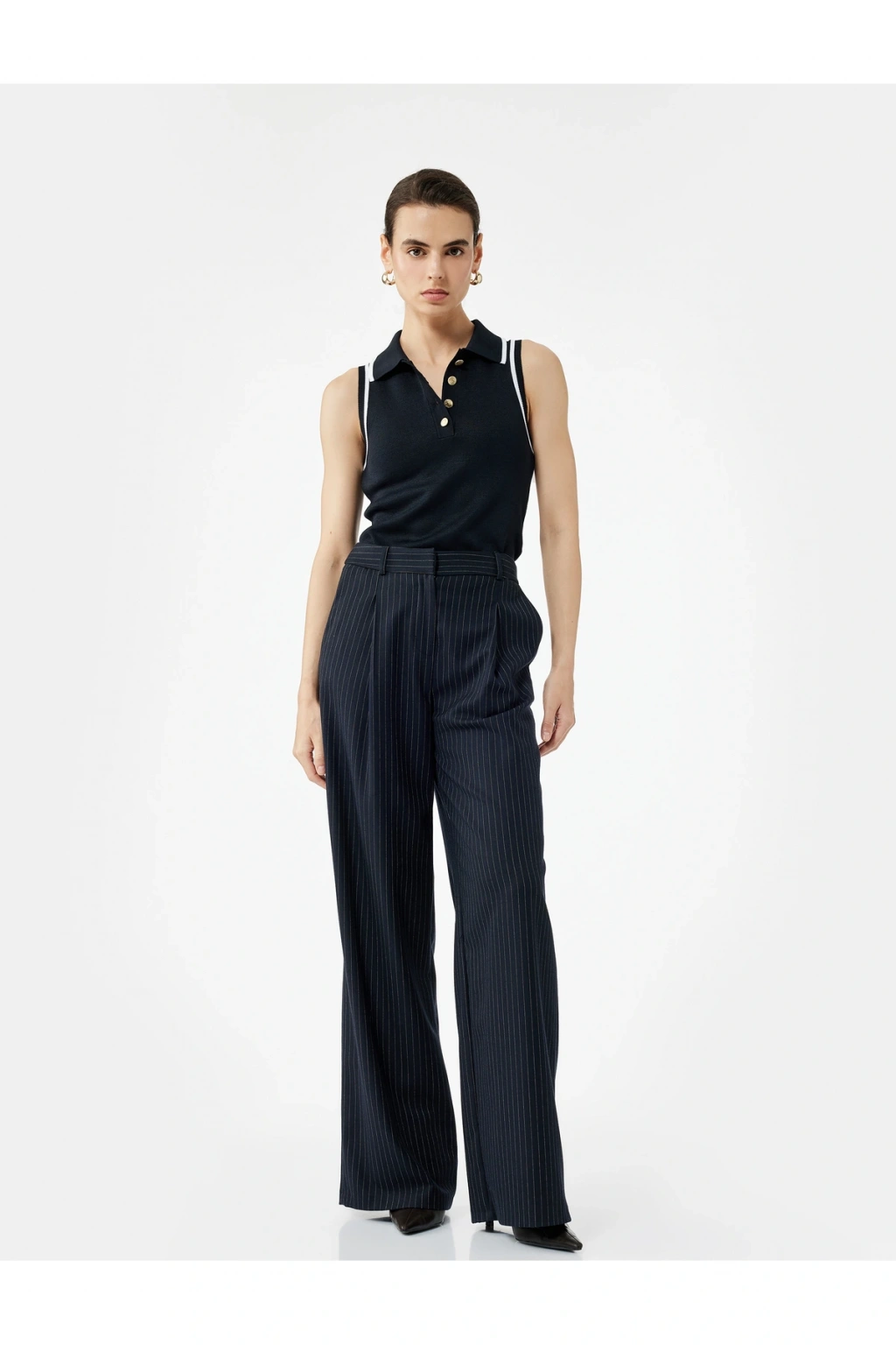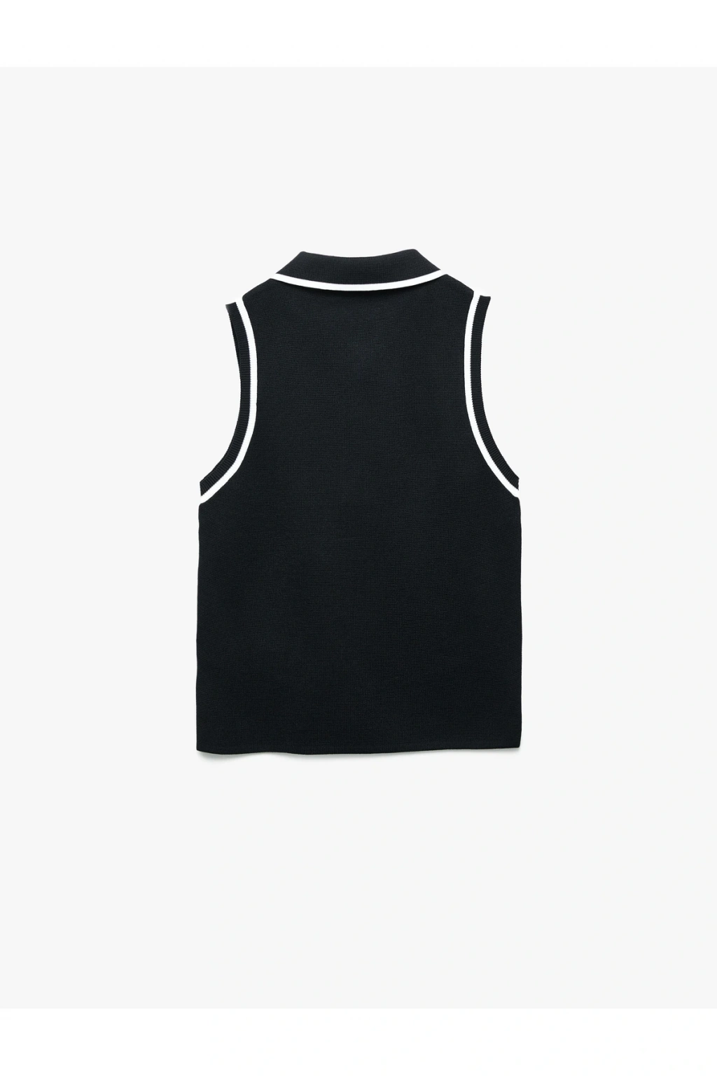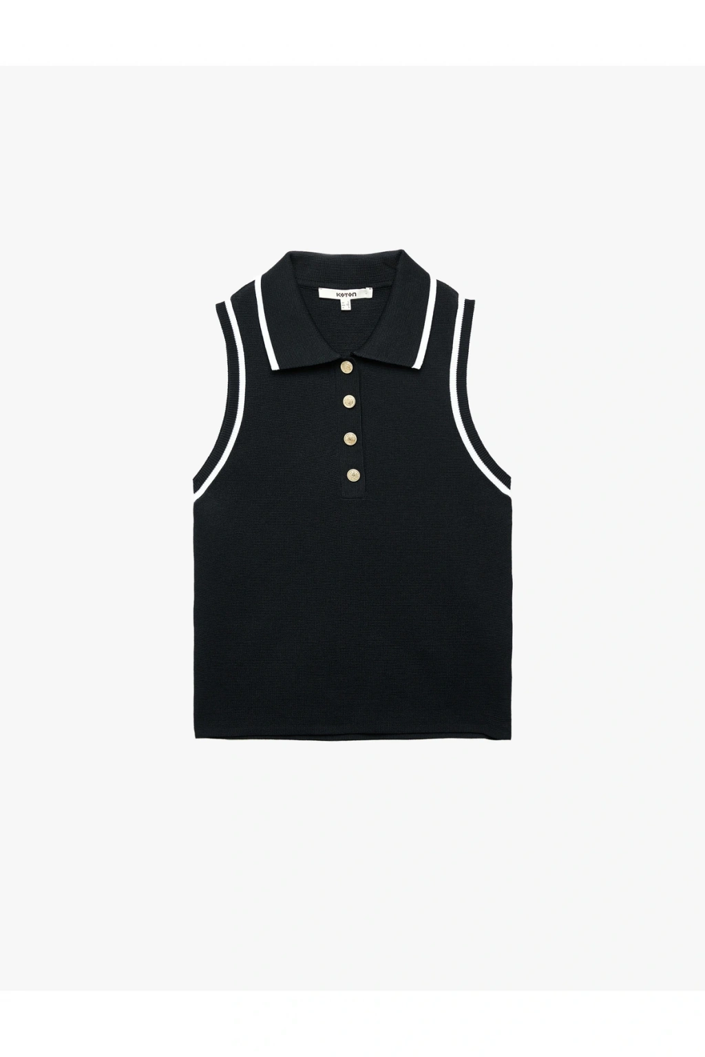 Regular Fit Düğmeli Kolsuz Polo Yaka Triko Bluz