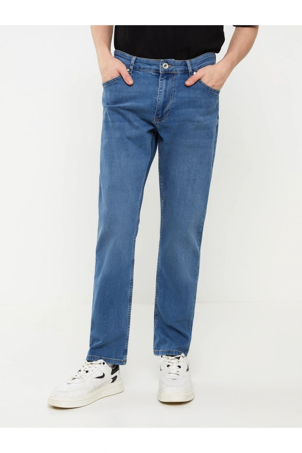 Regular fit jean pantolon, dizden paçaya doğru inen düz kesimi sayesinde gün içinde kullanım kolaylığı ve rahat kombinleme özelliğiyle her görünüme uyum sağlar., Denim giysilerinizin ömrünü uzatmak için her zaman düşük sıcaklıkta ve ters çevirerek yıkayın; bu sayede rengini ve kumaşın yapısını korumaya yardımcı olduğumuz gibi enerji tüketimini de azaltırız