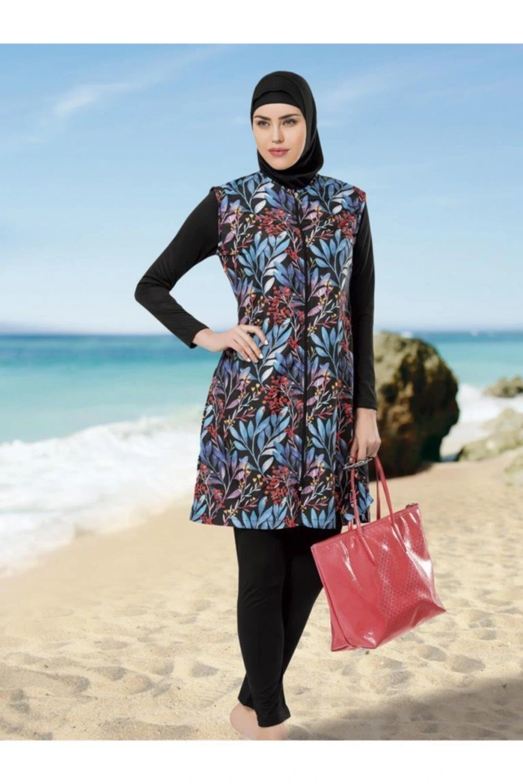 Tesettür giyim koleksiyonuna özel tasarlanmış, her yaş grubuna hitap eden renkli desenli tesettür mayo; Uzun kollu tasarımı ile güneşin zararlı ışınlarına karşı tam koruma sağlar ve şık bir görünüm sunar; Dokuma kumaş yapısı sayesinde suyun içinde ve dışında konforlu bir kullanım deneyimi yaşatır;