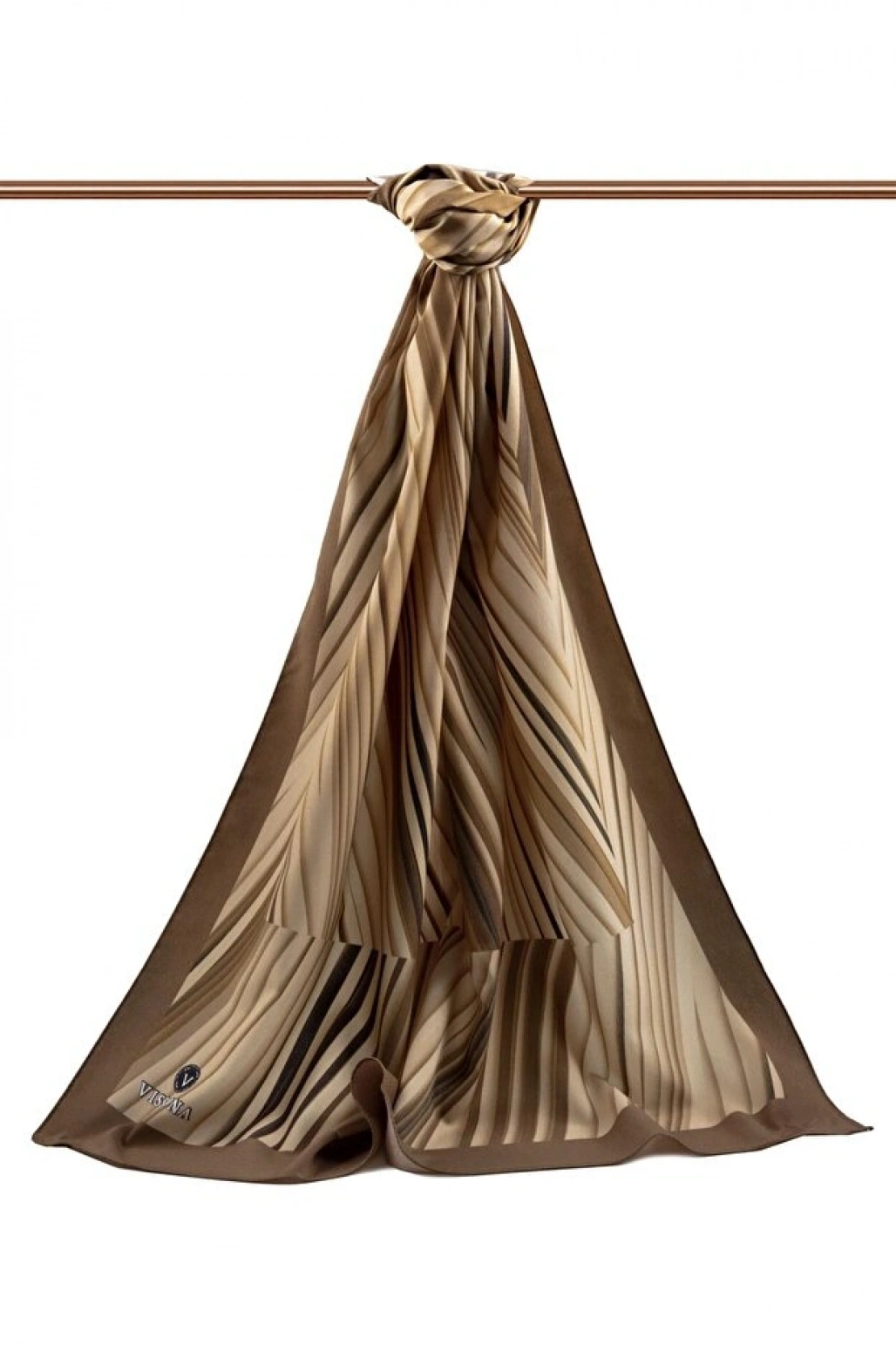 Vissona LÜKS MEDİNE İPEĞİ ÇİZGİLİ DESENLİ VİZON RENKLİ 75X195 KIRIŞMAZ ŞAL MOSS KREP DİKİŞ TİPİ İTALYAN