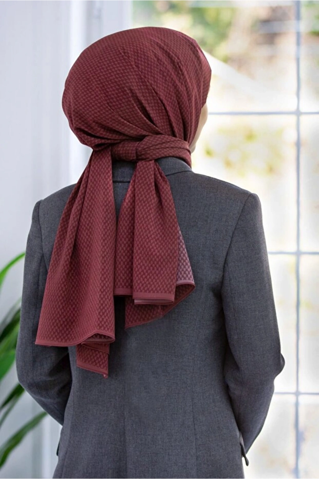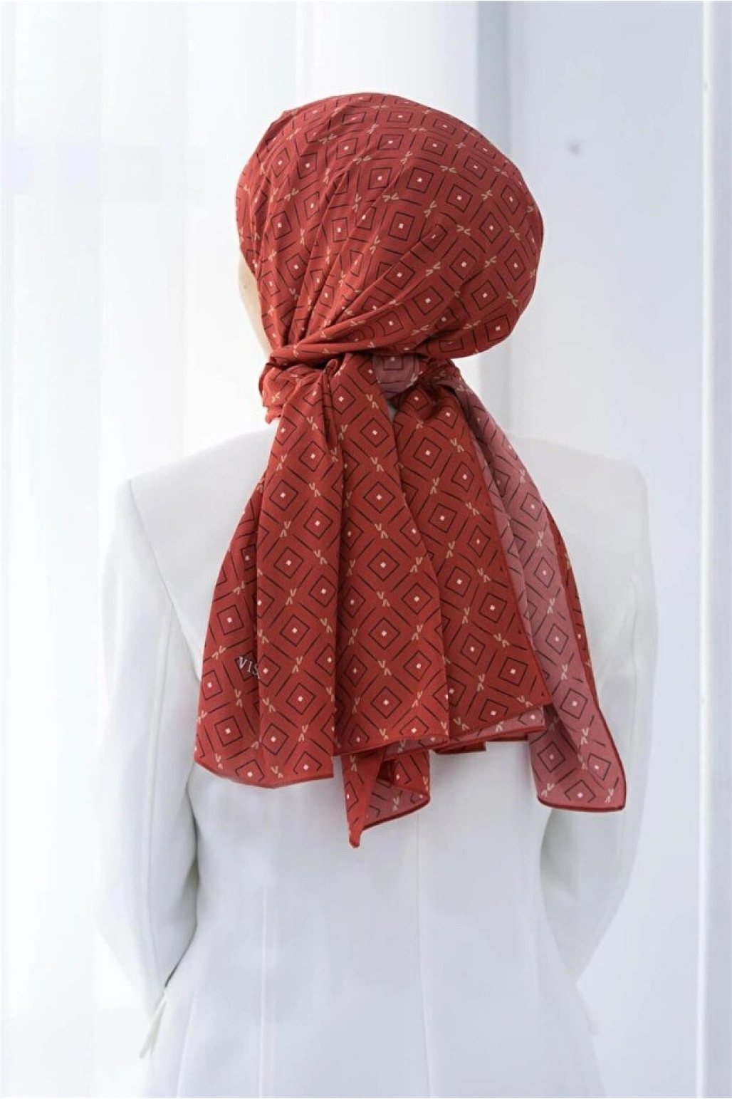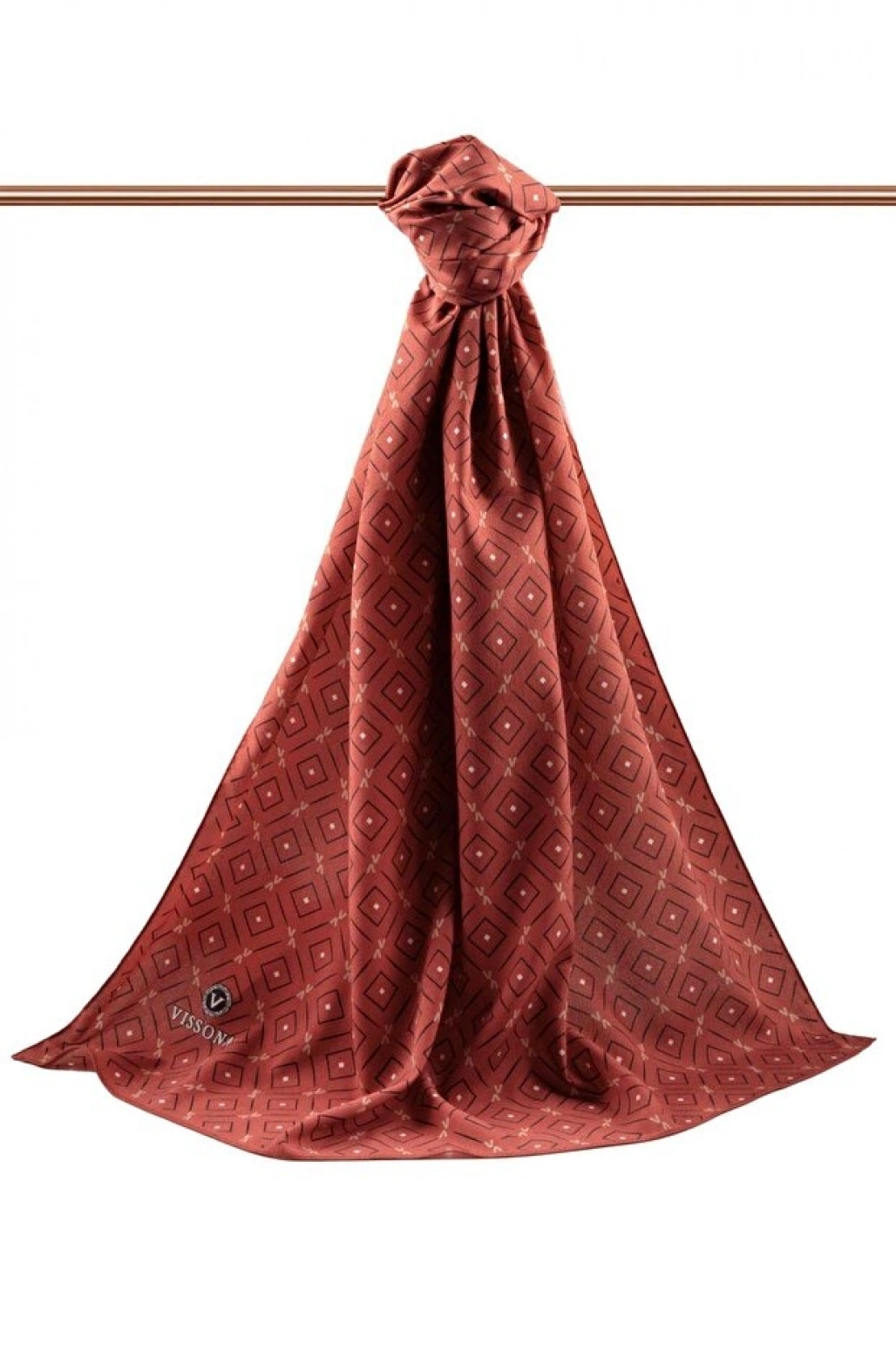 Vissona LÜKS MEDİNE İPEĞİ GEOMETRİK DESENLİ BORDO RENKLİ 75X195 KIRIŞMAZ ŞAL MOSS KREP DİKİŞ TİPİ İTALYAN