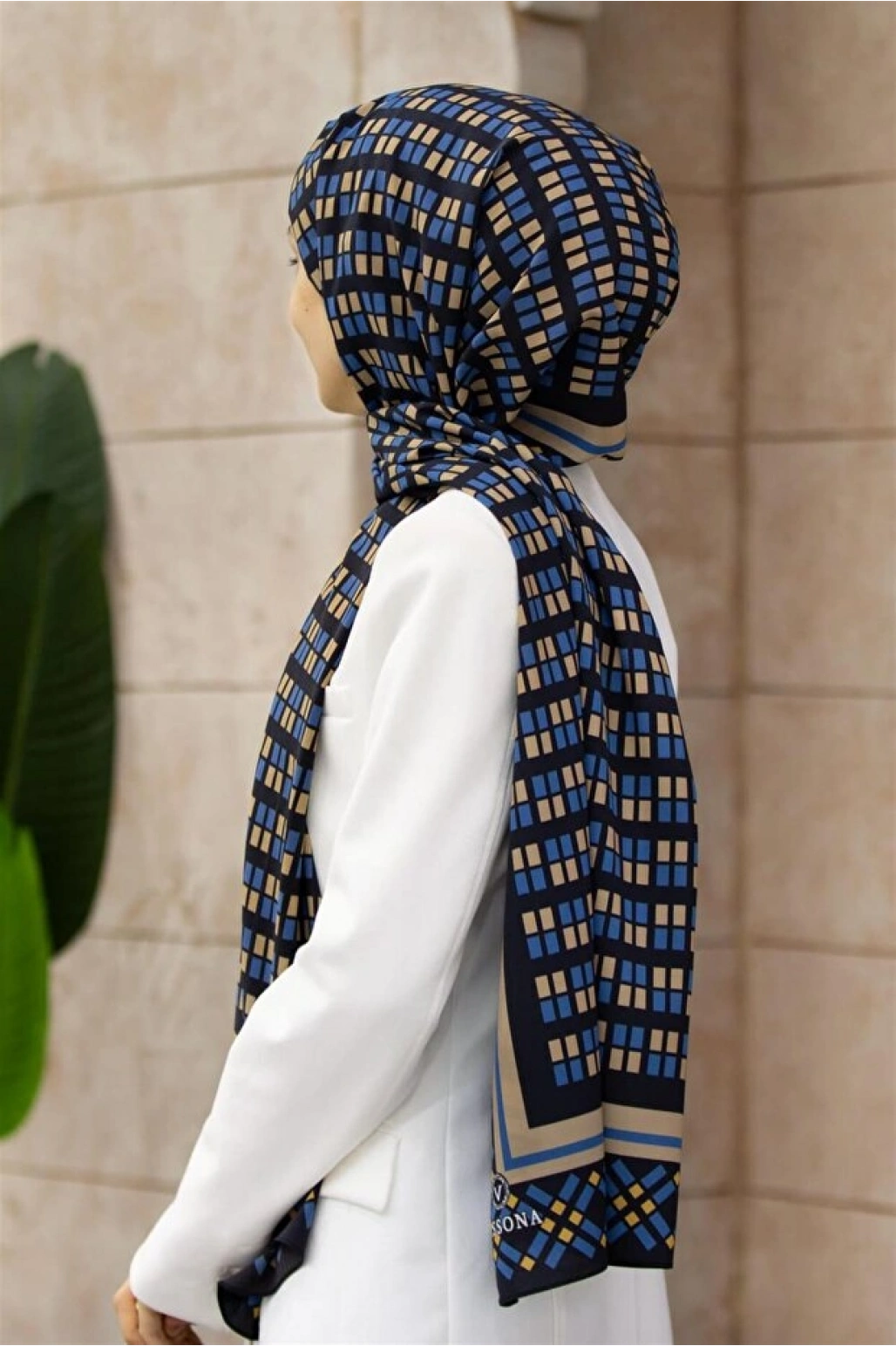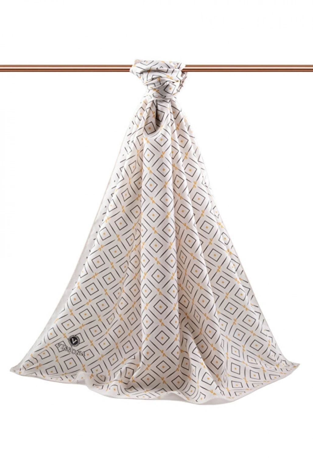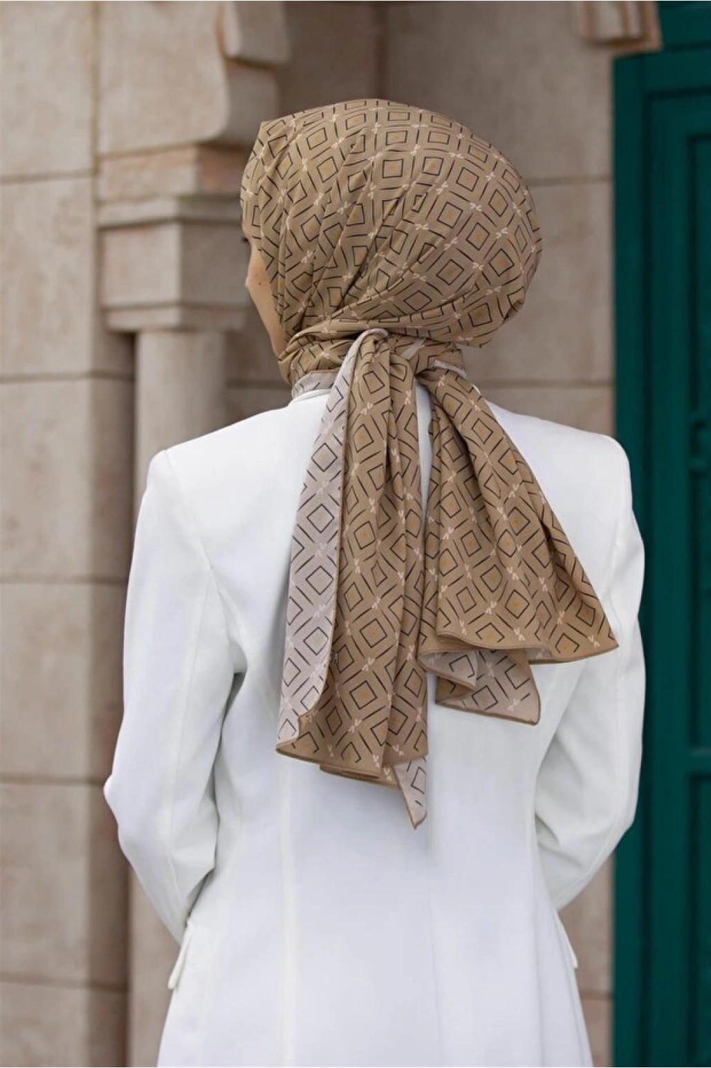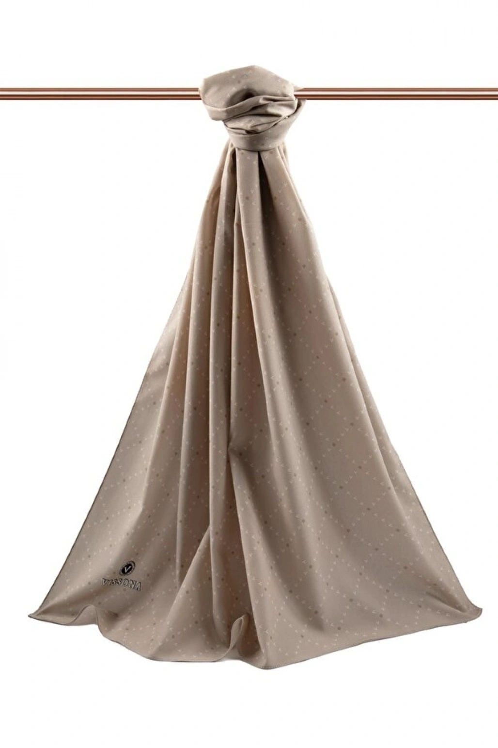 Vissona LÜKS MEDİNE İPEĞİ GEOMETRİK DESENLİ BEJ RENKLİ 75X195 KIRIŞMAZ ŞAL MOSS KREP DİKİŞ TİPİ İTALYAN DİKİ