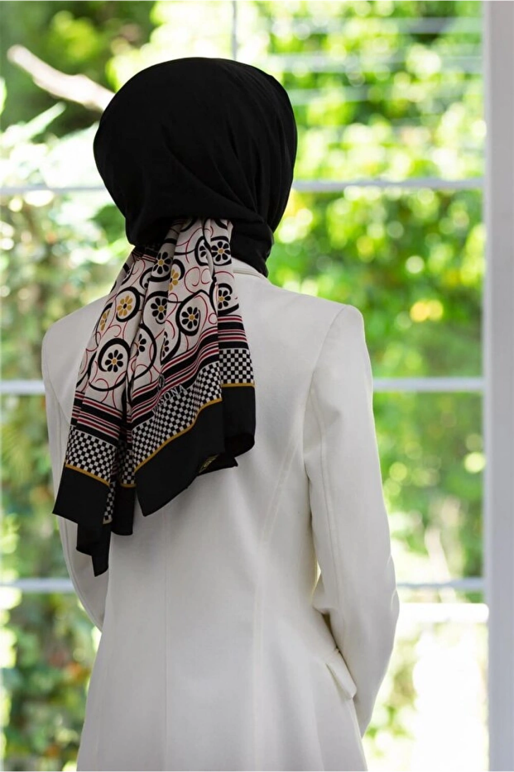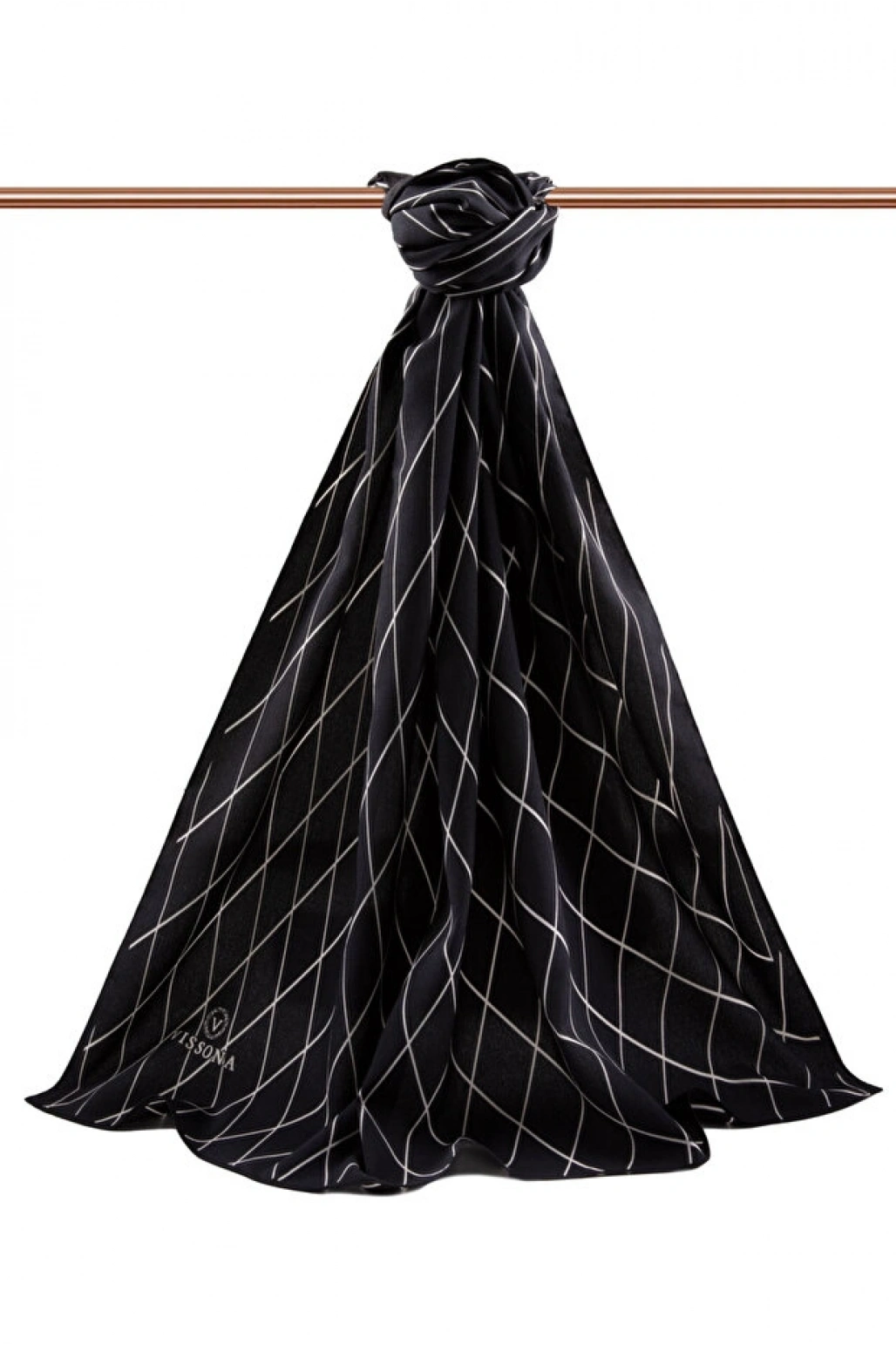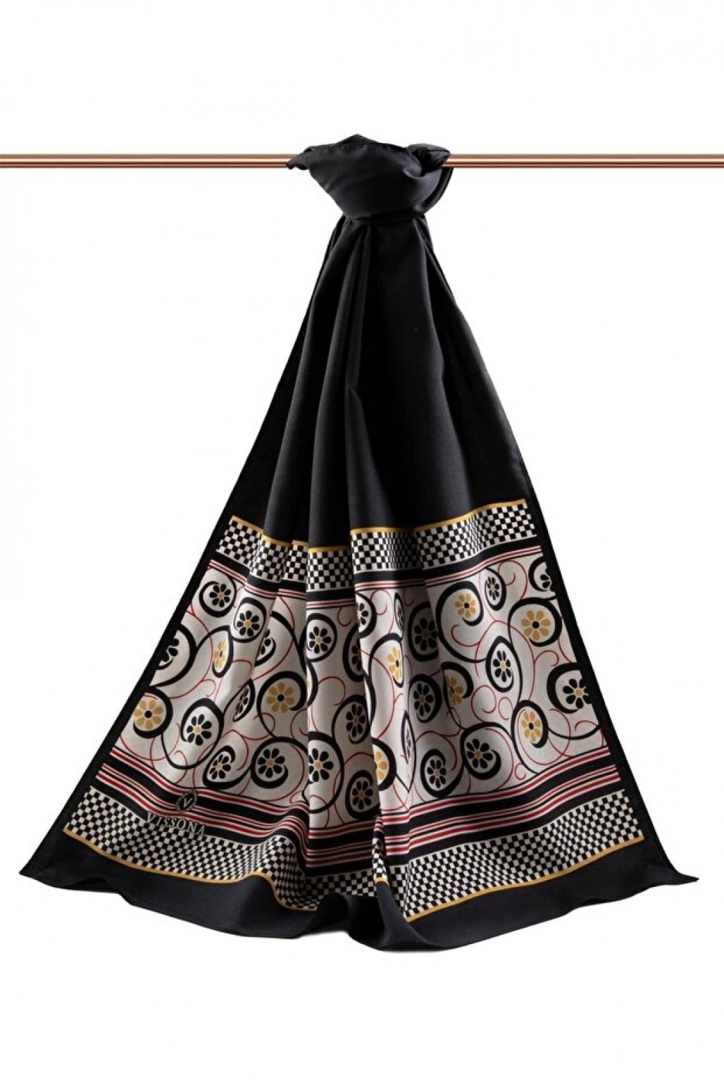 Vissona LÜKS MEDİNE İPEĞİ GEOMETRİK DESENLİ SİYAH RENKLİ 75X195 KIRIŞMAZ ŞAL MOSS KREP DİKİŞ TİPİ İTALYAN