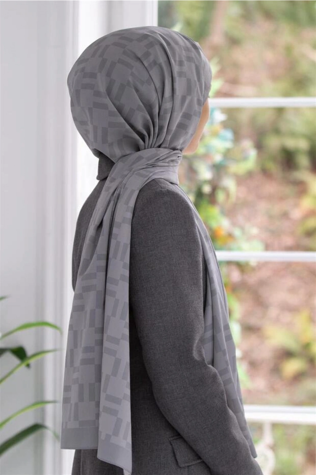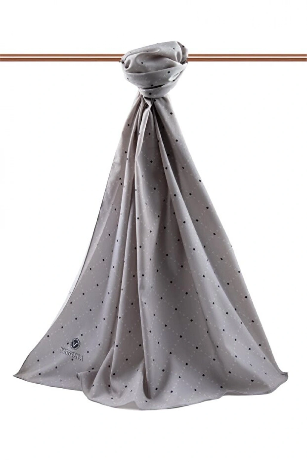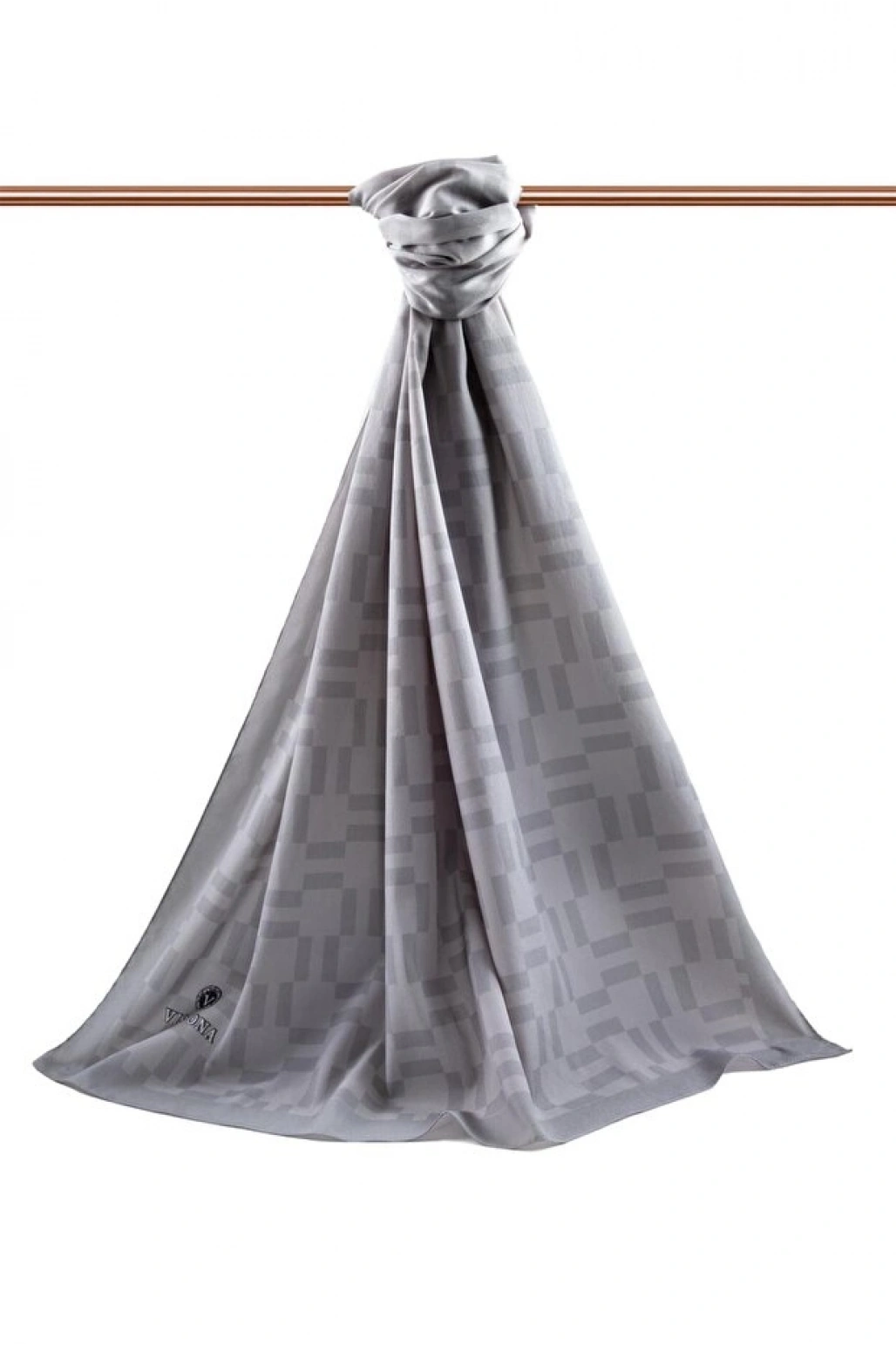 Vissona LÜKS MEDİNE İPEĞİ MONOGRAM DESENLİ GRİ RENKLİ 75X195 KIRIŞMAZ ŞAL MOSS KREP DİKİŞ TİPİ İTALYAN DİKİŞ