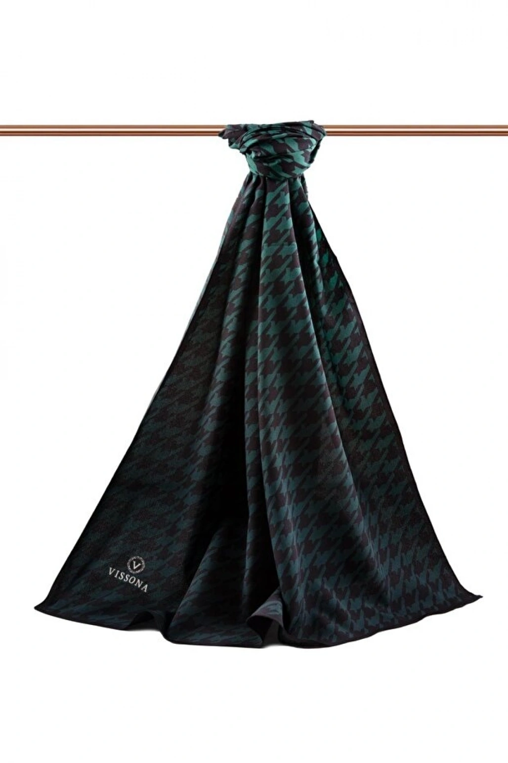 Vissona LÜKS MEDİNE İPEĞİ KAZAYAĞI DESENLİ PETROL YEŞİLİ RENKLİ 75X195 KIRIŞMAZ ŞAL MOSS KREP DİKİŞ TİPİ İTA