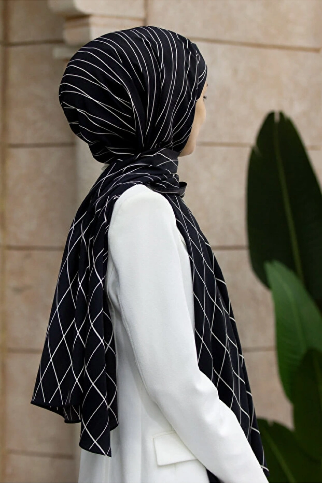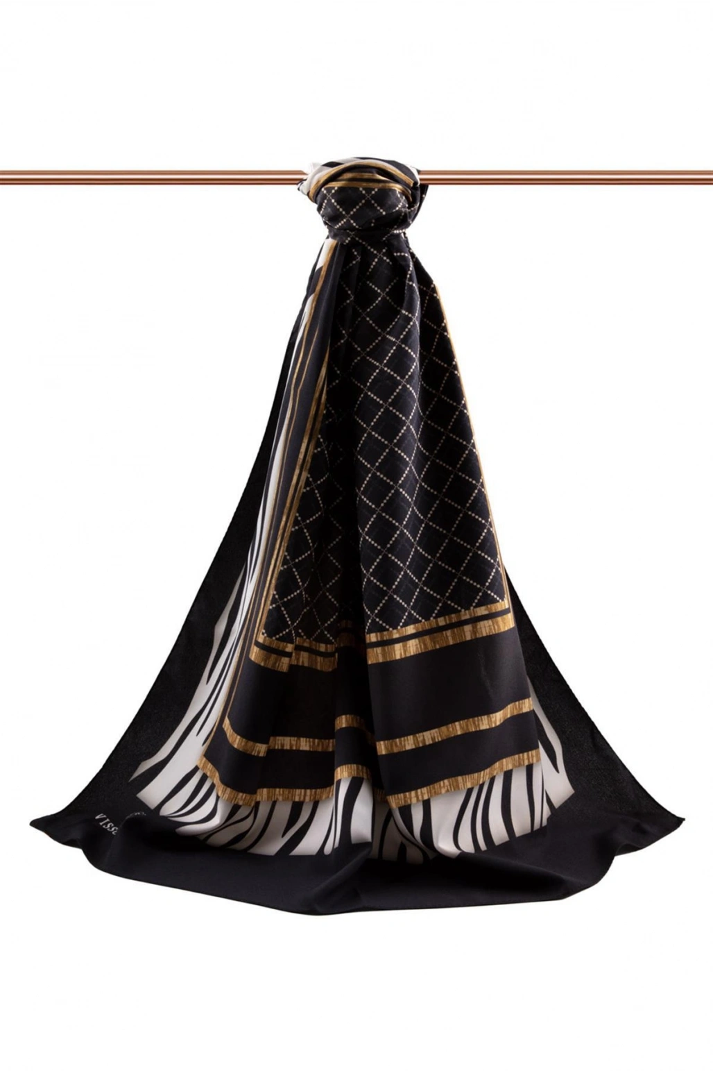 Vissona LÜKS MEDİNE ZEBRALI BAKLAVA DESENLİ SİYAH RENKLİ 75X195 KIRIŞMAZ ŞAL MOSS KREP DİKİŞ TİPİ İTALYAN