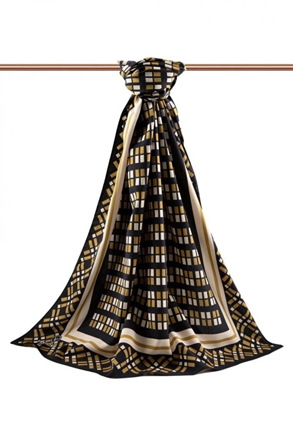 Vissona LÜKS MEDİNE İPEĞİ KARE DESENLİ GOLD RENKLİ 75X195 KIRIŞMAZ ŞAL MOSS KREP DİKİŞ TİPİ İTALYAN DİKİŞLİ