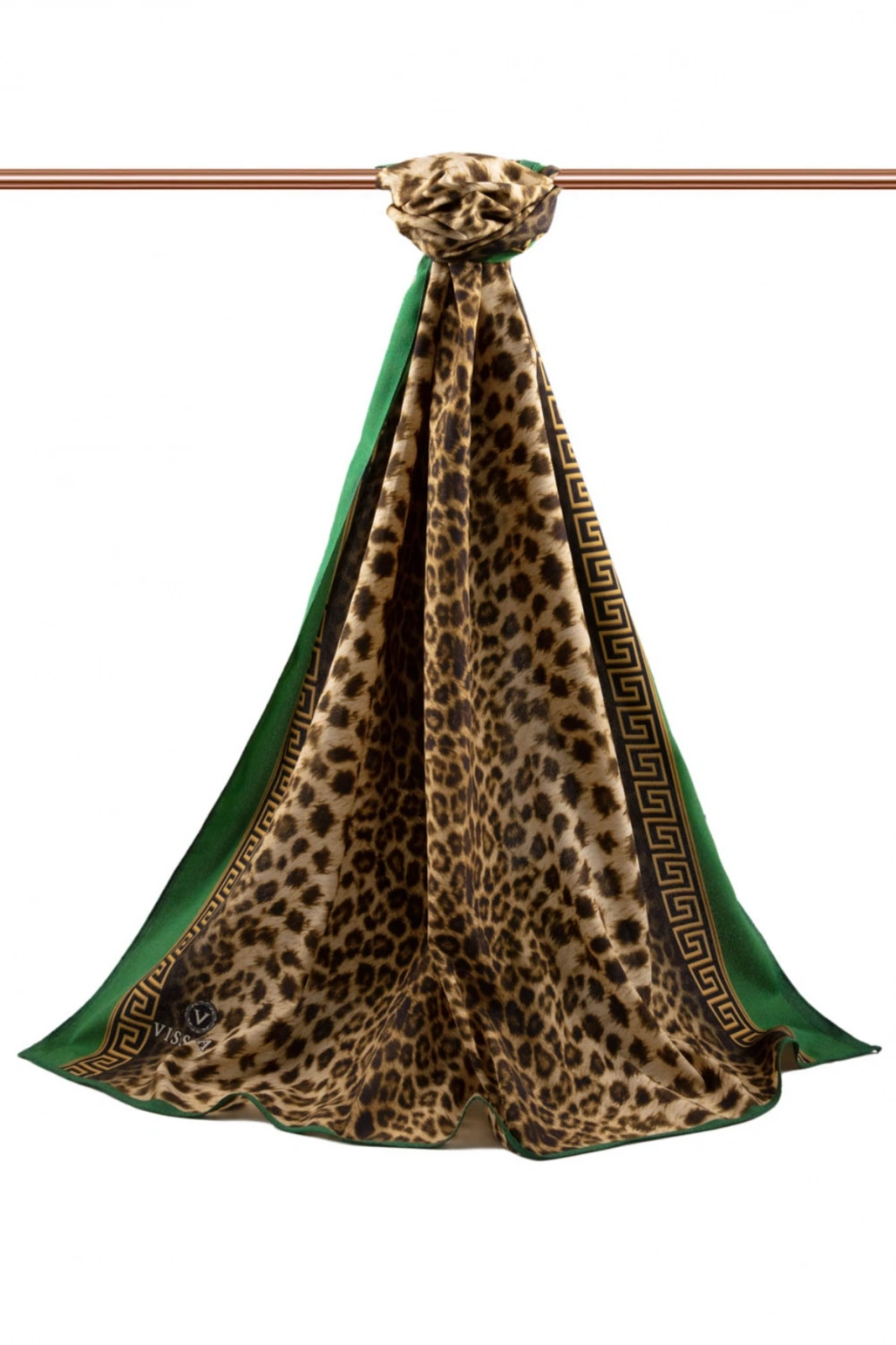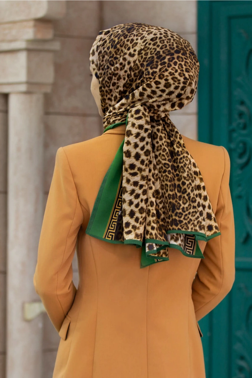 LÜKS MEDİNE BAROK BARDÜRLÜ LEOPAR DESENLİ HARDAL - ZÜMRÜT YEŞİLİ RENKLİ 75X195 KIRIŞMAZ ŞAL MOSS KRE