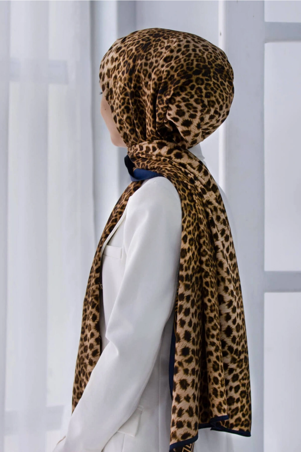 LÜKS MEDİNE BAROK BARDÜRLÜ LEOPAR DESENLİ HARDAL - LACİVERT RENKLİ 75X195 KIRIŞMAZ ŞAL MOSS KREP DİK