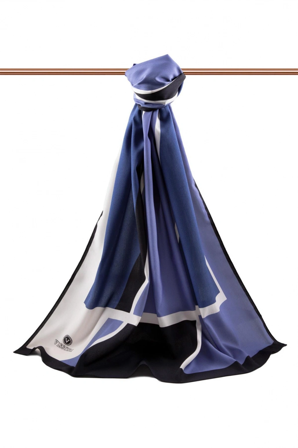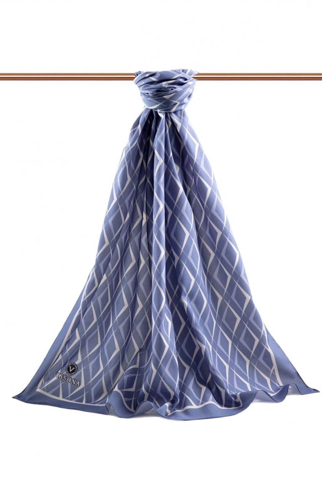 Vissona LÜKS MEDİNE İPEĞİ GEOMETRIK DESENLİ İNDİGO RENKLİ 75X195 KIRIŞMAZ ŞAL MOSS KREP DİKİŞ TİPİ İTALYAN