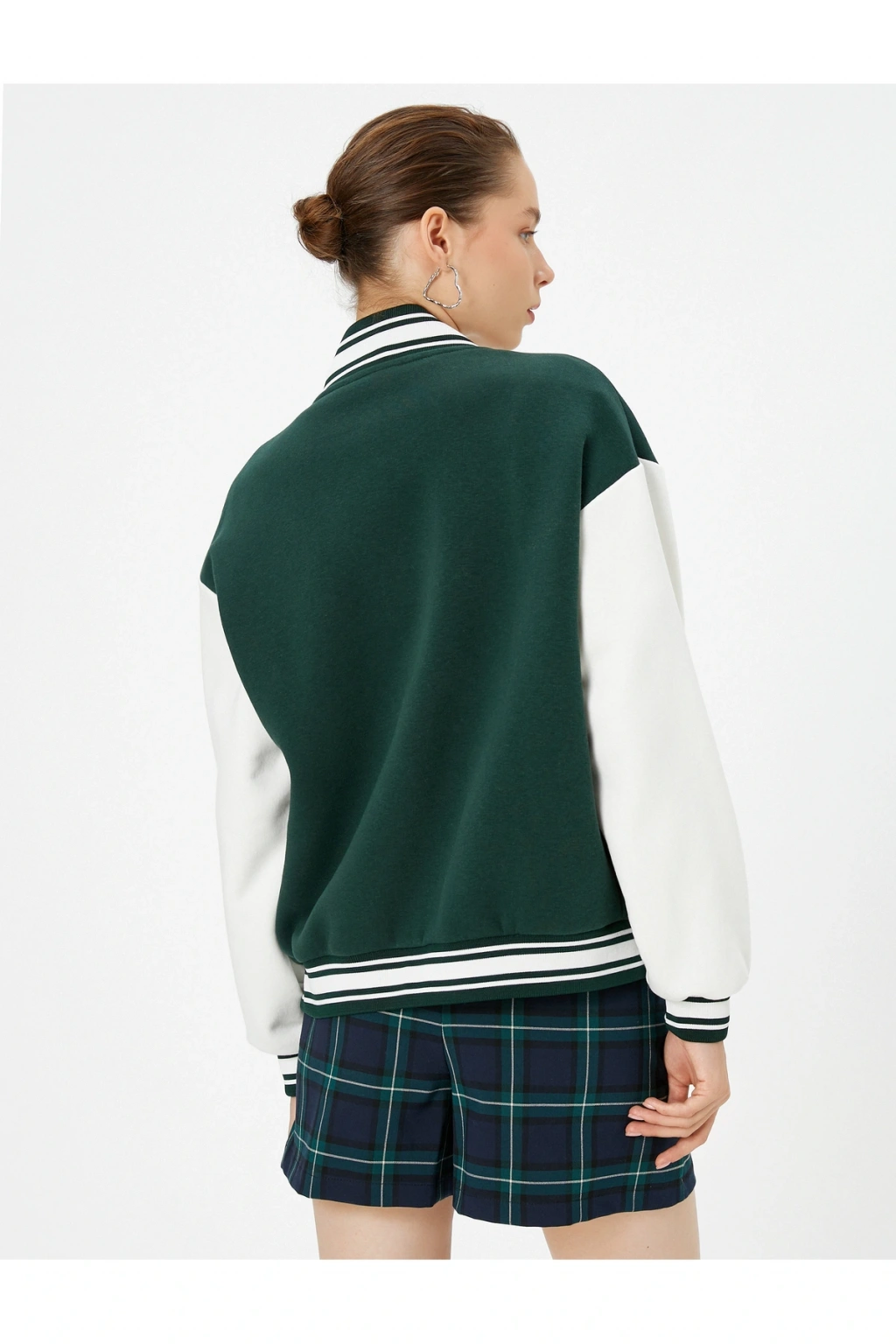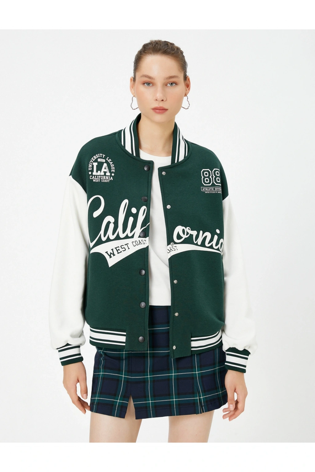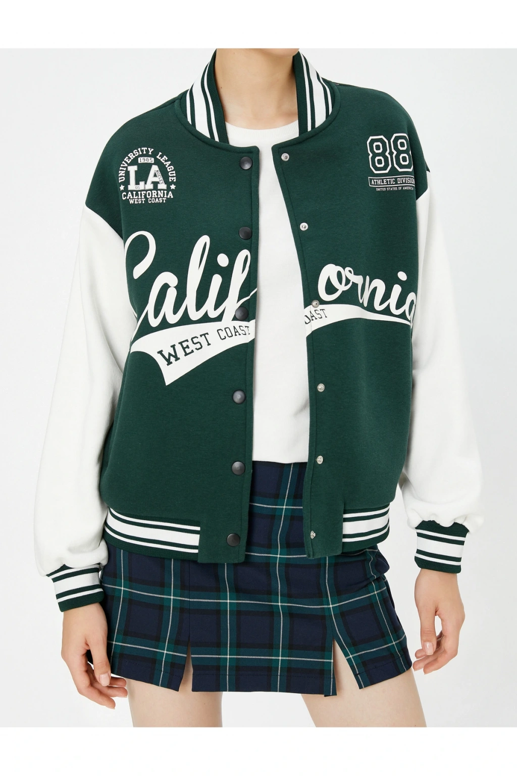 Respect Life - Yaşama Saygı |Uzun kollu, kaşkorse çizgili yuvarlak yaka, renk kontrastlı, aplike detaylı, kolej baskılı, çıtçıt kapamalı, cepli, bomber ceket.; | Bu ürün geri dönüştürülmüş iplikten üretilmiştir.; Koton'un insana ve topluma değer katma, gelecek nesillere daha yaşanılabilir bir dünya bırakma duyarlılığıyla hazırladığı koleksiyonu keşfedin.; | Model Boy: 180 | Model Kalça: 89 | Model Üst: 61 | Model Bel: S | Model Göğüs: 78 | Model Jean: 27/32