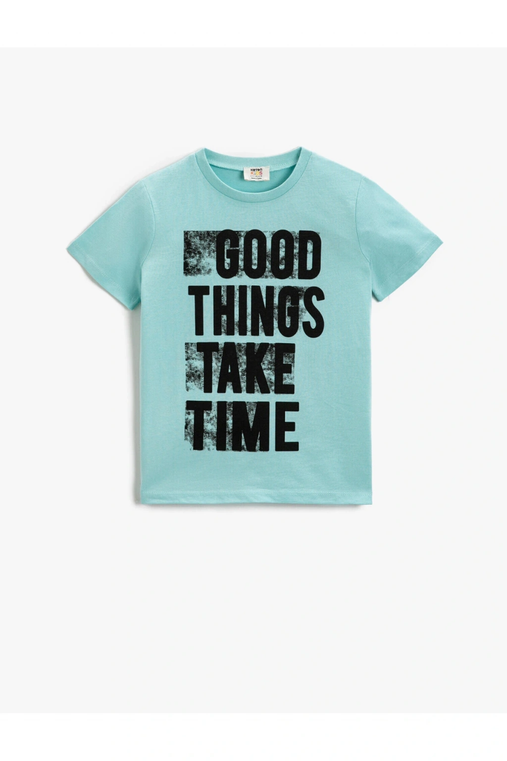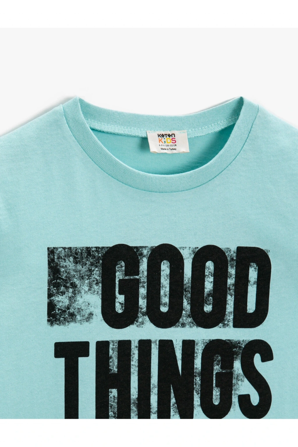 Slogan Baskılı Kısa Kollu Tişört Pamuklu